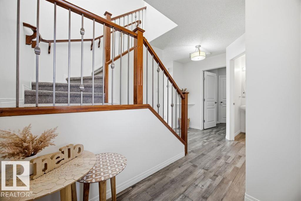 Tucked onto a quiet street in Lakeland Ridge, BACKING a PARK you will find this beautifully maintained home featuring 3 bedrooms, 3.5 baths & DOUBLE heated garage . A spacious entrance with newer vinyl plank flooring that leads to the great room welcomes you. The kitchen offers plenty of cabinets, granite counter tops, new refaced cabinets, Newer black Whirlpool appls,walk through pantry. Sunny dining area + living room with cozy fireplace. Guest bath & main floor laundry compliment the functional layout. New Carpet 2019,HE 2021,new garage door sys 2023,extended composite deck 2022,FRESHLY PAINTED.Moving upstairs you will LOVE the king sized primary suite with walk in closet featuring built in organizers & 4pc ensuite. 2 additional bedrooms are both generous in size, 4pc bath complete the upper level. The fully finished basement offers a family sized rec room storage. ENJOY the fenced & landscaped SOUTH yard with stone walkway, irrigation system, storage shed. Bring the kids! No maintenance or condo fees!