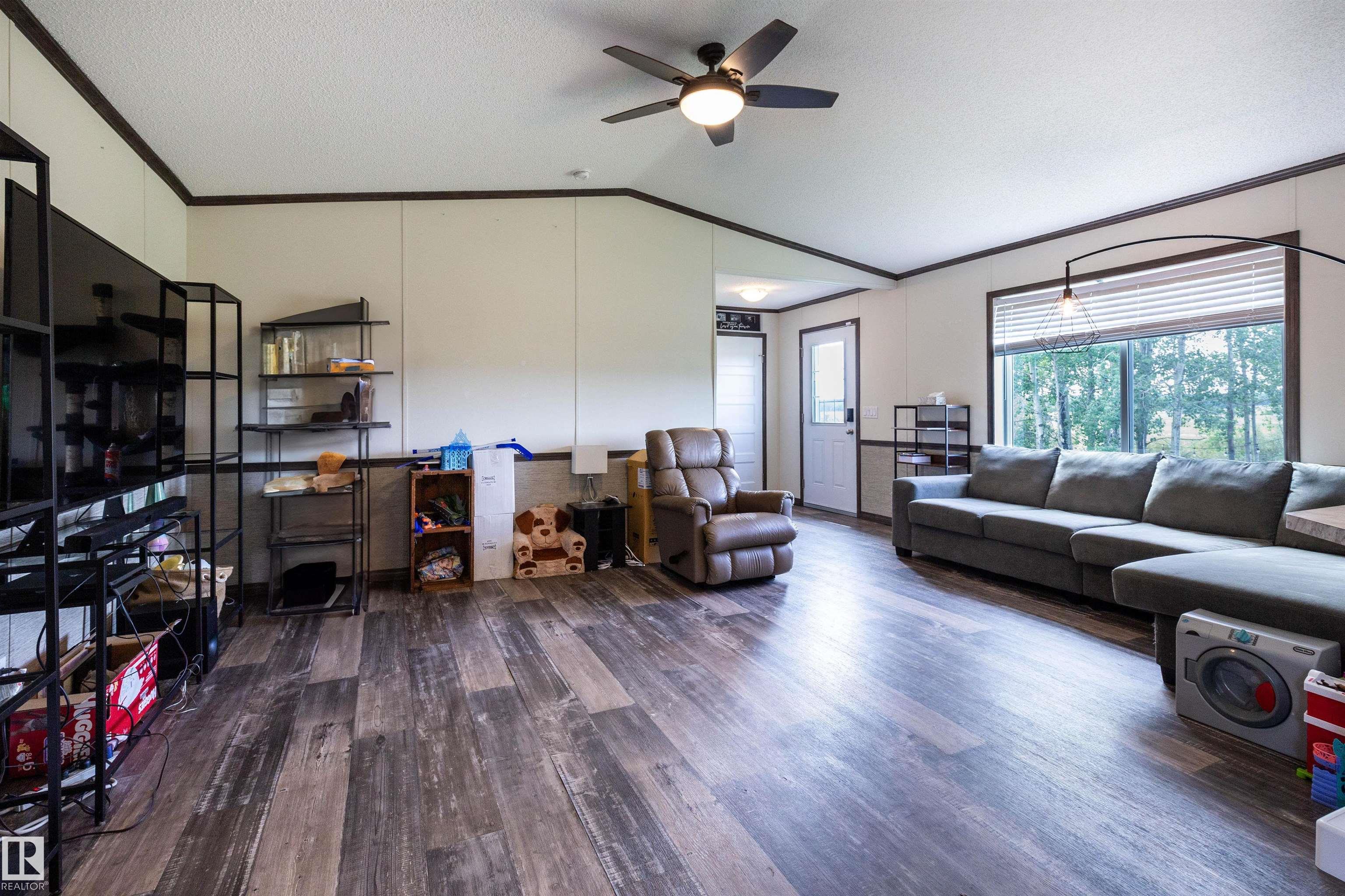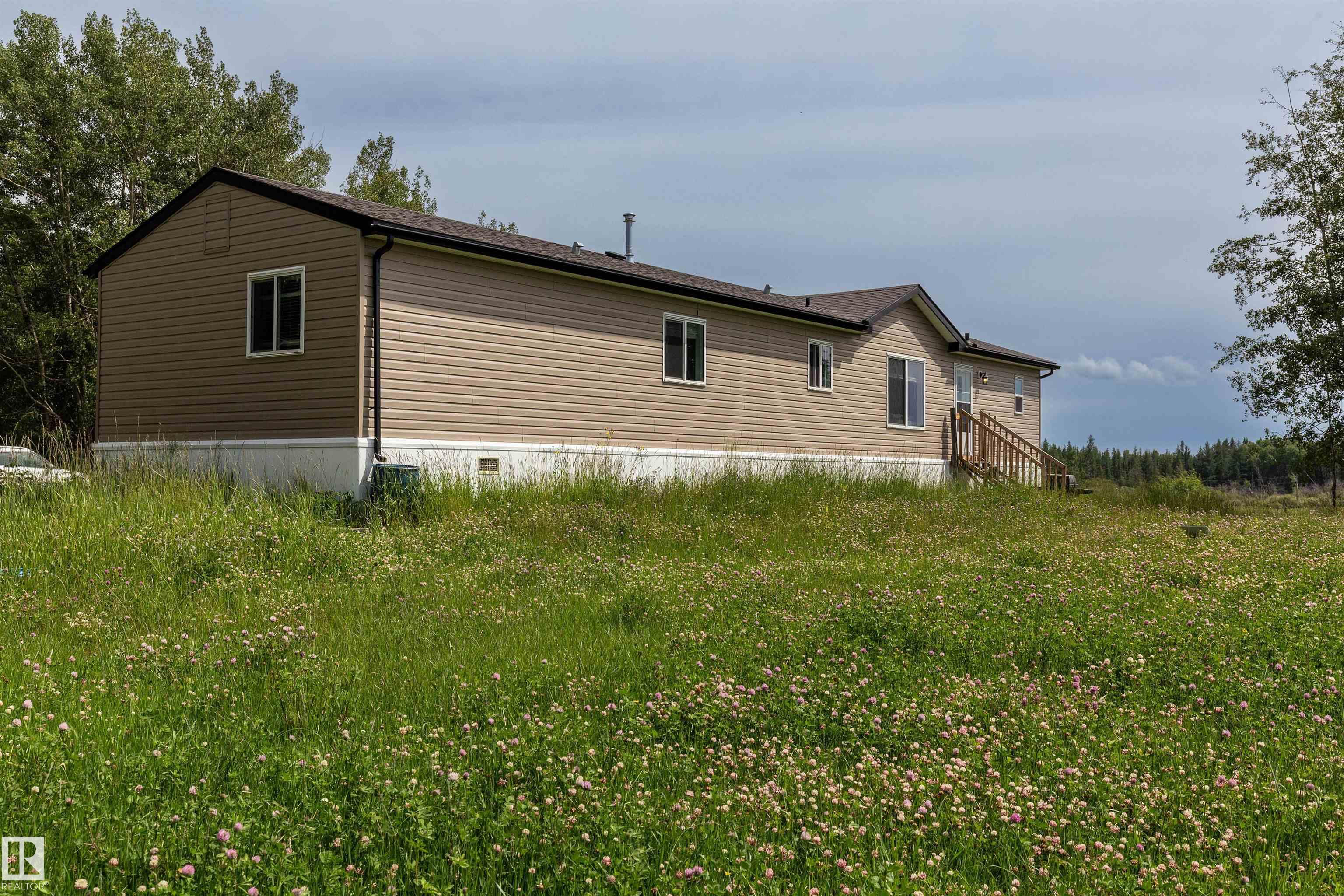 Step into your slice of affordable luxury. Built in 2021, this 4-bedroom, 2-bath country home sits on 2.5 acres of private land - where you can watch bison roam the nearby fields right from your kitchen window. The spacious layout includes a walk-in closet, ensuite bath, and cozy fire pit for starlit evenings. Over 2 sheds offer room for hobbies, toys, or tools. With endless parking and the peace of country living, it?s perfect for anyone craving space, freedom, and charm without sacrificing comfort. Just 14 min from Sangudo and 23 min from Lake Isle, this isn?t just a home - it?s a lifestyle upgrade. Whether it?s your first home or forever home, luxury isn?t a price tag. It?s a feeling - and this one delivers.
