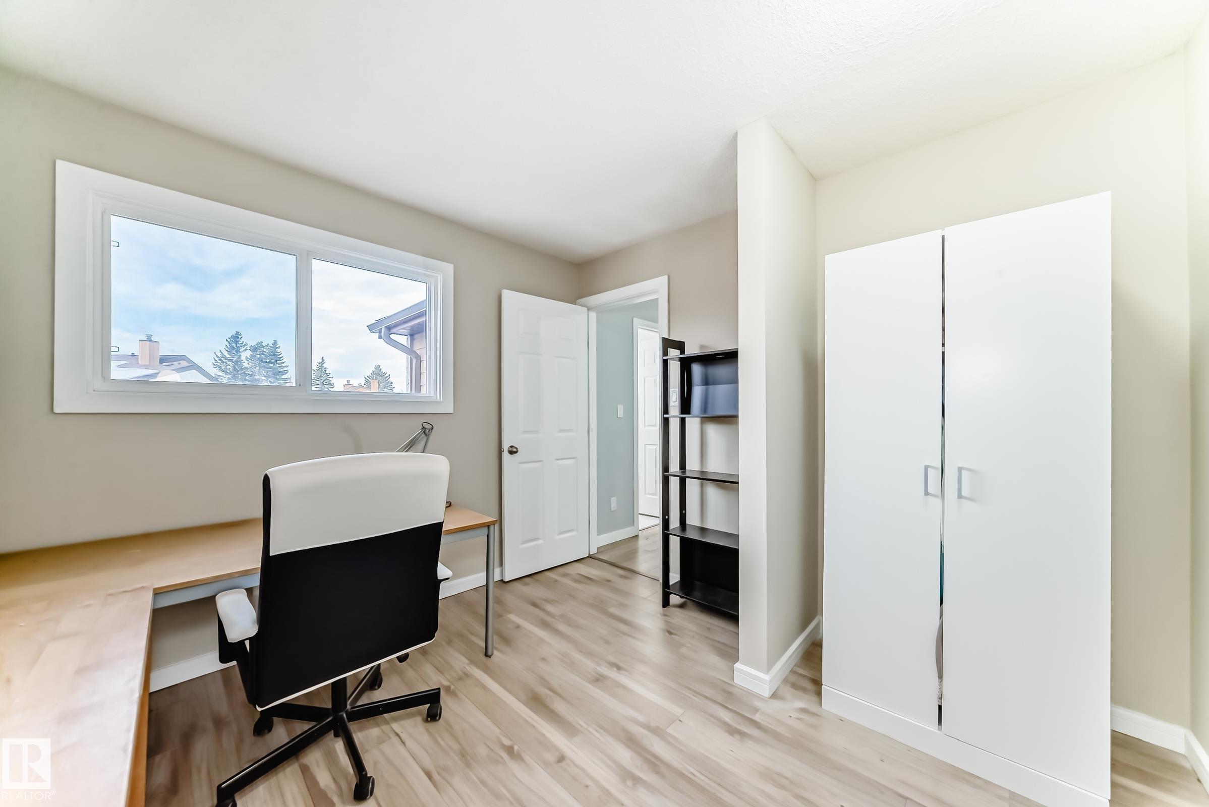 Bedroom on Main floor! Deck on the front, patio on the back and a Balcony over looking peaceful park and a winding walkway to Millwoods Town Center, this Upgraded 4 bedroom townhouse in Mill Woods is ready to be your new home. A living room featuring a wood burning fireplace and bright windows. Spacious kitchen with lots of cabinets, a half bathroom and bright bedroom finishes off the main level. Upstairs features 3 bedrooms and a full bathroom with access from master bedroom. Enjoy your peaceful balcony right off your master bedroom which faces green space for your enjoyment. Spacious unfinished Basement w/Laundry including washer dryer & plenty of storage space. This home also comes with 2 parking stalls right in front of the unit. Low Condo Fee gives great value to this home. BUS STOP in front, walking distance from 6 schools, playgrounds & REC centre including LRT station.
