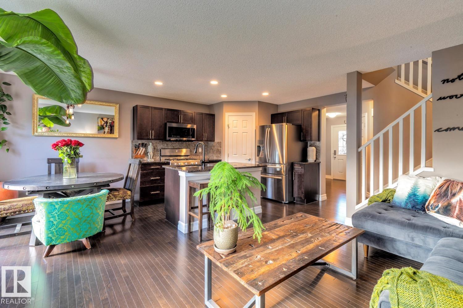 This well maintained 2-storey townhouse offers a perfect blend of comfort and convenience. Step inside to a bright and inviting living room that flows into a spacious kitchen featuring, grainte counters, stainless steel appliances?including a gas stove?and plenty of counter space for meal prep and entertaining. Upstairs, you?ll find two generous master bedrooms, each with its own private ensuite, offering ideal comfort for couples, roommates, or guests. The partially finished basement (approximately 85% complete) adds extra living space and flexibility for a home gym, office, or family room. Enjoy year-round comfort with central A/C, a fenced and landscaped yard, and a rear deck perfect for relaxing or summer BBQs. The single attached garage provides convenience and extra storage. Located in the heart of Lakeland Ridge, this home is just minutes from parks, schools, and all amenities. Perfect for first-time buyers, young professionals, or anyone looking for low-maintenance living in a fantastic community!