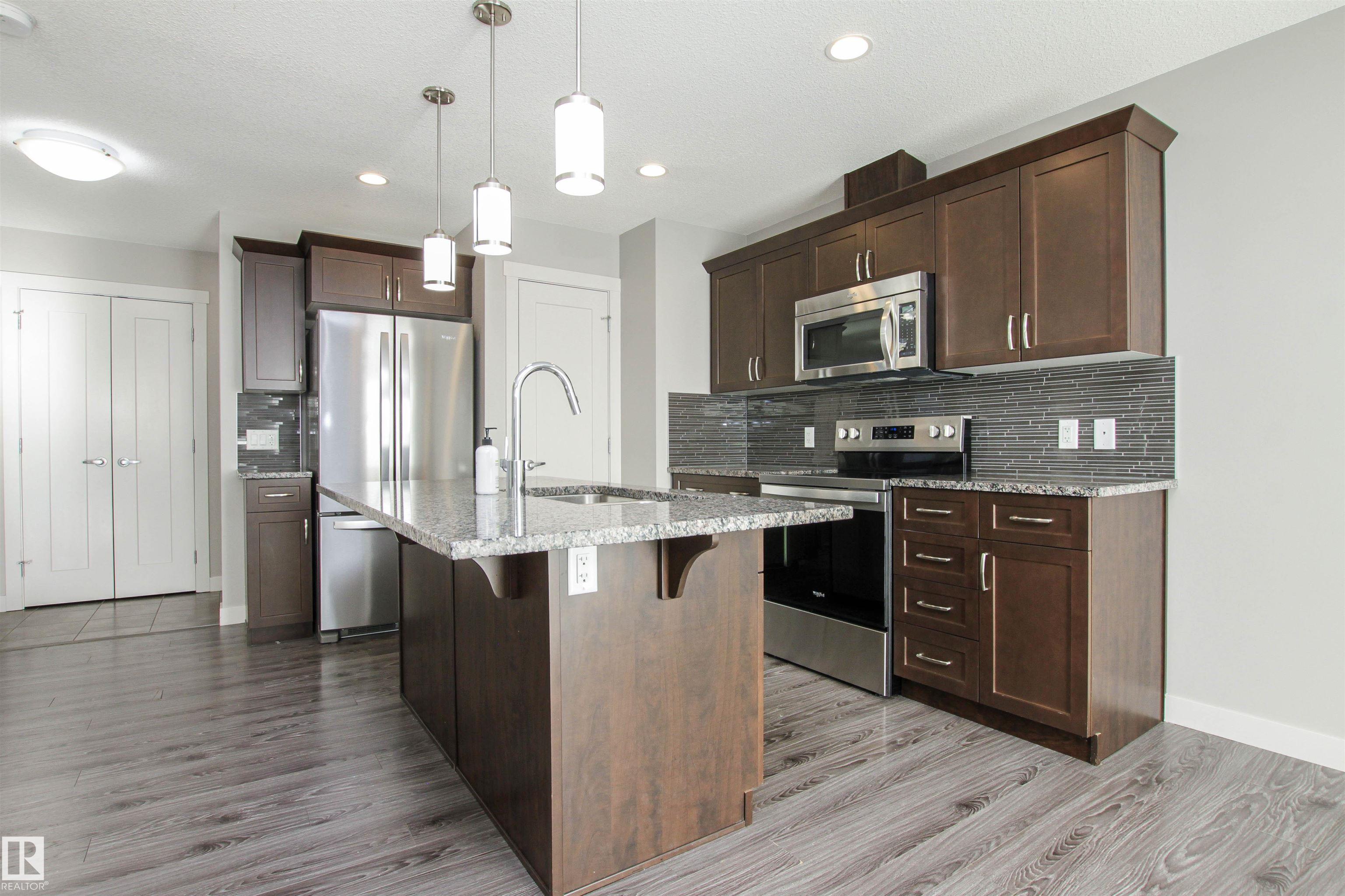 Shows just like BRAND NEW!!!! Located in desirable Aspen Trails, this 3 bed / 2.5 bath half-duplex is in a wonderful community, steps to Abbey Park and close to all amenities. Recent updates include NEW CARPET, FRESHLY PAINTED top to bottom & NEW FRIDGE & STOVE. The main floor offers an open floor plan with modern kitchen with large GRANITE island, stainless steel appliances and pantry. Beyond the kitchen is the spacious eating nook, overlooking the SOUTH-FACING backyard!! Backyard offers nice sized deck and fire pit area! The cozy living room offers beautiful stone-faced GAS FIREPLACE, perfect for our cooler seasons. Upstairs you will find the primary suite with 4-piece ensuite and walk-in closet, 2 more spacious bedrooms, 4-piece main bath, UPSTAIRS LAUNDRY + den/flex space! The basement is a perfect canvas to develop, with drywall and some electrical already in place. This property also has CENTRAL A/C and a full sized DOUBLE ATTACHED GARAGE! Meticulously maintained and completely MOVE-IN READY!