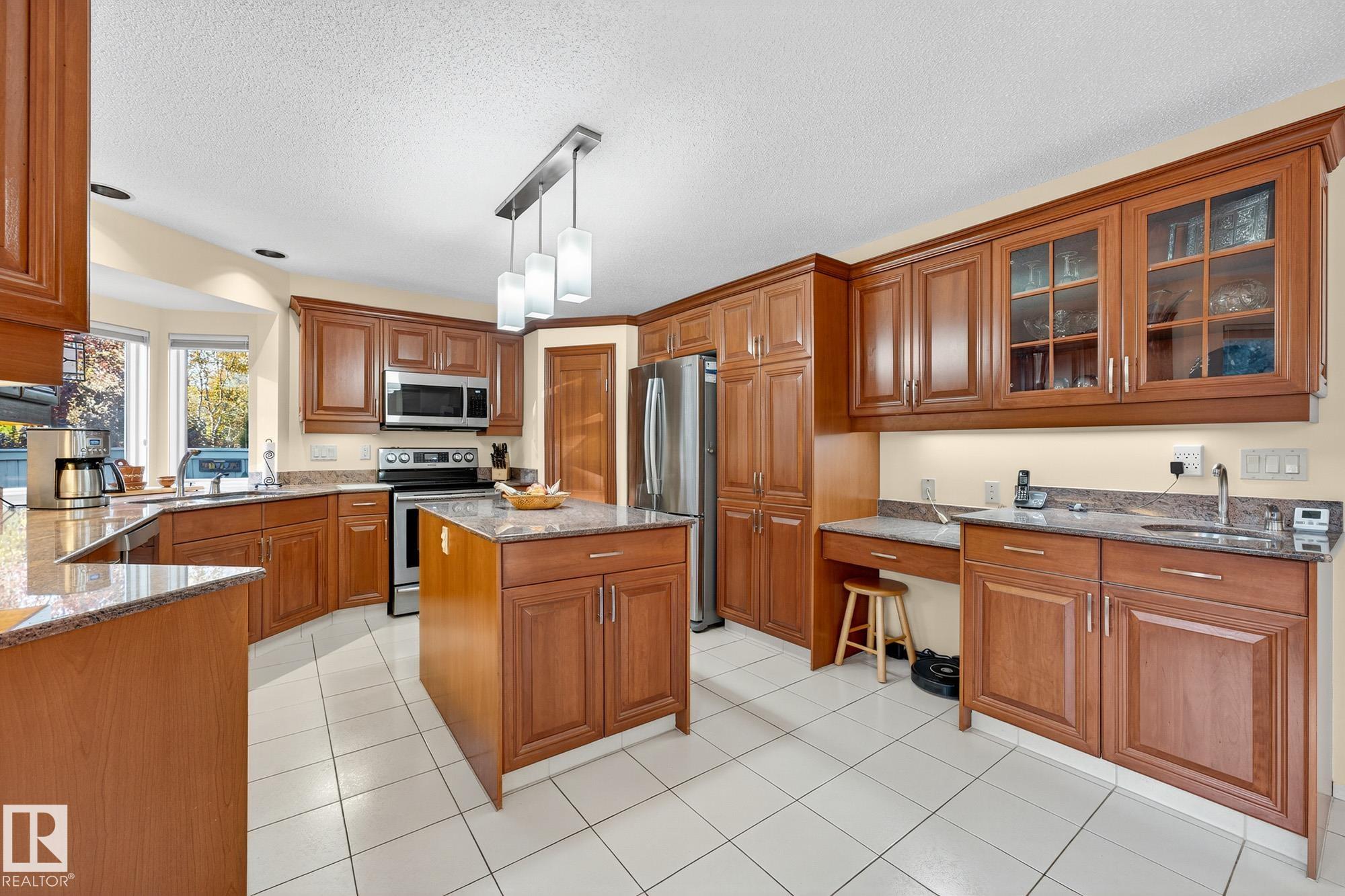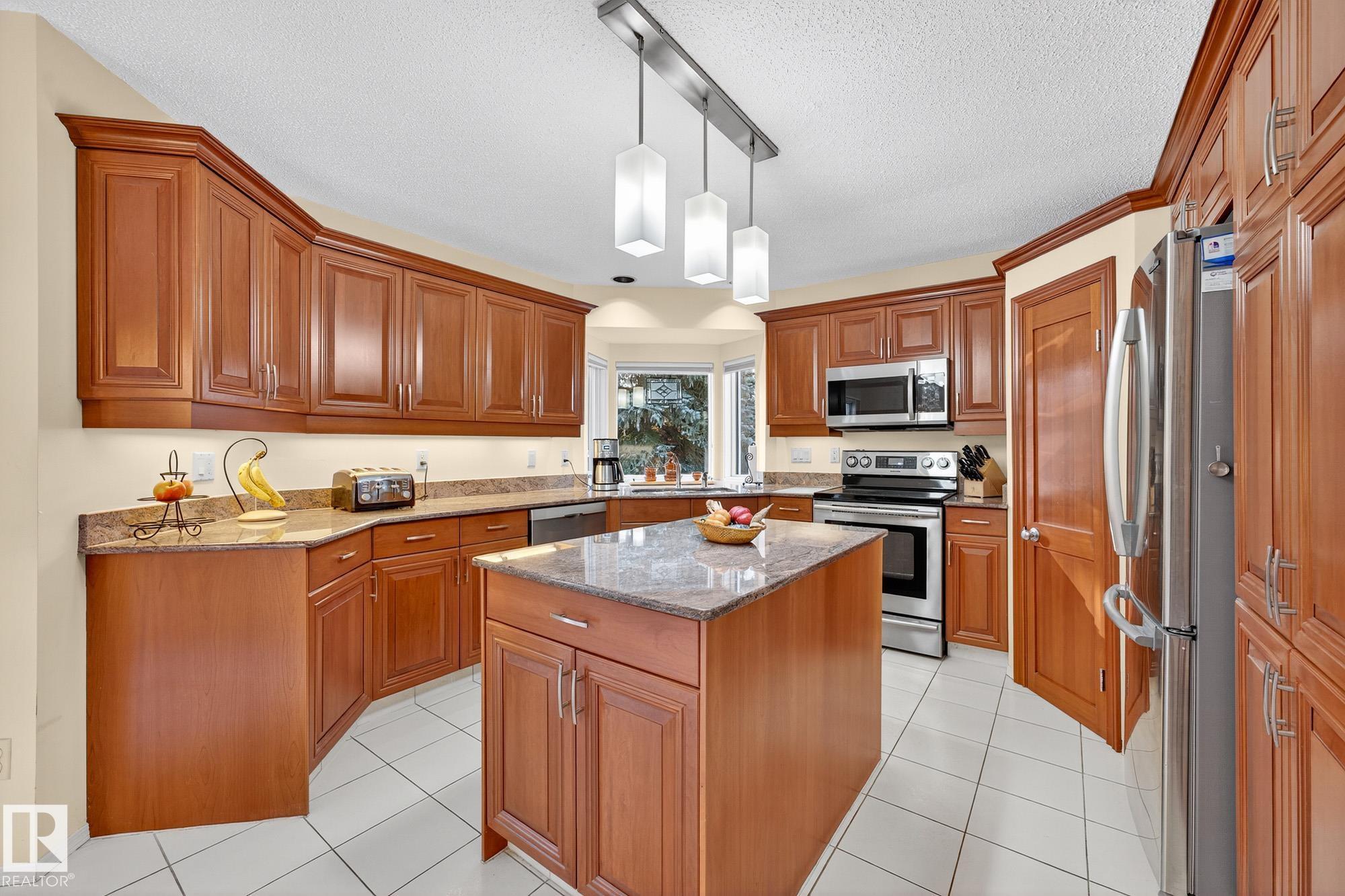 Fantastic 2+3 bedroom bungalow in a quiet Country Club cul-de-sac. With almost 4000 sq.ft. of beautifully developed and maintained living space, this immaculate home has a spacious, open floor plan with vaulted ceilings and multiple skylights providing a bright and inviting environment for luxurious living and entertaining. Many upgrades over the years including gourmet kitchen, bathrooms, gorgeous hardwood floors & granite counters throughout, many triple pane windows and fully upgraded pex plumbing! Formal living room/dining room area plus a separate family room with wood burning fireplace. Huge master suite, 2nd bedroom/office & laundry/mud room complete the main floor The fully developed basement features an enormous rec room plus 3 more bedrooms, 3 piece bath and plenty of storage. Massive pie shaped yard (almost 12,000 sq.ft.) with huge deck and nicely manicured landscaping. Double attached garage, central A/C & maintenance free exterior add to the long list of features in this stunning home!