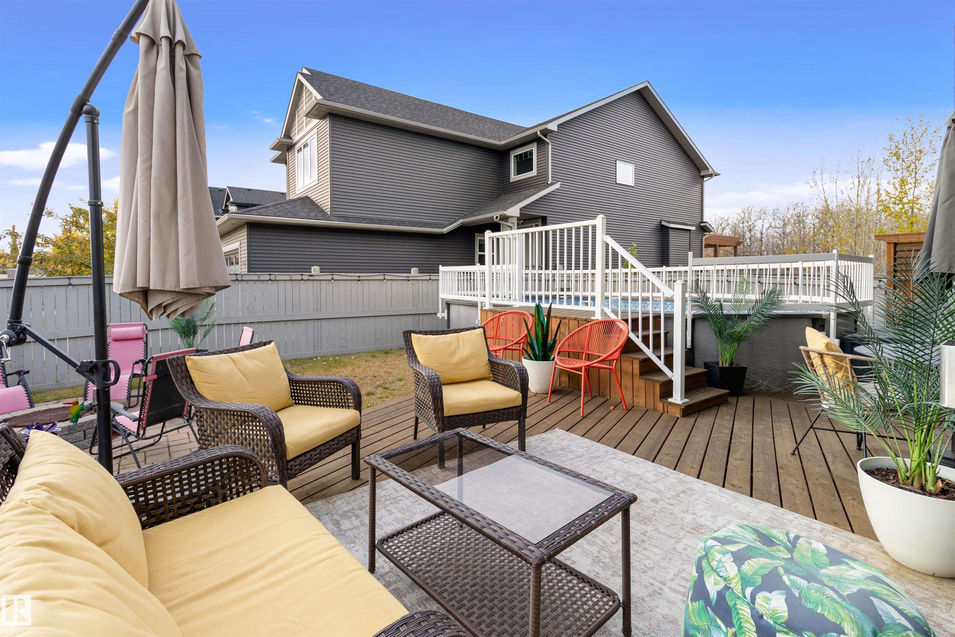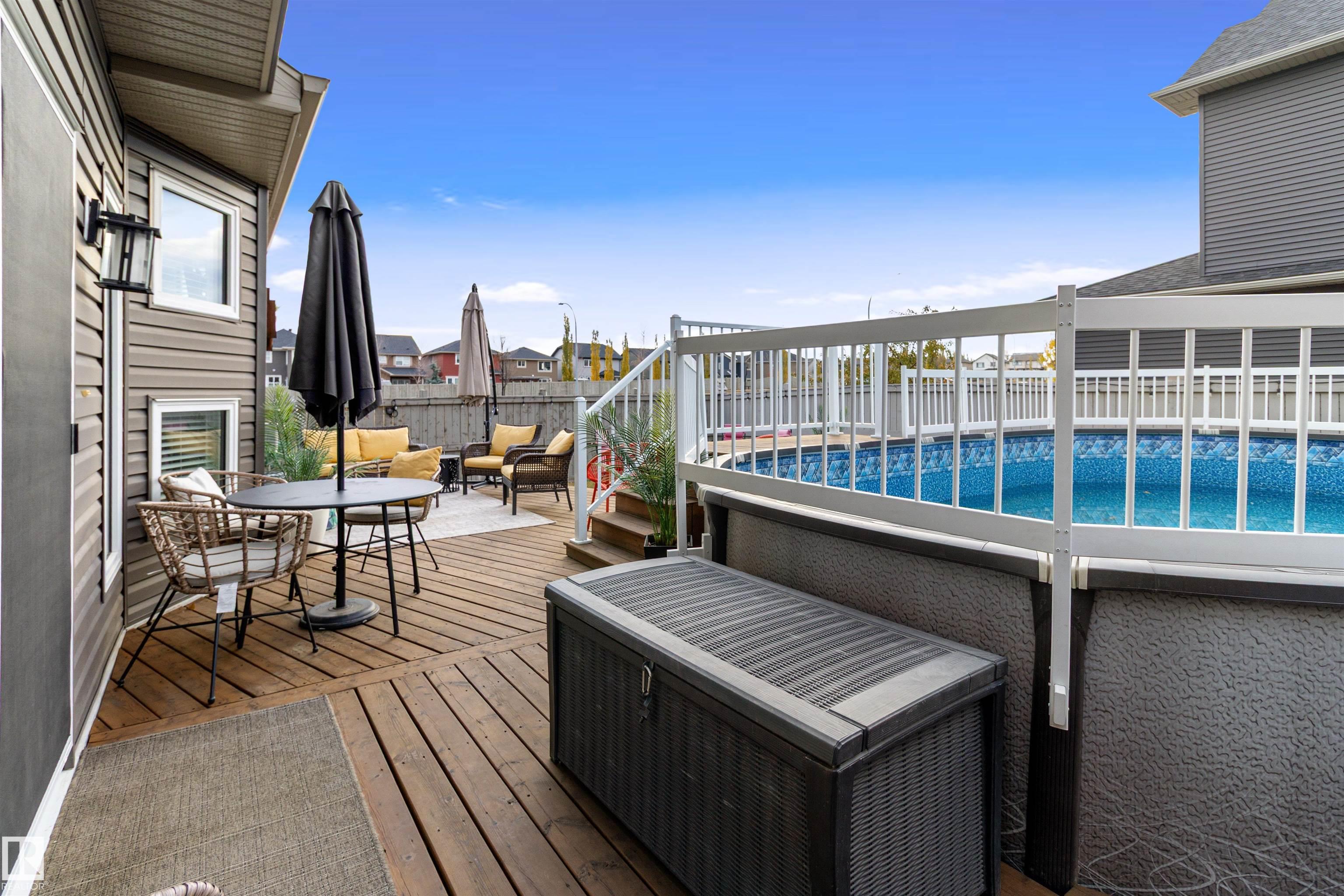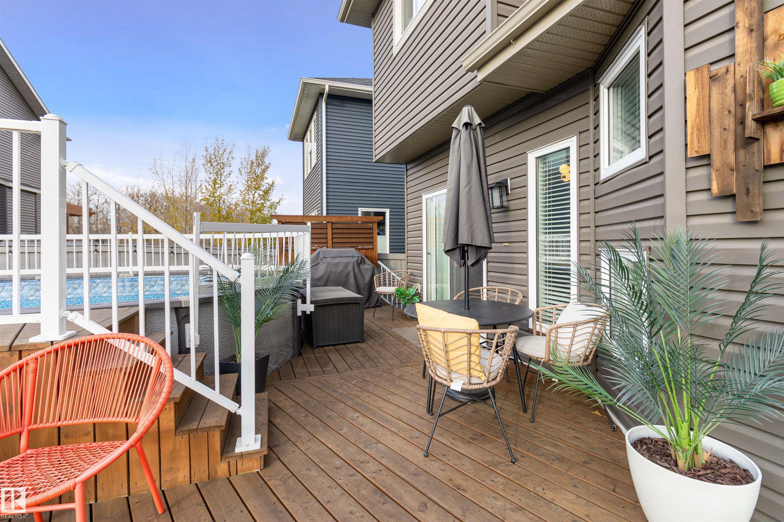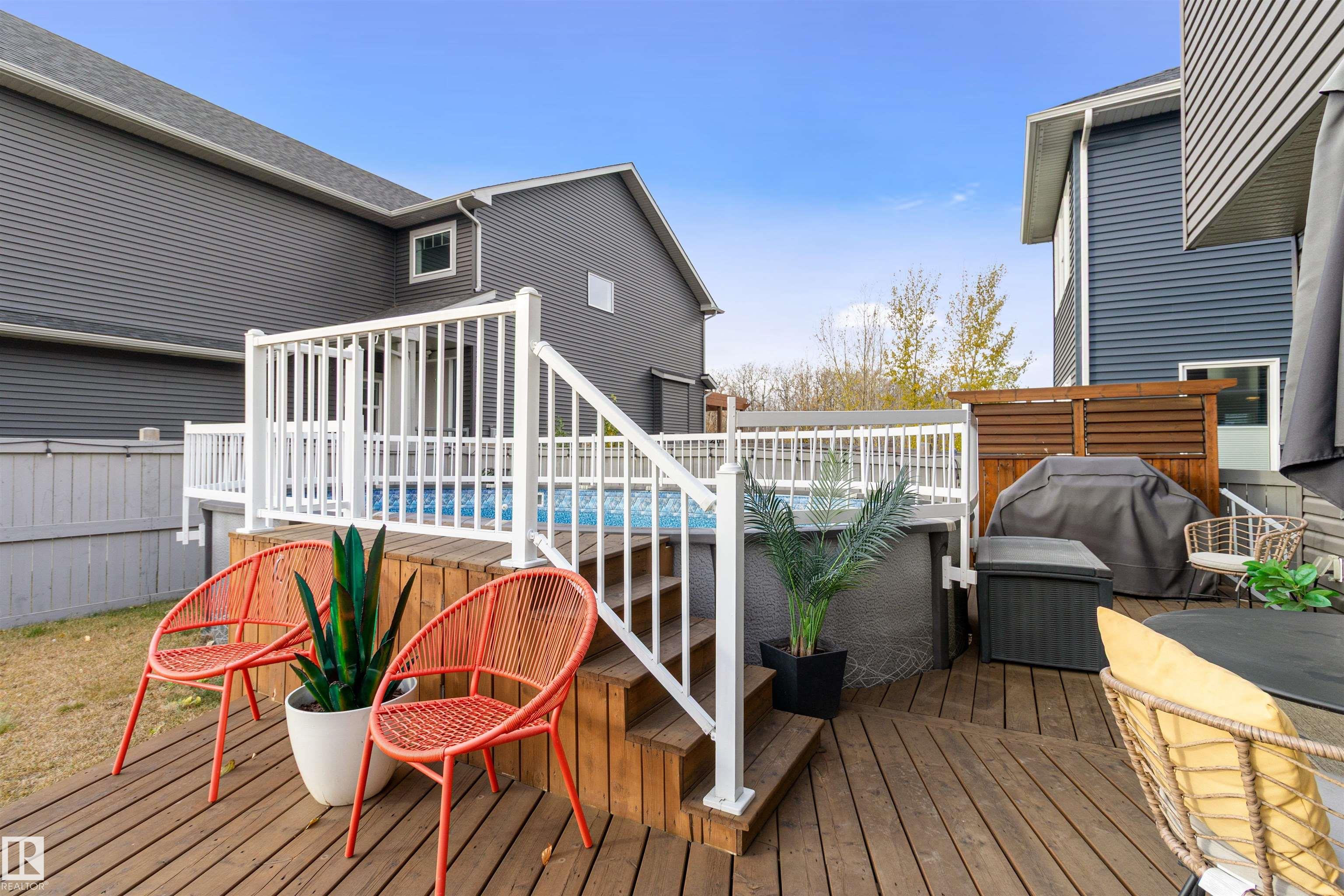 Modern two-story home designed for family living and entertaining! This spacious residence offers four bedrooms upstairs, including a luxurious primary suite with a five-piece ensuite and walk-in closet. Convenient upper-level laundry adds everyday ease. The open-concept main floor features a bright living area, stylish kitchen with island, and dining space that flows seamlessly to the backyard. Step outside to enjoy your private oasis complete with an above-ground pool?perfect for summer gatherings. A double attached garage provides ample parking and storage. Contemporary finishes, thoughtful layout, and plenty of natural light make this home a true standout for modern lifestyles.