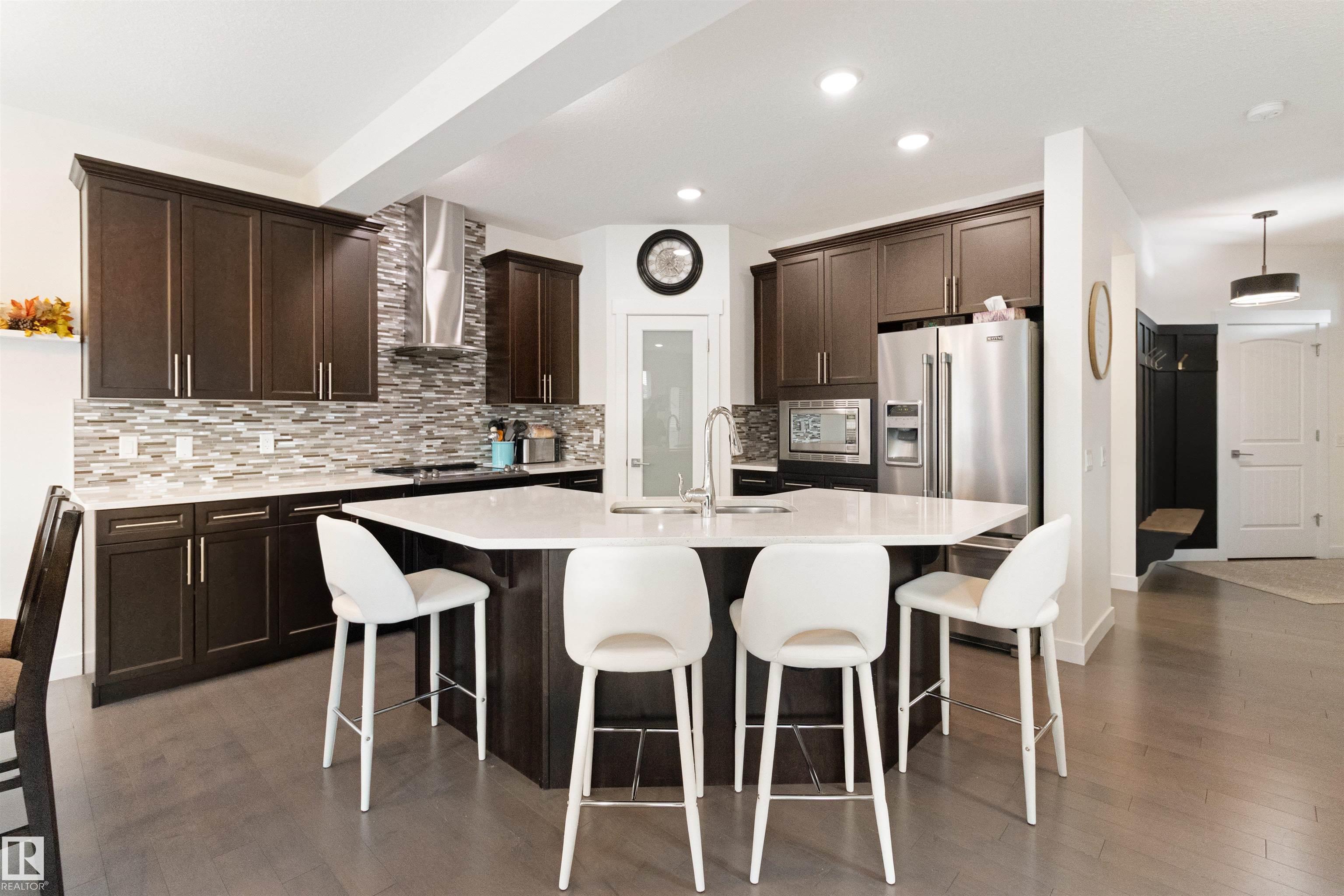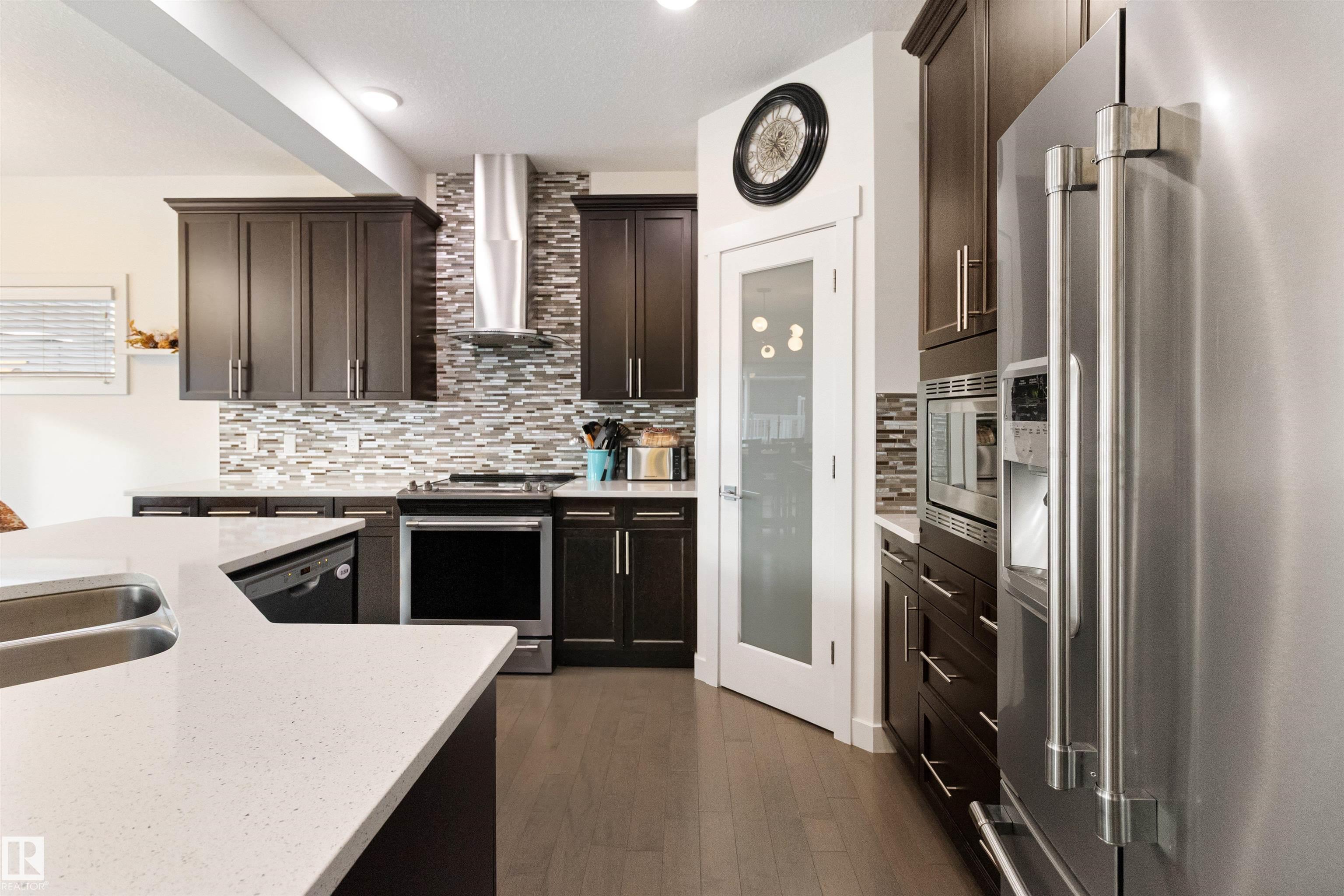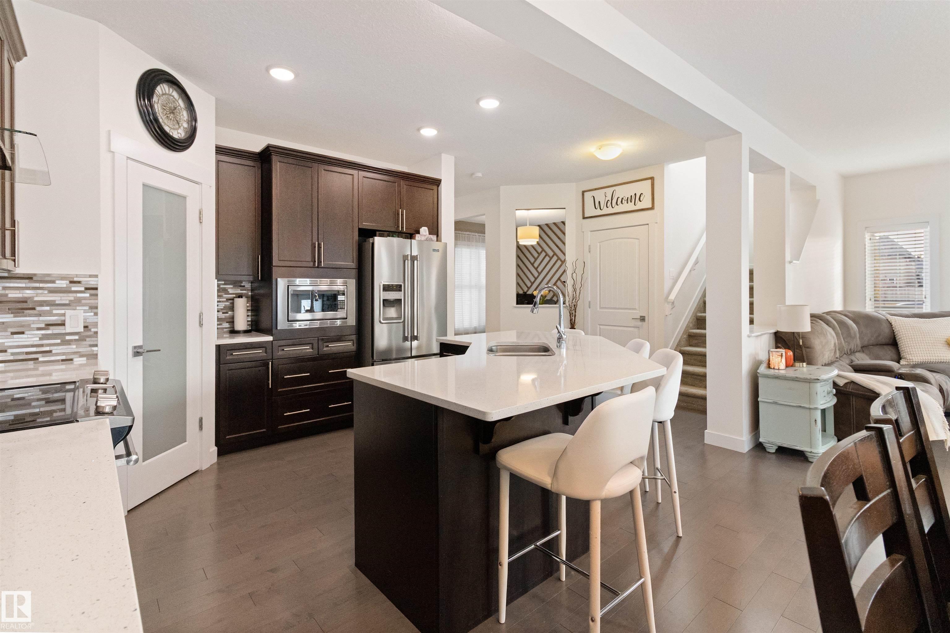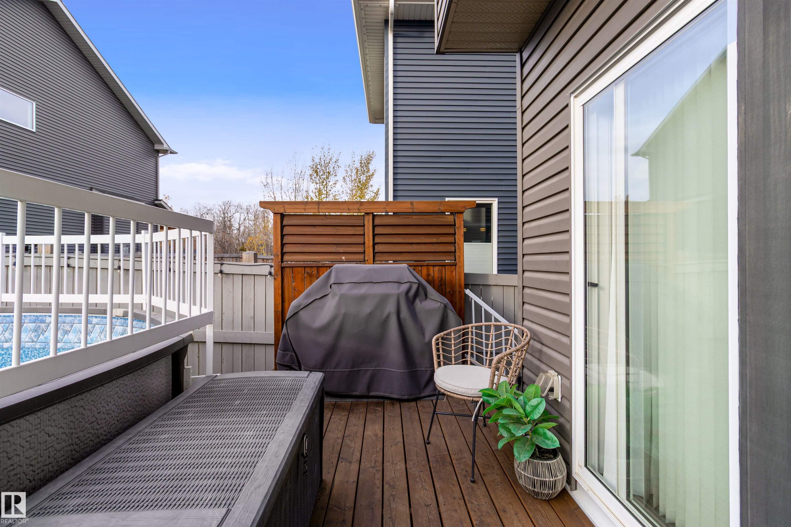 Modern two-story home designed for family living and entertaining! This spacious residence offers four bedrooms upstairs, including a luxurious primary suite with a five-piece ensuite and walk-in closet. Convenient upper-level laundry adds everyday ease. The open-concept main floor features a bright living area, stylish kitchen with island, and dining space that flows seamlessly to the backyard. Step outside to enjoy your private oasis complete with an above-ground pool?perfect for summer gatherings. A double attached garage provides ample parking and storage. Contemporary finishes, thoughtful layout, and plenty of natural light make this home a true standout for modern lifestyles.
