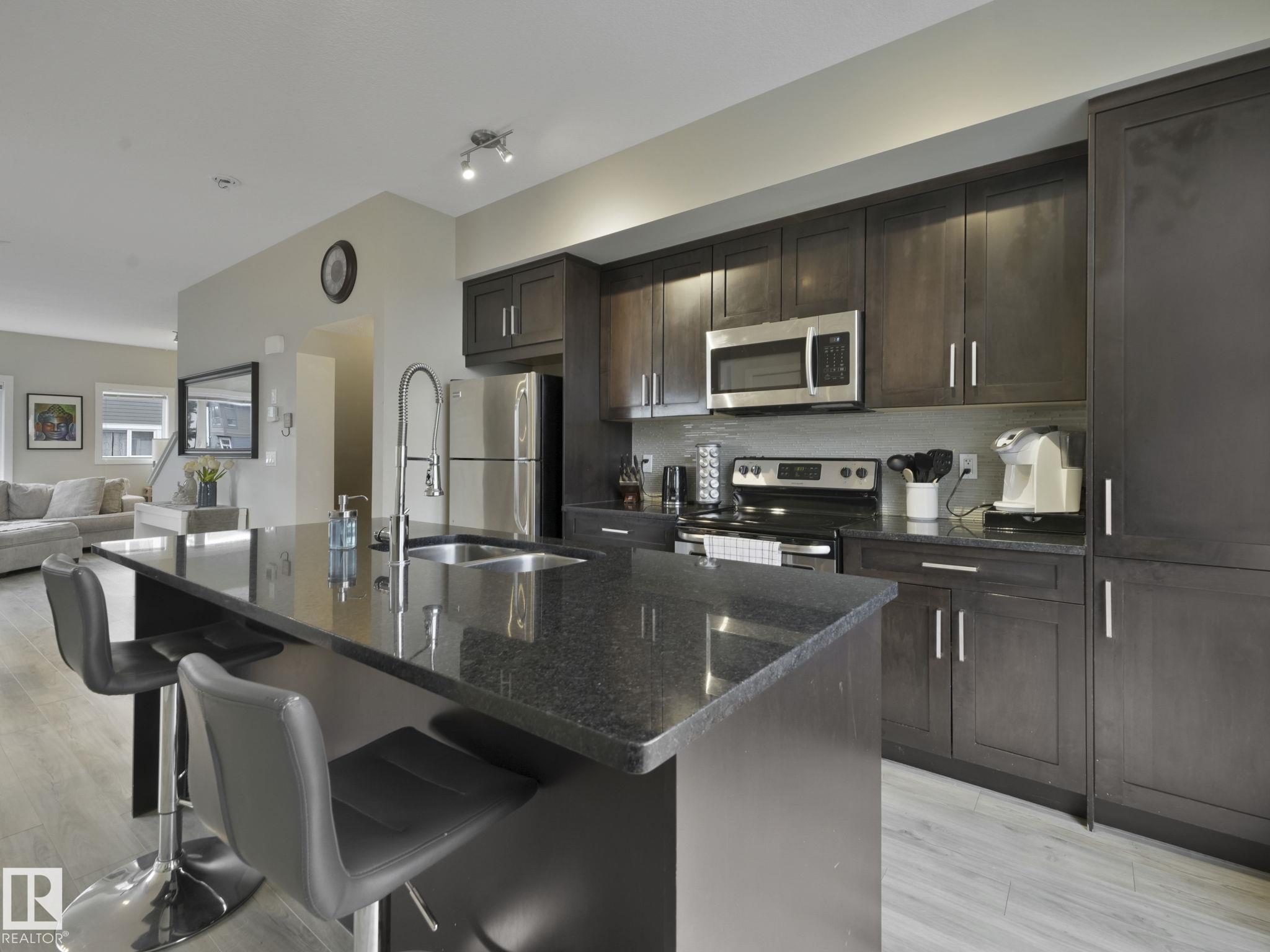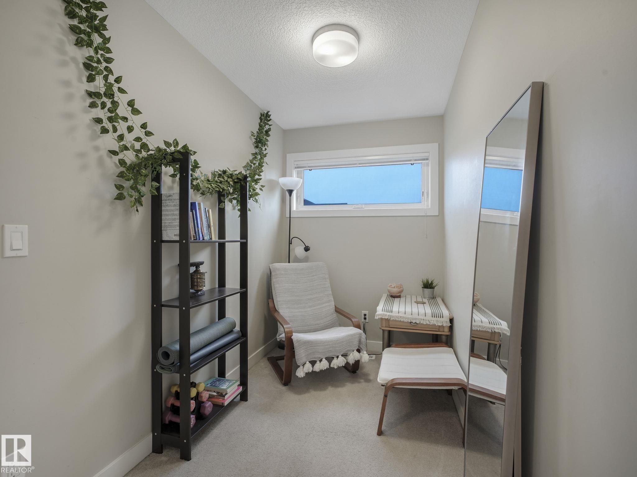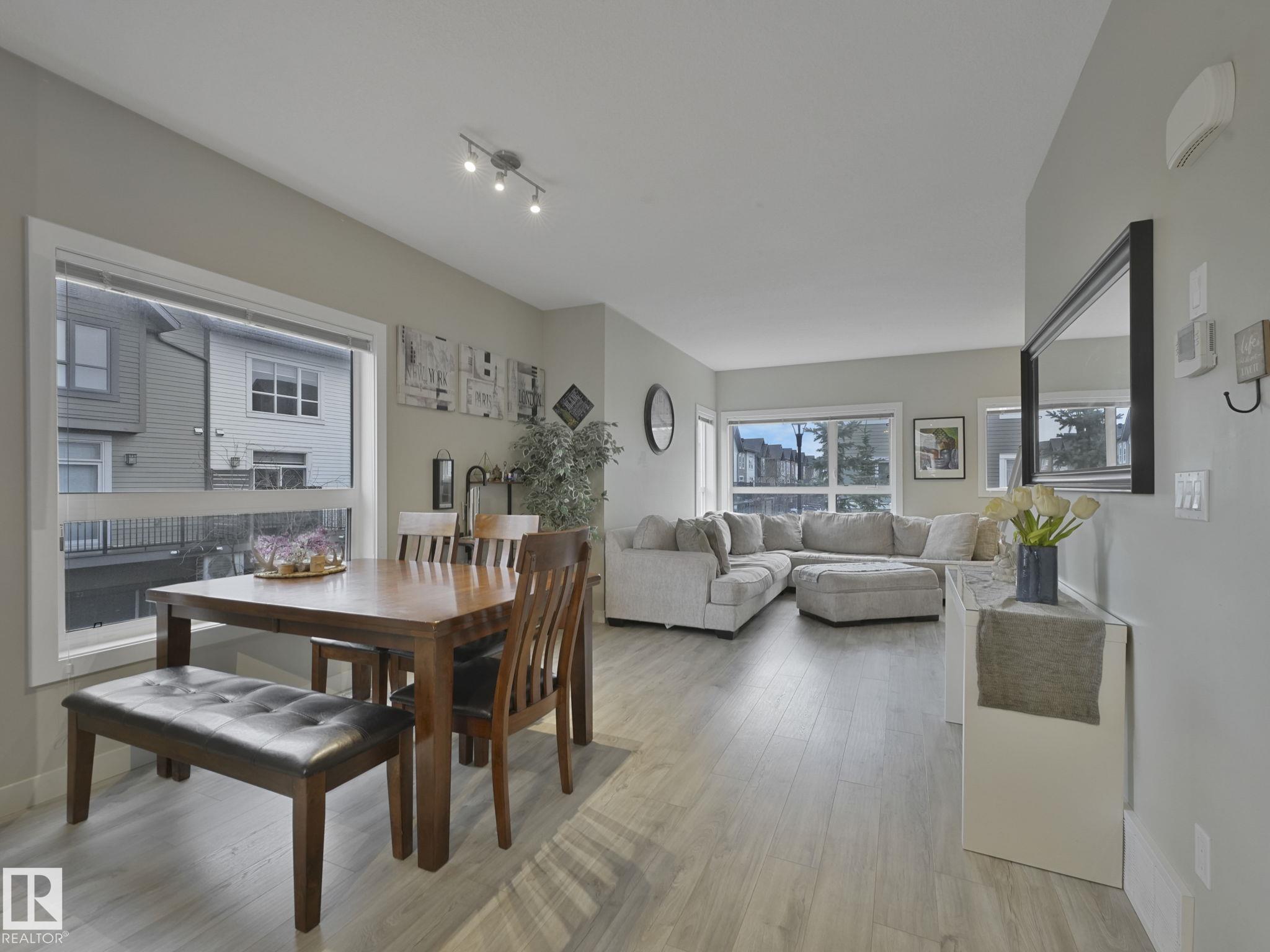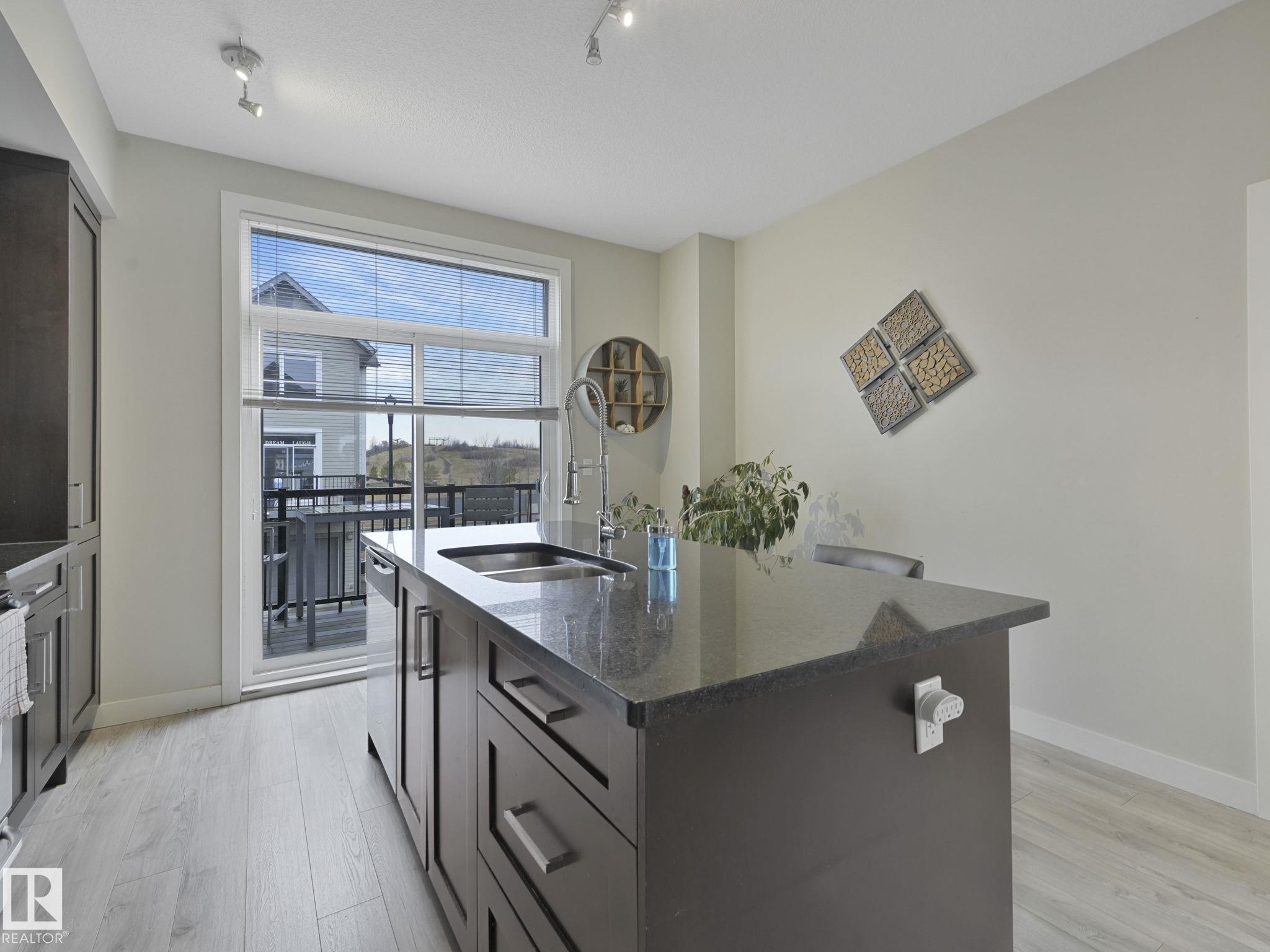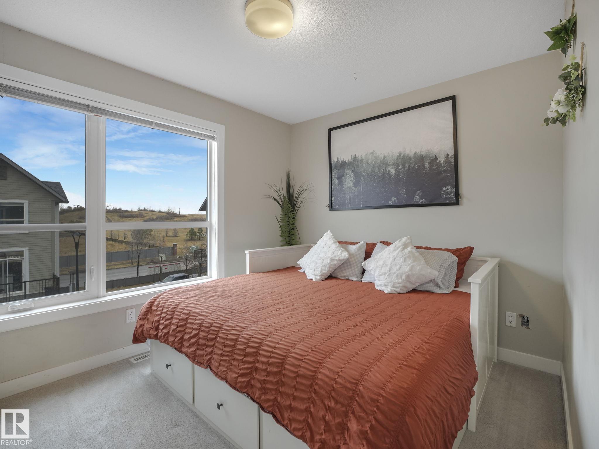Welcome to this spacious and modern 3-story END UNIT townhome in the centre of Griesbach with AC! Stepping inside, everything you are looking for in your next home is here. On the lower level is a den, a 2-piece bathroom, storage, and access to your OVERSIZED SINGLE ATTACHED GARAGE! Upstairs is the main living area, greeted with the kitchen with quartz countertops, S/S appliances, and the centre island as the focal point. From the kitchen is direct access to your private BALCONY! Situated is the dining room & living room with massive windows bringing in tons of natural light. Upstairs are 2 well-sized bedrooms. The primary bedroom offers direct access to the 4-piece ensuite and HIS & HERS closets. On the other side of the home is the second bedroom separated by the shared 4 pc bathroom and a second flex/den space on the upper floor! Located 15 mins from downtown, nearby schools, walking trails, and shopping along 97 ST & Northgate Centre. Professionally managed complex with LOW CONDO FEES of $318/mo.