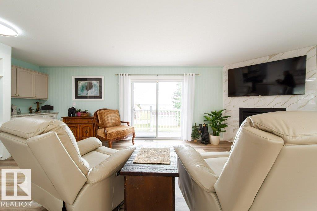 Modern Lakeview Acreage ? Trails of Minnehik, Buck Lake! This stunning property offers 2400 sq. ft. of total living area showcasing a full modern renovation surrounded by natural beauty and lake views. The open-concept upper level features a bright remodeled kitchen with new cabinetry, updated baths, luxury vinyl flooring, and a cozy tile-surround fireplace. The walkout basement adds versatility with a second kitchen, wood stove, and patio access?ideal for extended family or guests. Outside, enjoy a newly stained wrap-around deck, manicured landscaping, and a 28x32 garage for vehicles and lake toys. Shared dock access provides boating, fishing, and swimming, while the peaceful setting and starlit skies create an unforgettable Buck Lake experience. Just 33 minutes to Drayton Valley!