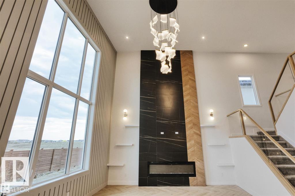 BACKING ON GREEN SPACE.....Ready to Move In..Welcome to Jensen Lakes private beach club and 2986 sqft - 2 story home with Triple garage. Exterior with Acrylic Stucco and Premium Shakes. The moment you walk In- You will see why this one is luxury at its finest. Heated Floors in Master Ensuite Floor. Gourmet kitchen with touch ceiling cabinets and roughed in for built in appliances. Waterfall island with Quartz countertops and Butler's pantry. Glass panel cabinets in kitchen. All floors 9 ft. Great room is open to above and showcases linear electric fireplace with Porcelain Tiles all the way to the ceiling. Spacious dining area with huge windows creates a bright and warm environment. Maple handrails with glass to the upper level. Open Bonus room with full wall TV Unit and 3 large bedrooms up. Primary suite with the most amazing ensuite - custom shower with jets, 2 sinks and free standing Soaker tub. Black windows with Triple pane. Expect to be impressed!