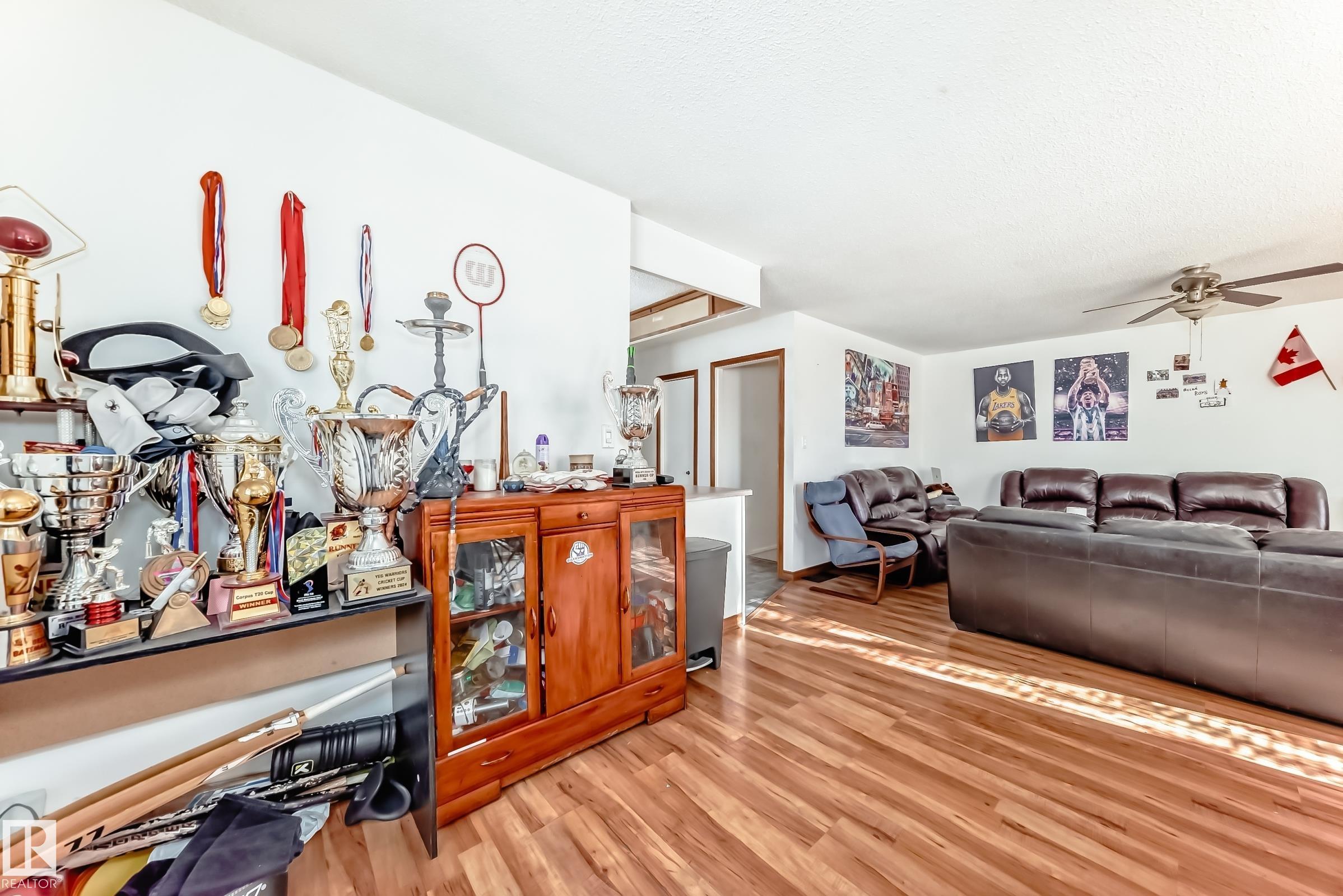 PRIME LOCATION ALERT! This stunning 4-bedroom home in Hillview offers unmatched convenience just steps to public transit and close to the Millbourne/Woodvale LRT Station stop, schools, shopping, playgrounds, and parks. The main level features a bright open-concept layout with 2 spacious bedrooms, including a primary suite with a walk-in closet, kitchen, and living space. The fully finished basement with a SEPARATE ENTRANCE from the garage includes 2 additional bedrooms, a full bath, ample storage, and a large recreation area with excellent potential to add a kitchen and create a secondary suite or self-contained living space. RECENT UPGRADES include a newer furnace, hot water tank, and nearly new appliances. Set on an ENORMOUS 501 Mē LOT, the fenced backyard is perfect for gardening or outdoor gatherings, combining comfort, prime location, and incredible FUTURE POTENTIAL.