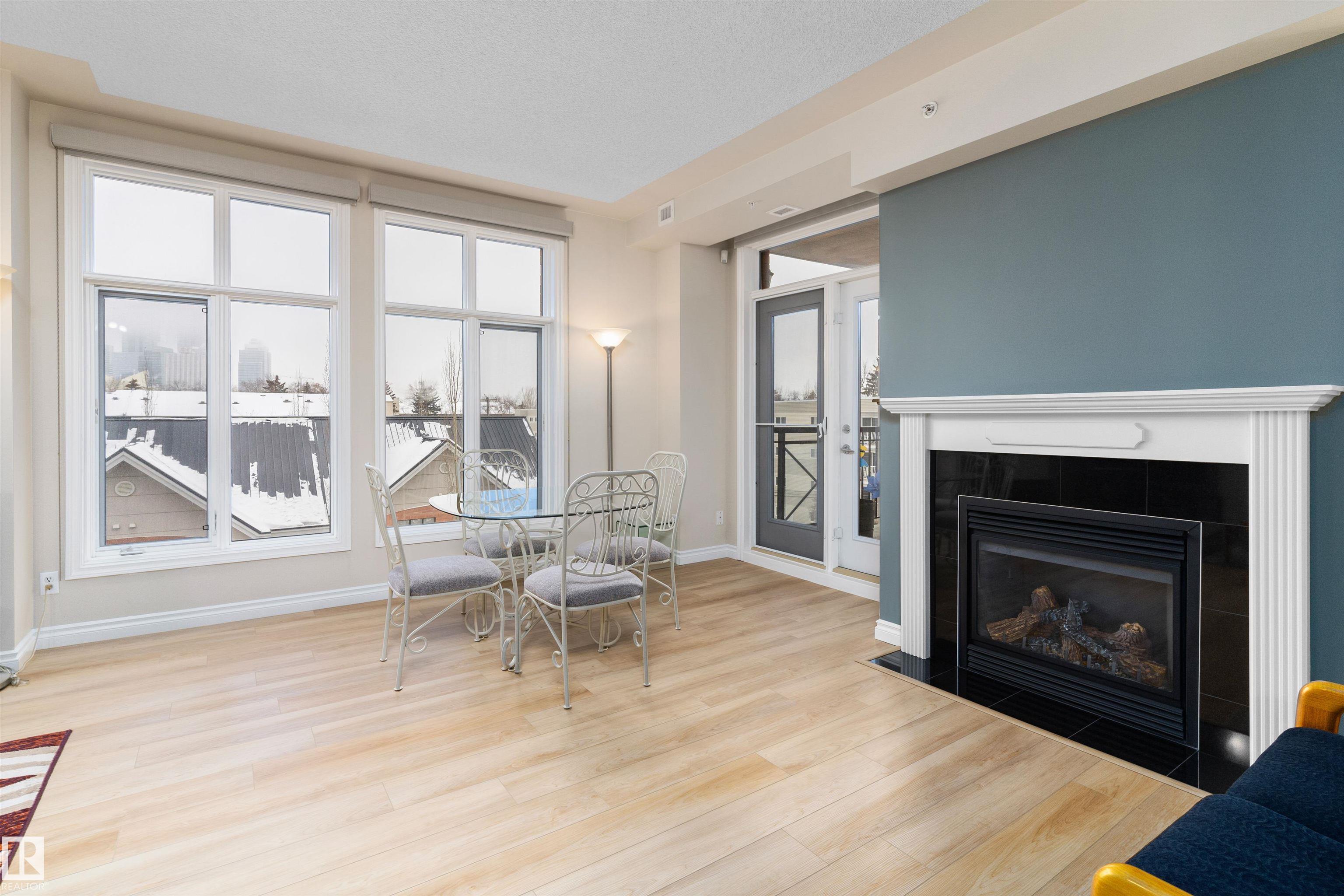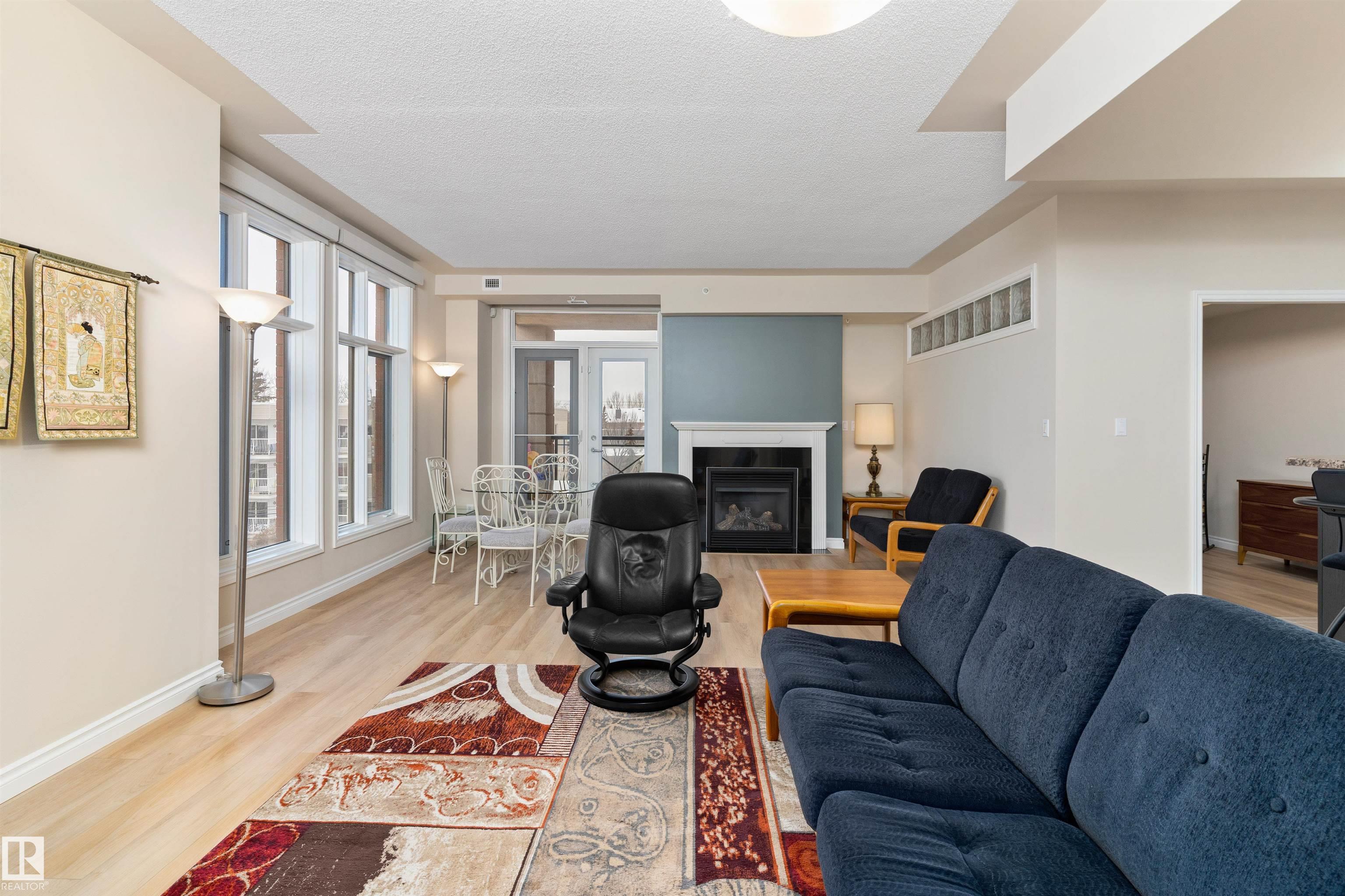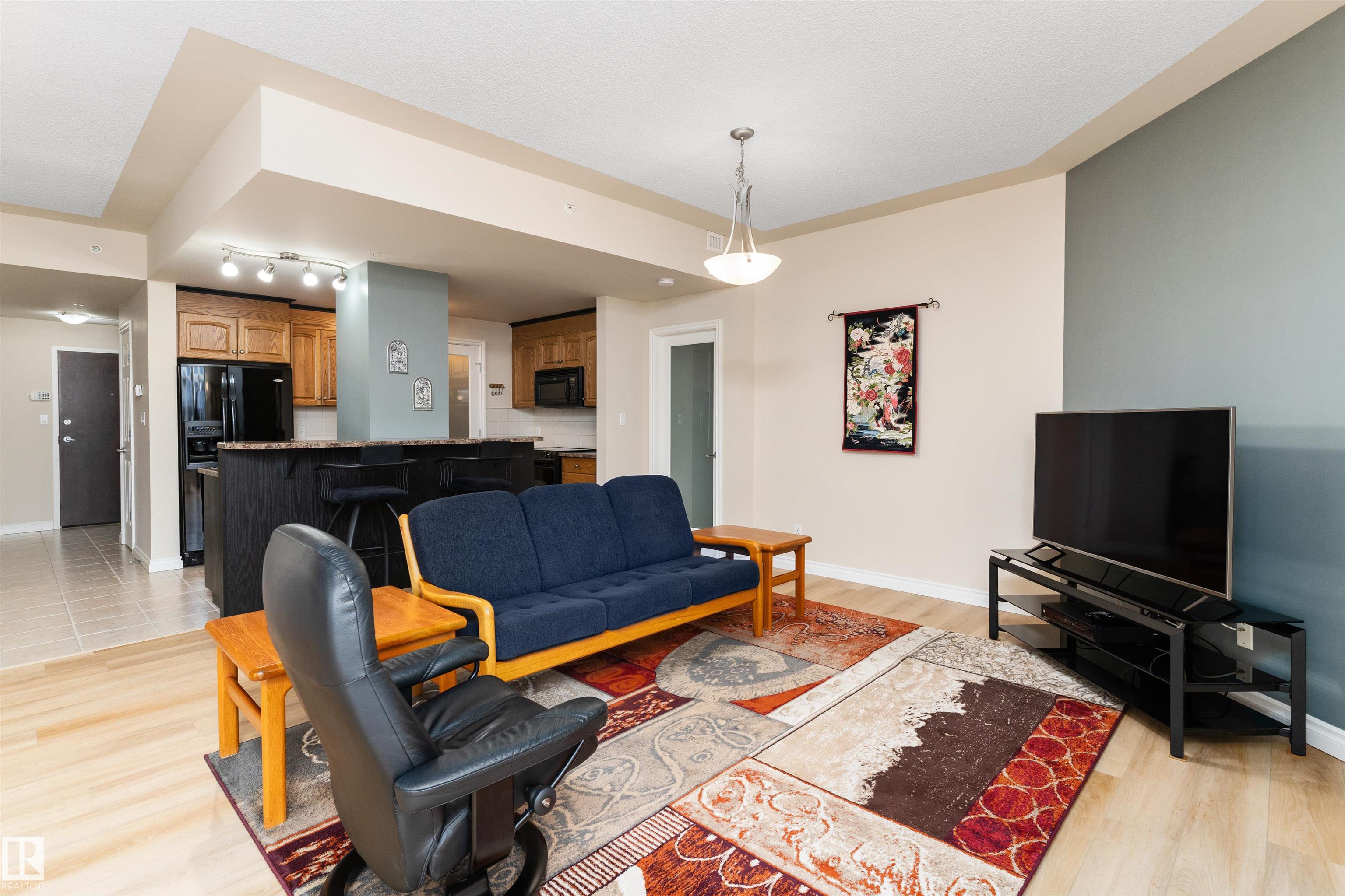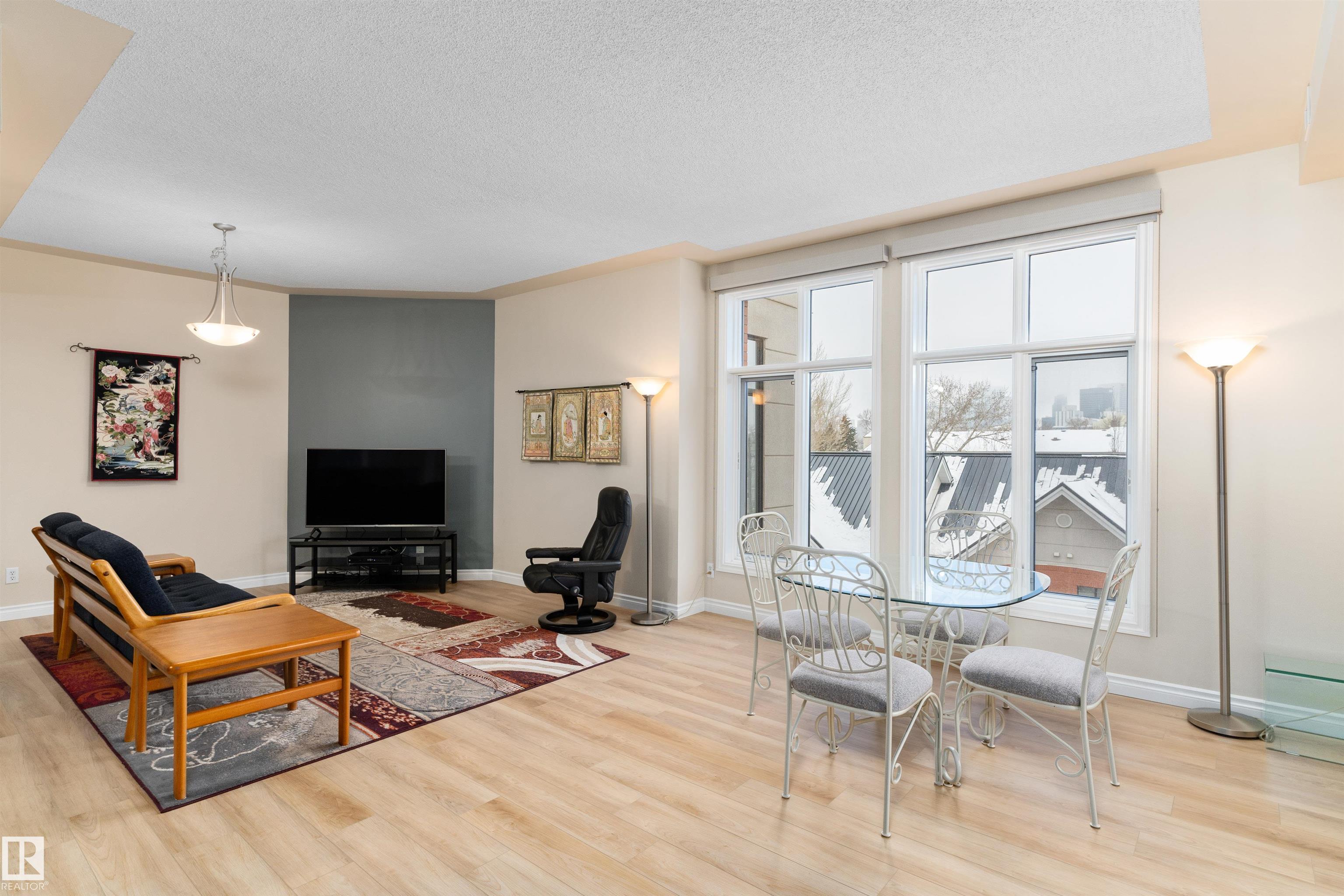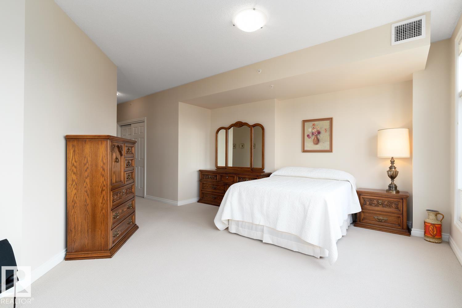 Welcome Home! This secure, spotless, and meticulously maintained 1175+ sq. ft. open-concept condo offers 9 ft. ceilings and new oversized windows in the sought-after Jasper Properties complex. Located across from Edmonton?s stunning River Valley and on the edge of downtown, it provides easy access to the entire city. Upgrades include glass block details, custom Hunter Douglas blinds, a security system, newer vinyl plank floors, ceramic tile, and front-loading washer and dryer. The den can serve as a second bedroom or office. Enjoy in-suite storage, plus a storage cage near your heated underground parking stall. The gated courtyard and grand foyer with modern curved sofas, a tile mosaic wall, and water feature create an impressive first impression. Amenities include a social room and a well-equipped gym. Electricity is included in the condo fees. Start packing!