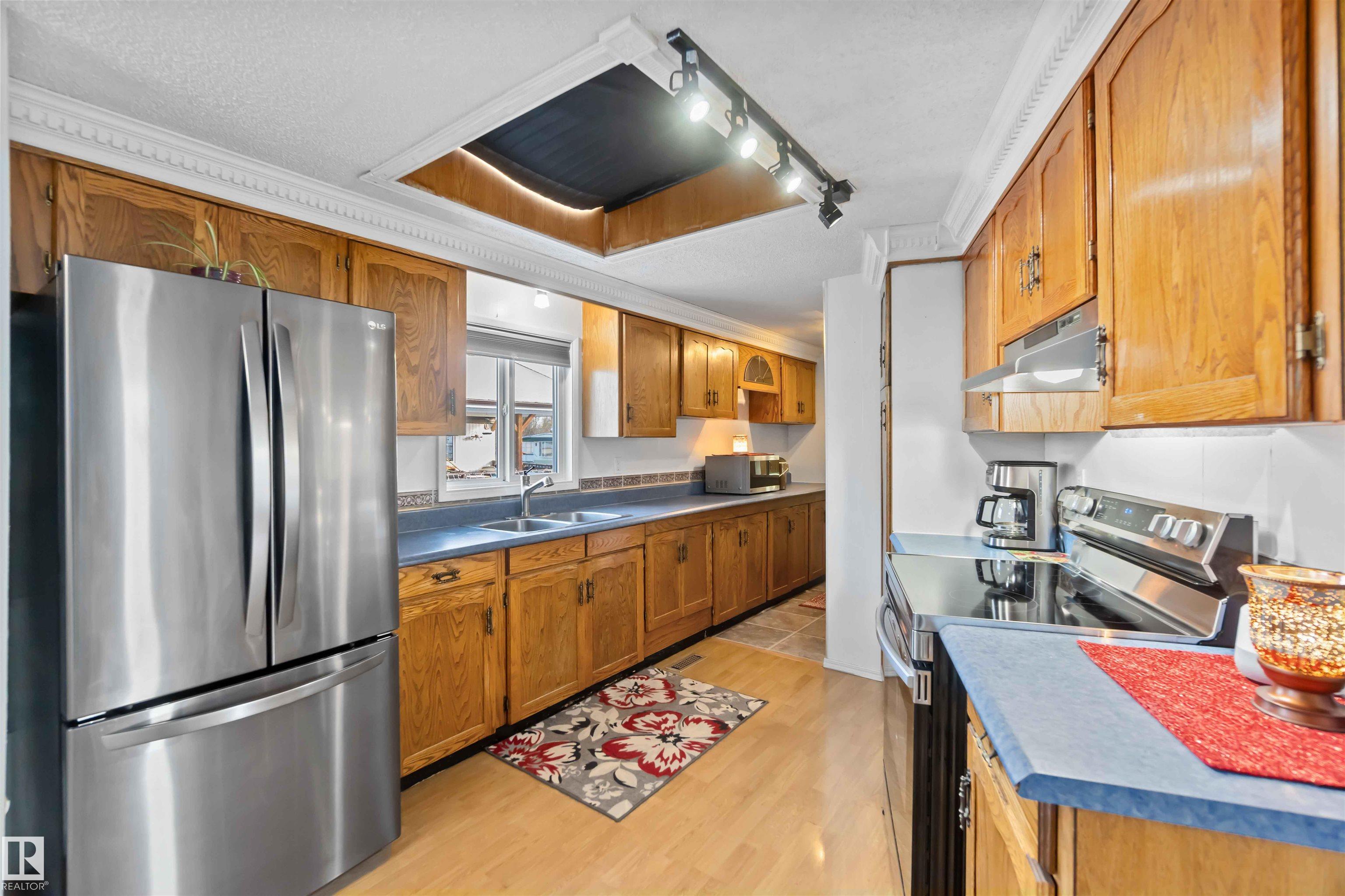 Well-Maintained 3 Bedroom Home with Heated Attached Garage! This 1,194 sq ft home features a single attached heated garage?with the garage heater installed just last year?and a large fenced lot that you own (no lot fees!). Inside, the home offers a bright living room with a cozy corner fireplace, a kitchen with newer stainless steel appliances and patio doors leading to the side deck, plus a 4-piece main bath and laundry room with exterior access. The primary bedroom includes a walk-in closet and 3-piece ensuite, while two additional bedrooms provide plenty of space for family or guests. A comfortable, move-in-ready home with great value and a functional layout!