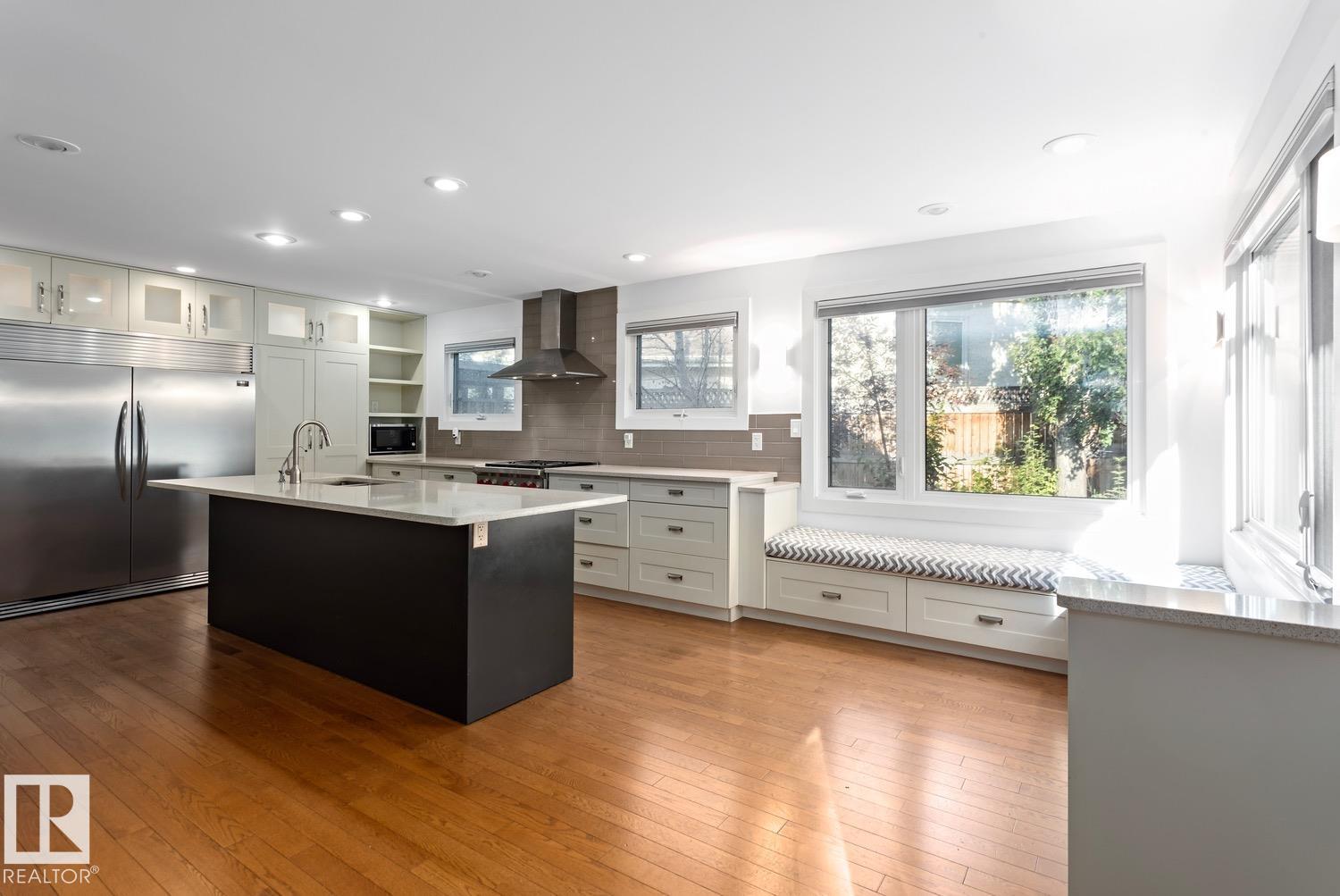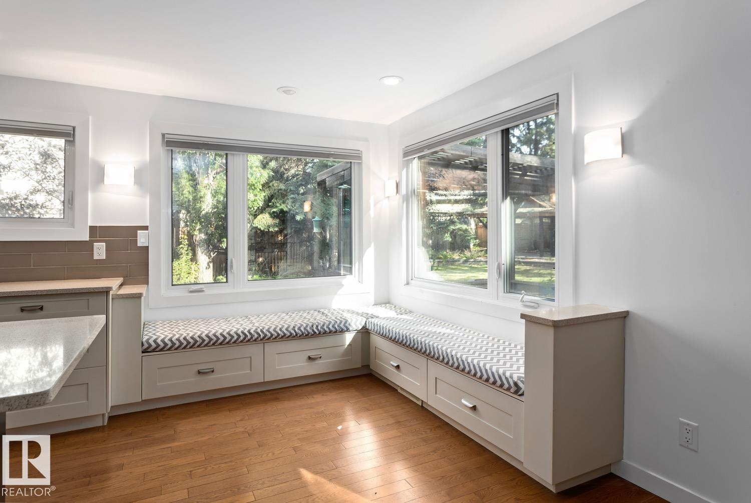 Nestled on an oversized pie-lot in a quiet CUL-DE-SAC in prestigious Oleskiw, this 2,700+sq.ft family-friendly gem is walking distance to top-rated schools, the Wolf Willow stairs & Edmonton?s scenic river valley. With 4+1 bedrooms, 3.5 baths & updates throughout, this character-filled home is move-in ready! A double-height foyer & open-to-above living space (with a wood-burning fireplace) welcome you in. The renovated kitchen boasts quartz counters, S/S appliances incl a Wolf range & a massive fridge/freezer; plenty of windows overlook the incredible backyard. Indoor/outdoor entertaining is easy in your landscaped backyard incl. fire pit & gazebo. Upstairs features 4 bedrooms + office (easily a 5th bed) with hardwood throughout. You'll love the spacious primary suite with walk-in closet & 4PC ensuite (dual vanities). The FULLY FINISHED BASEMENT includes a rec/theatre room, 5th bed, 3PC ensuite & TEMP-CONTROLLED WINE CELLAR. Updated mechanical, windows & thoughtful finishes make this a rare Oleskiw find!