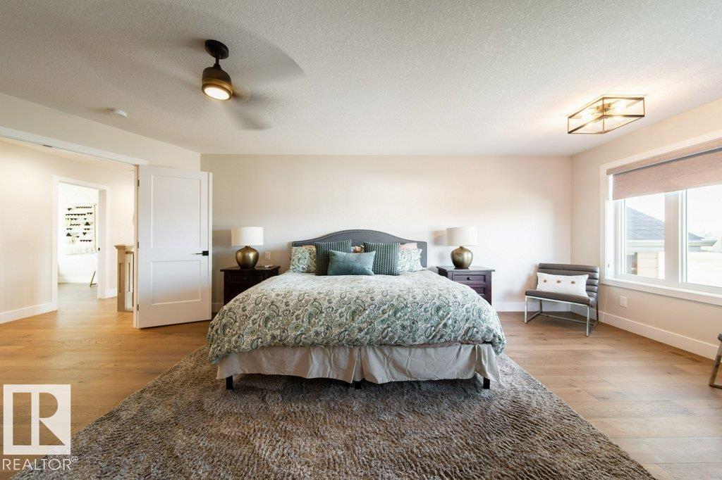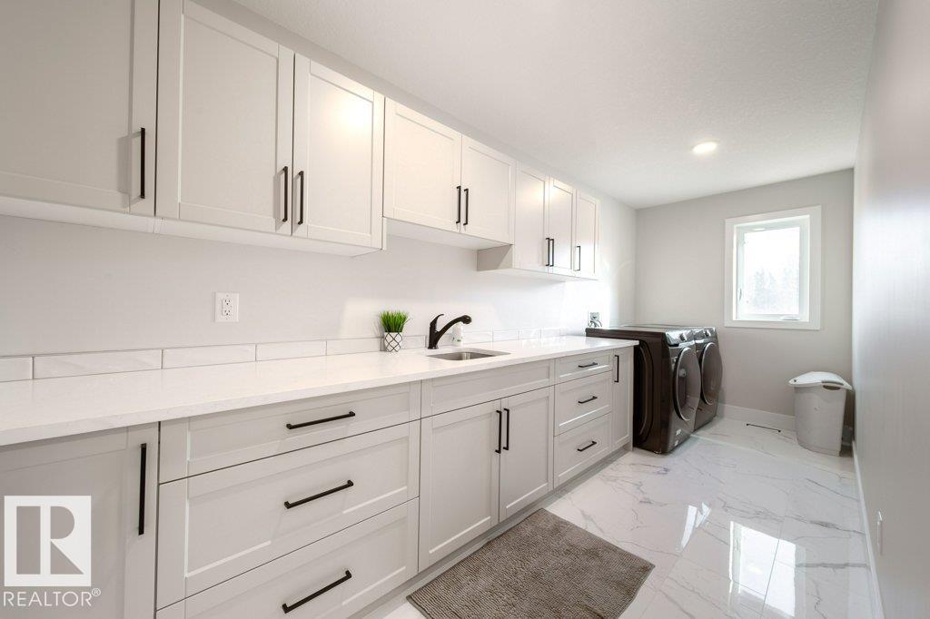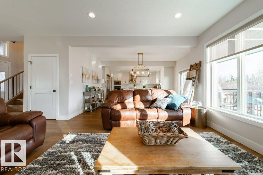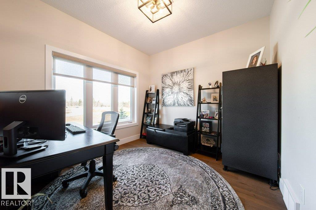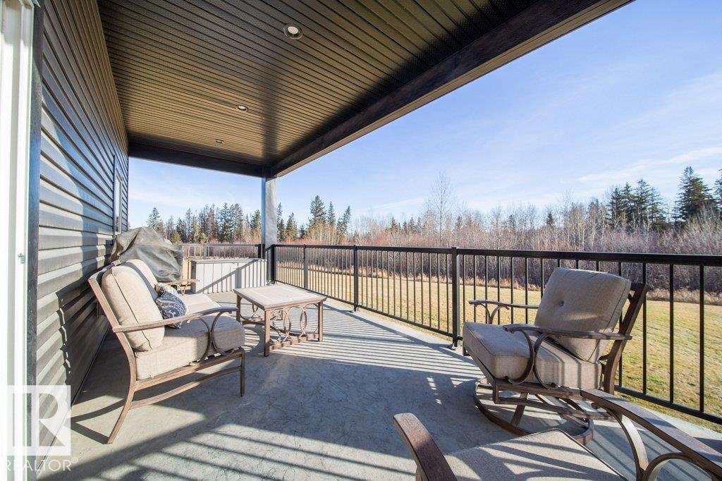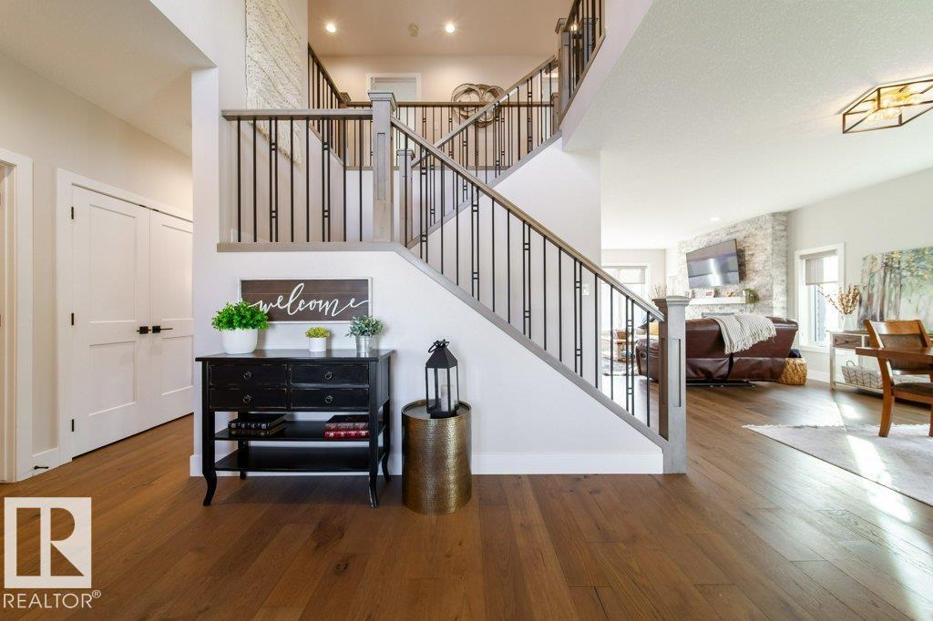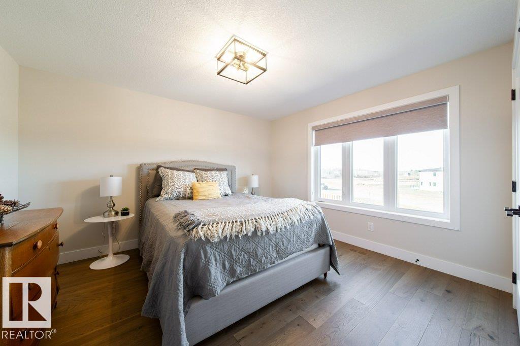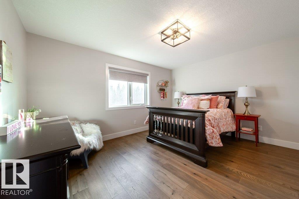 10 minutes to Edmonton. Spring Meadow Estates. Shows like new! Close to golf course. Modern Luxury Acreage on 1 acre lot with full city service. Backing southeast and onto trees, with plenty of sunshine and space. Gorgeous 2 story 3,107sf plus 1,358sf fully finished walkout basement. 4+1 Bedrooms and 5 Baths. Central Air Conditioned. Triple garage that can park 4 cars, fully heated and with epoxy flooring and drain. Professionally finished from top to bottom. Exquisite entry way next to Den. Gorgeous upgraded hardwood and marble tile flooring. Quartz countertops throughout. Huge gourmet island kitchen with top of the line appliances, and walk-in pantry room. Great Room with fireplace. Eating nook open to Covered deck, with gas line. Upstairs with private Master suite and walk-in dressing room. Second bedroom with full ensuite bath, next to two more spacious Bedroom. Large laundry room with cabinets and sink. Basement fully finished with fireplace, Recreational Room and a Gym. Loads of storage and closets.