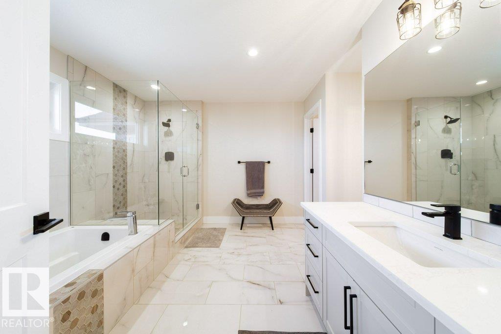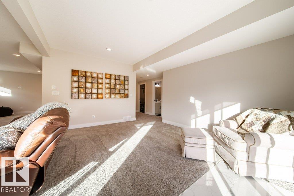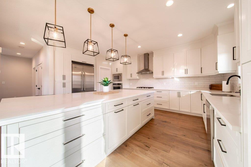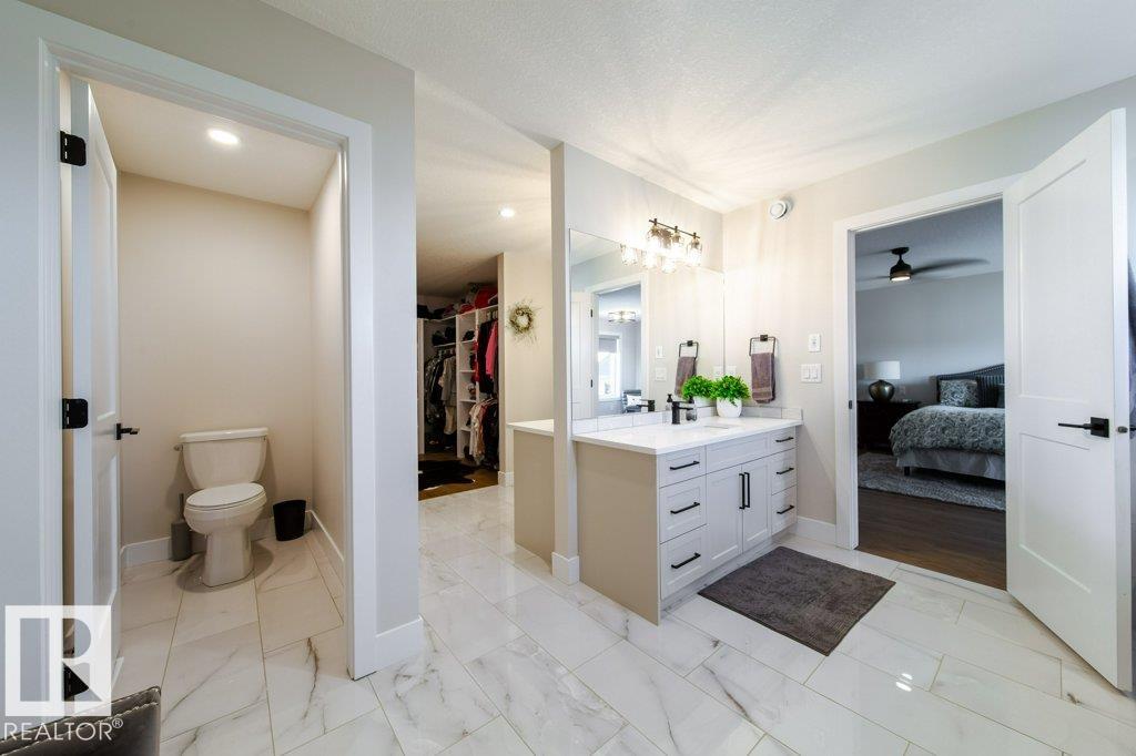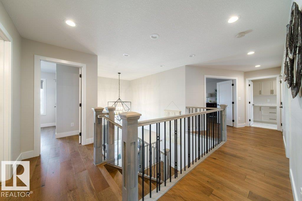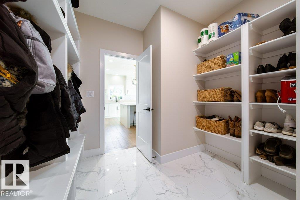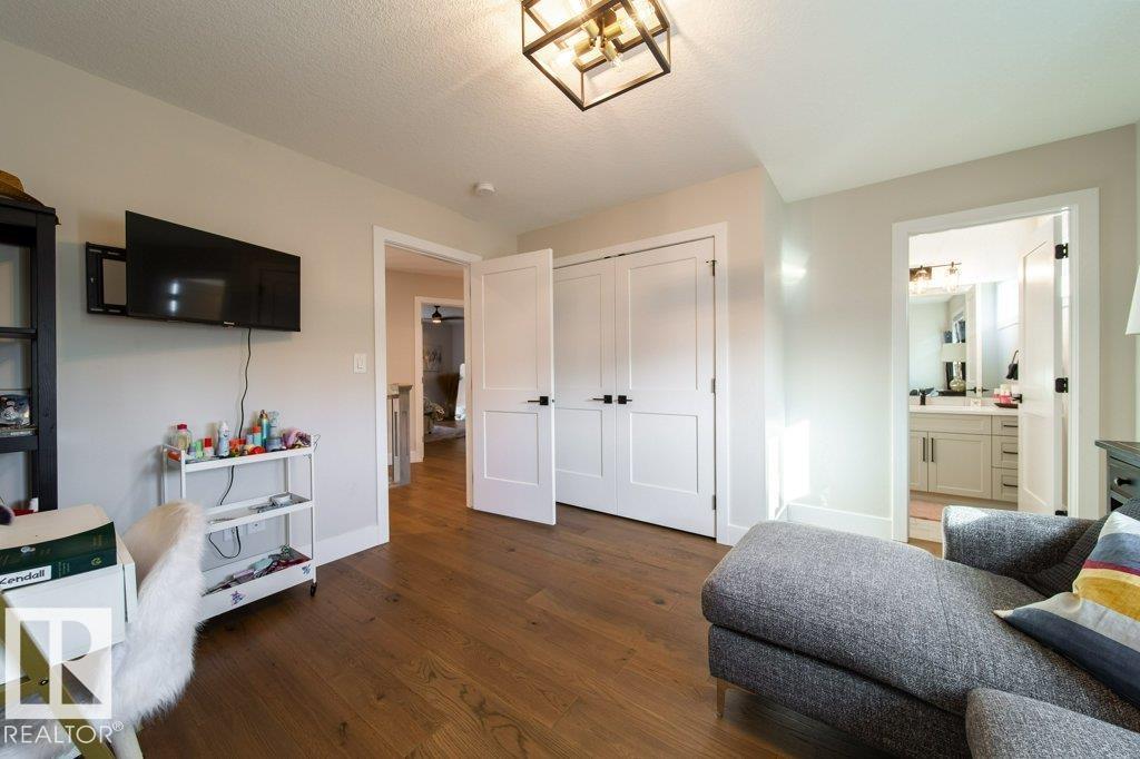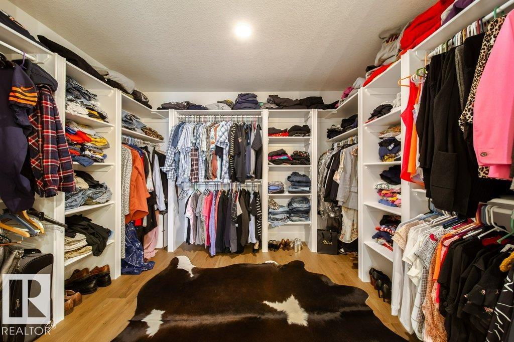 10 minutes to Edmonton. Spring Meadow Estates. Shows like new! Close to golf course. Modern Luxury Acreage on 1 acre lot with full city service. Backing southeast and onto trees, with plenty of sunshine and space. Gorgeous 2 story 3,107sf plus 1,358sf fully finished walkout basement. 4+1 Bedrooms and 5 Baths. Central Air Conditioned. Triple garage that can park 4 cars, fully heated and with epoxy flooring and drain. Professionally finished from top to bottom. Exquisite entry way next to Den. Gorgeous upgraded hardwood and marble tile flooring. Quartz countertops throughout. Huge gourmet island kitchen with top of the line appliances, and walk-in pantry room. Great Room with fireplace. Eating nook open to Covered deck, with gas line. Upstairs with private Master suite and walk-in dressing room. Second bedroom with full ensuite bath, next to two more spacious Bedroom. Large laundry room with cabinets and sink. Basement fully finished with fireplace, Recreational Room and a Gym. Loads of storage and closets.