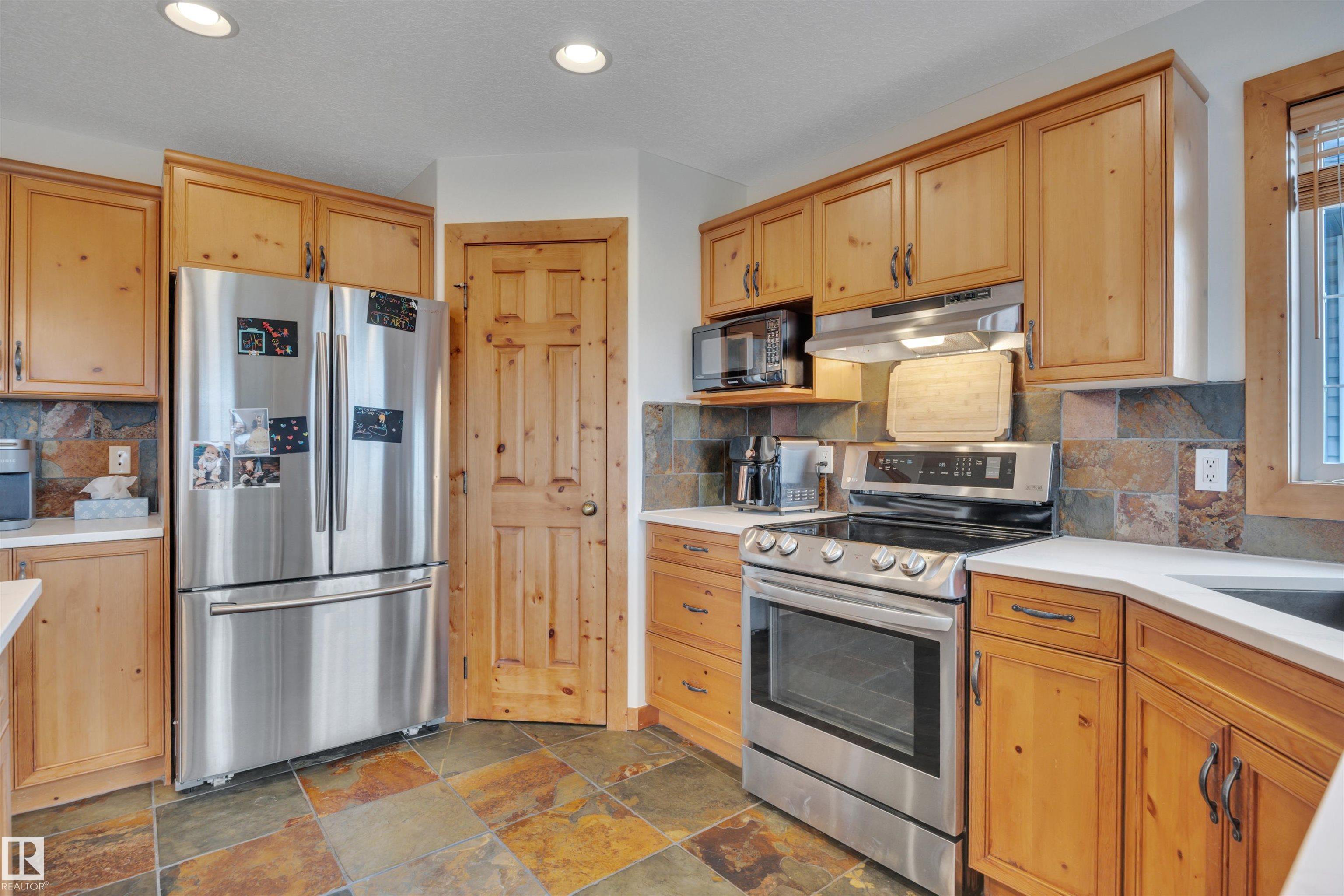 Luxury living with peaceful pond & fountain views in Glastonbury. This former Landmark Lottery Home combines refined finishes with a warm, inviting charm over 2100 sq. ft. of elegant living space. A welcoming front verandah leads into the foyer with natural slate floors, flowing into the formal living/dining rooms accented with rich pine details. The main floor also features a 2pc bath, mud/laundry room w/ garage access, & an inviting great room with a thermostat-controlled gas stove. The BRAND NEW island in kitchen includes a pantry, stainless-steel appliances, a bright dining nook w/ access to the upper deck. A sweeping staircase leads up to four bedrooms, a 4pc main bath, & a beautifully renovated primary ensuite offering a spa-like retreat. The walkout lower level provides a finished family room with direct access to the covered patio and expansive yard & ample storage. A rare opportunity to enjoy elevated living, stunning views, and the natural beauty of Glastonbury?s parks, trails, and amenities.