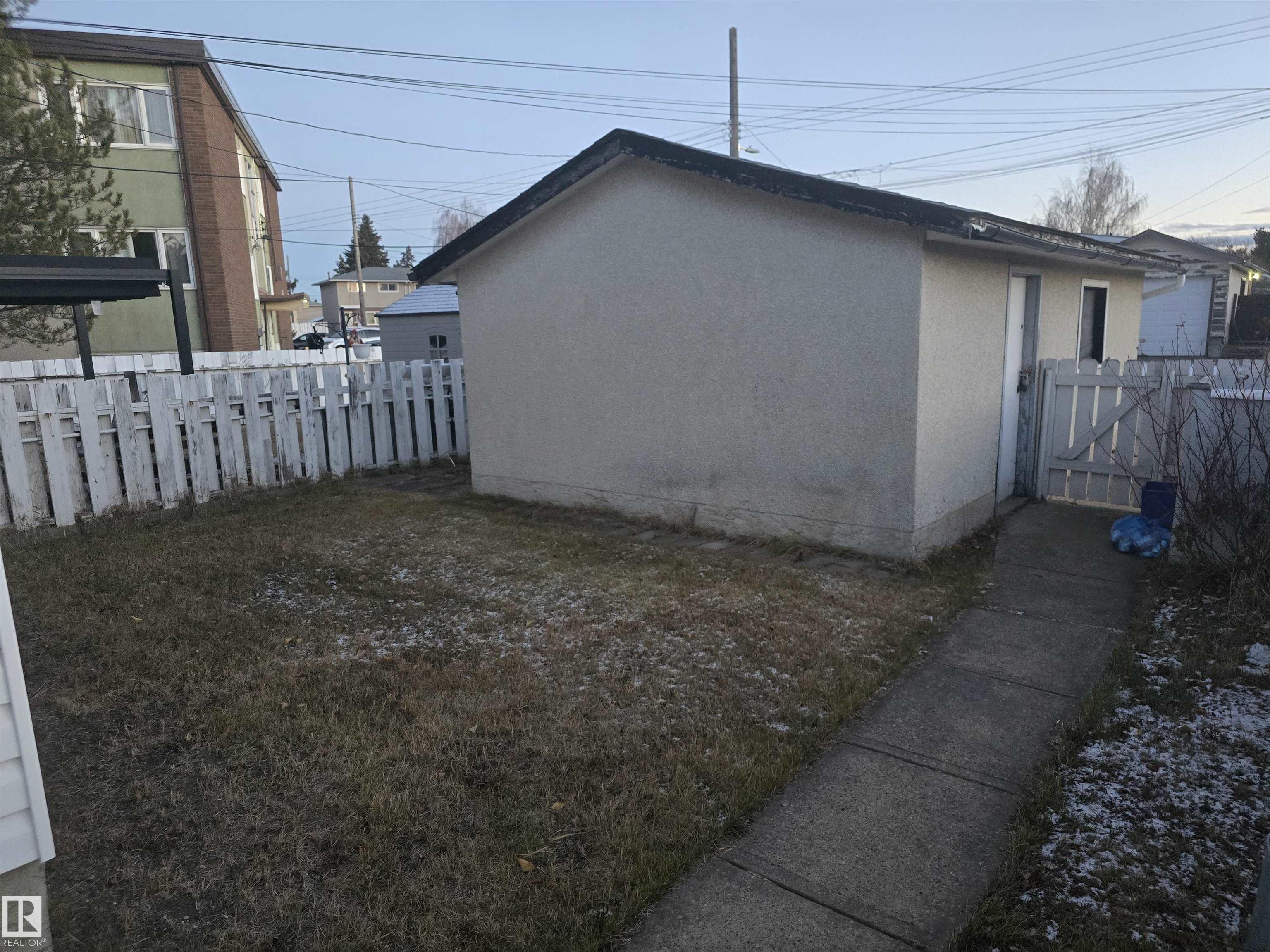 Discover the comfort and convenience of this 1025 SF bungalow-style half duplex in Kensington! The main floor features 3 bedrooms a welcoming living/dining room sunny kitchen and a 4-piece bathroom. The finished basement extends your living space with a large rec room with built-in bookshelves generous play space 3 piece bathroom laundry room and storage. Enjoy the side deck for relaxing outdoors on a beautiful summer day. Out back is your oversized single car garage with extra room to park on the adjacent concrete pad. This wonderful home is located across the street from an elementary school playground community league and bus stop. Every amenity or shop you could possibly need is just minutes away! Welcome Home.