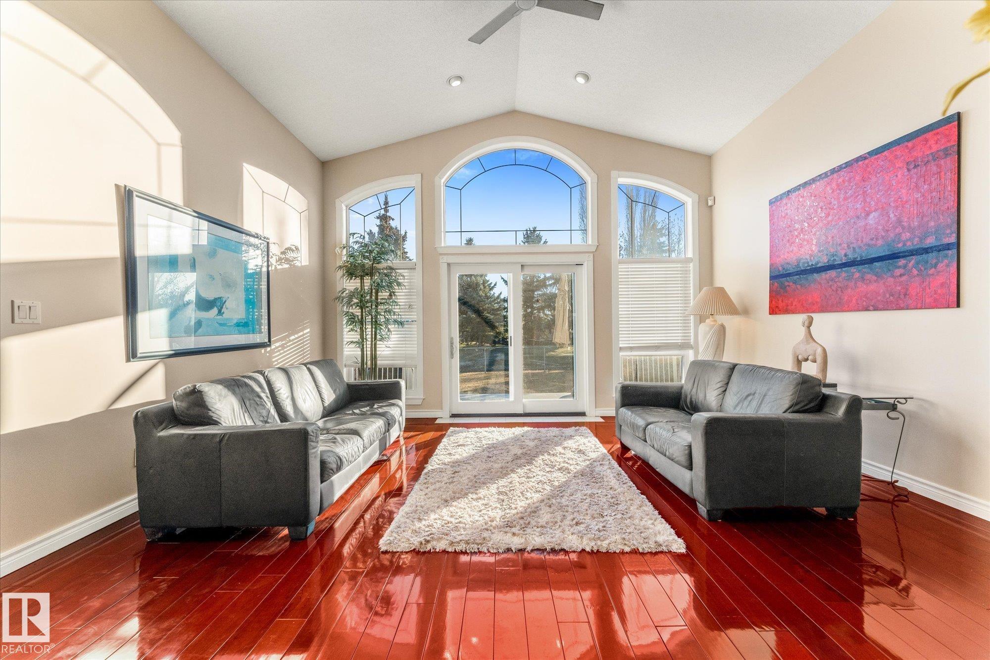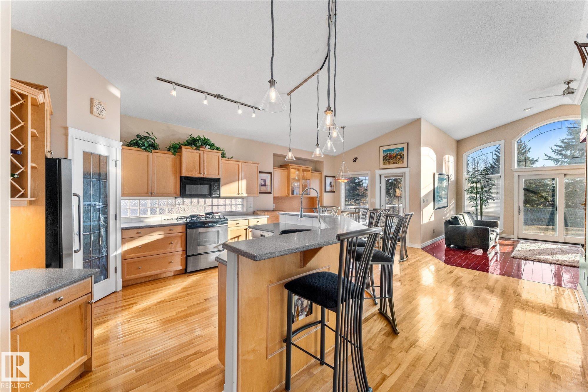 *** Could This Be The BEST-Value Bungalow in Lewis Estates? *** If you're searching for a bungalow with quick access to the golf course, there are a few options nearby. Unfortunately many of them are townhomes with condo fees, small yards, and not nearly as much space. If you seek the convenience of "Single Level Living" and want the privacy that comes from a detached home w/ a double garage then Dear Buyer, consider this beautiful abode on prestigious Proctor Wind! One of the rare locations where you back the golf course AND have no neighbours out front (you're across the street from expansive park space, great to take the kids/grandkids to or stay home and keep an eye from the window!) MAIN FLOOR: Vaulted ceilings. Open-concept kitchen + formal dining room. Bright living room opens to the rear deck & large fenced yard. Primary Bdrm has 5pc ensuite + walk-in closet. ANOTHER 4pc main bath & 2nd Bdrm (great home office!). DOWN: Theatre room. 3rd FULL bath. Bdrms 3+4. Wet Bar. Rec room. This one has it all!