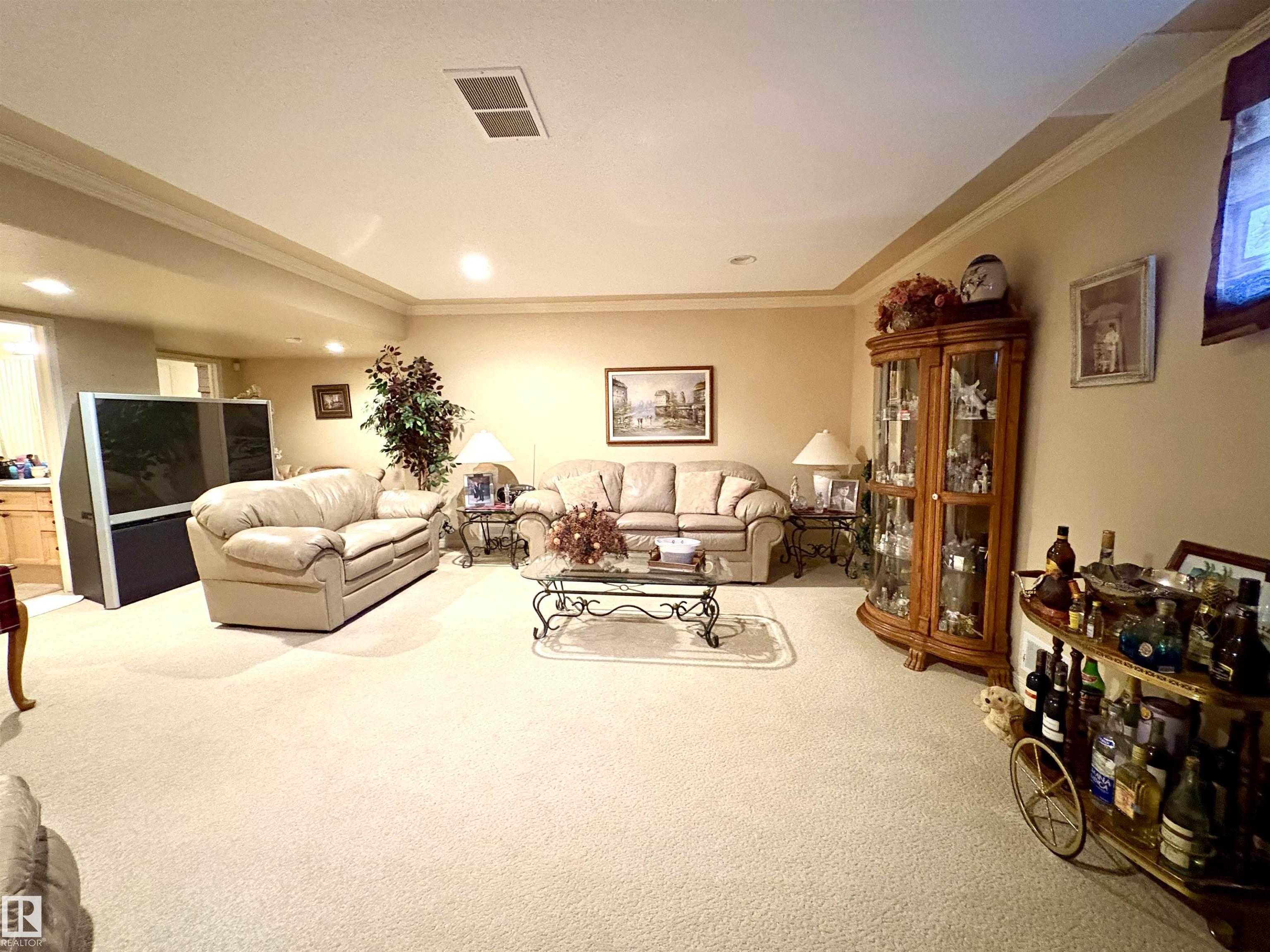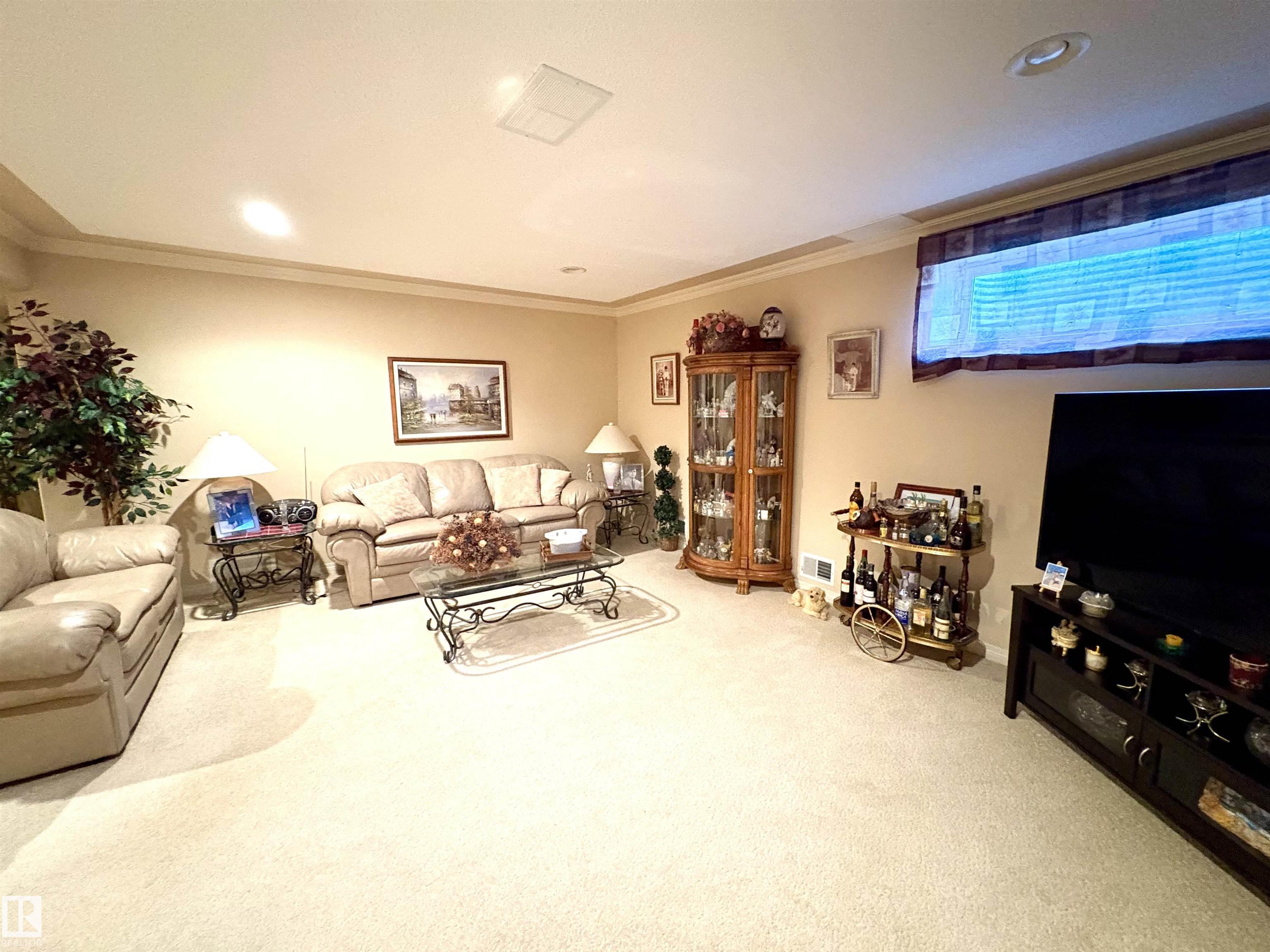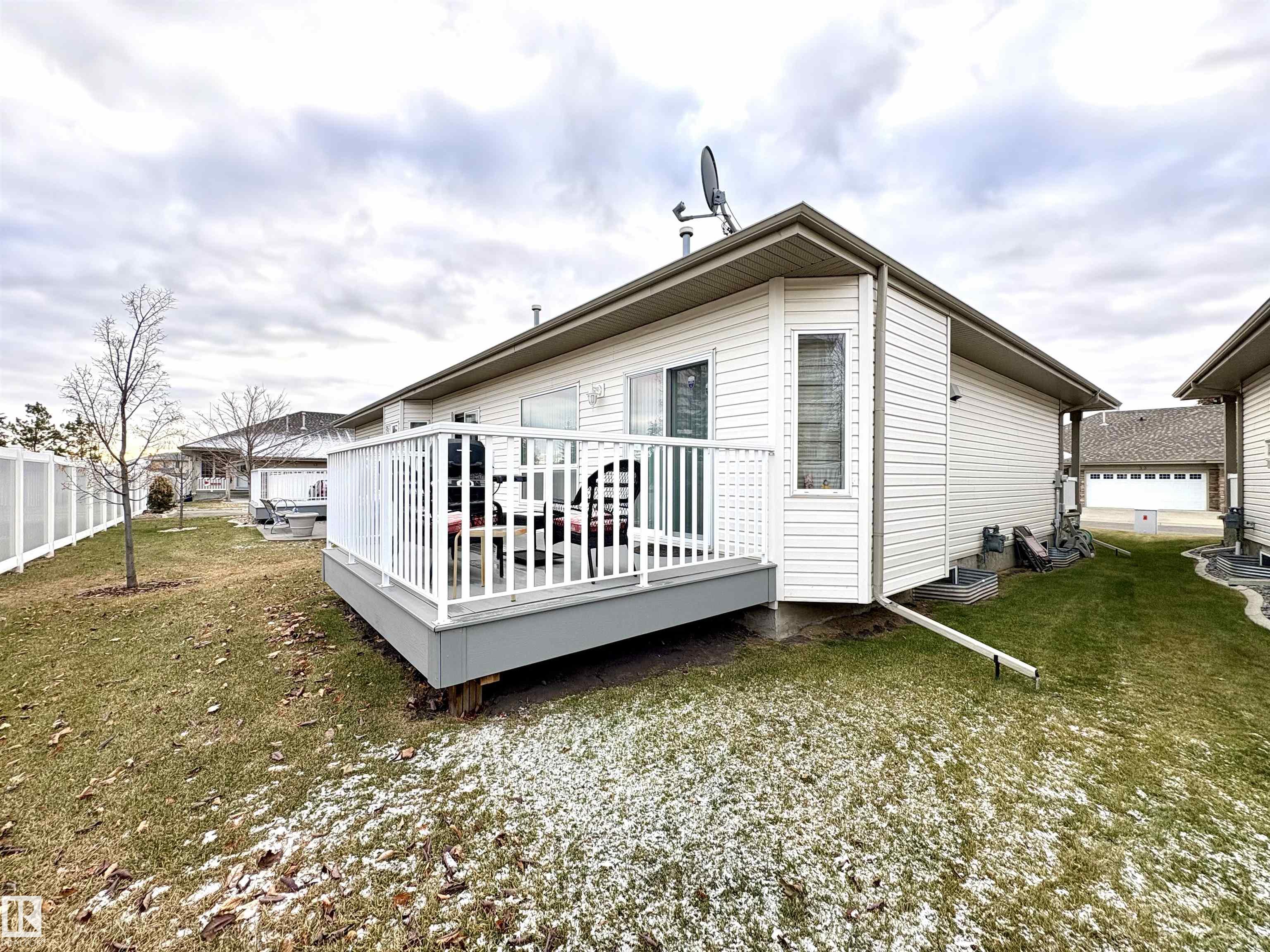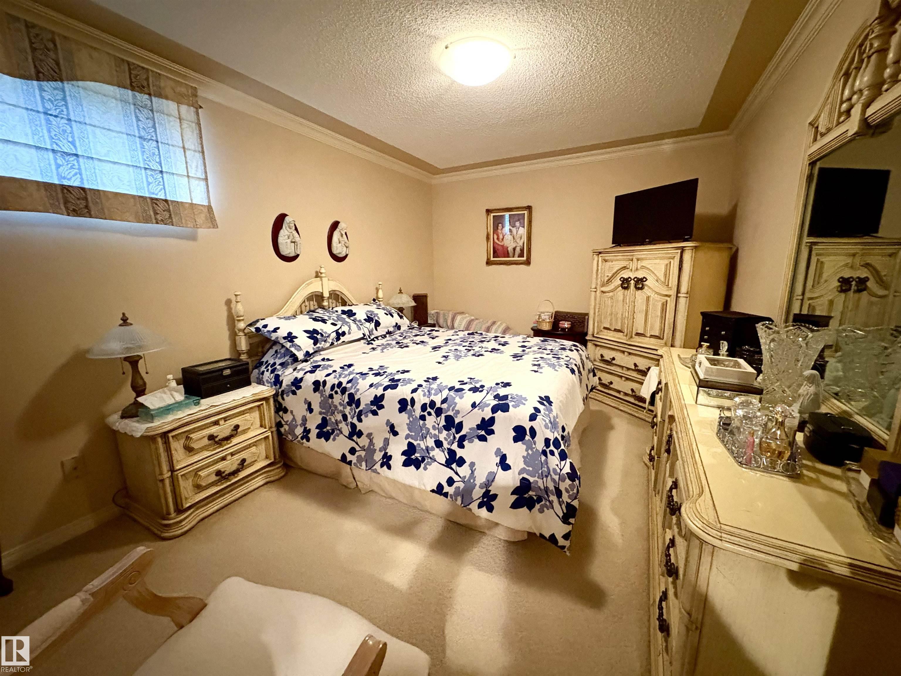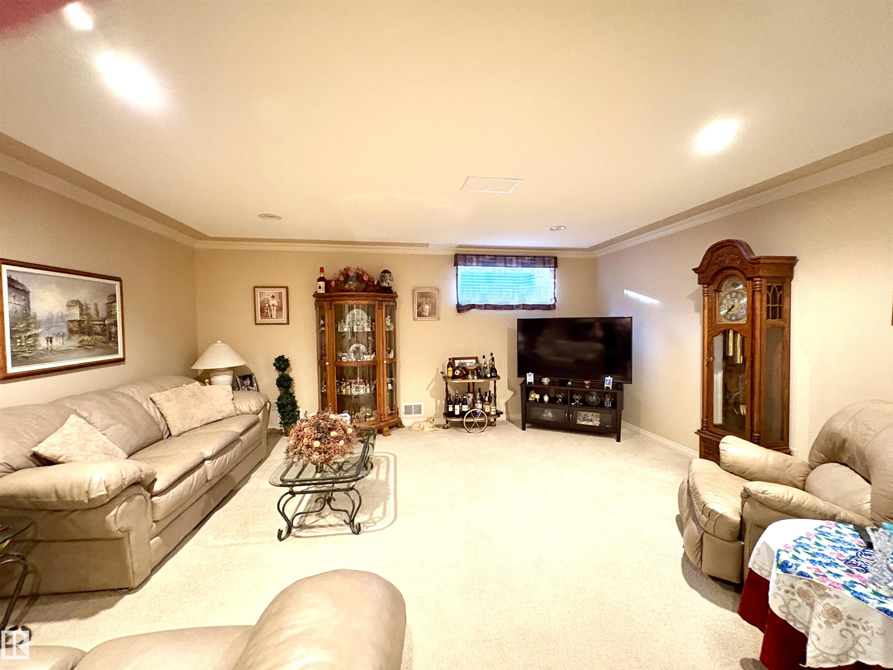 This beautiful well cared for bungalow half duplex is located in the well maintained adult complex of Castlebrook Village. Built by Heredity Homes, this original owner home is fully finished with well laid out living space. Main floor 9? ceilings with crown molding throughout. Large kitchen with oak cabinets, corner storage pantry and centre island with breakfast bar. The patio doors lead to a private east facing deck. Relax in the large living room with a corner natural gas fireplace. Primary bedroom with 3 pc ensuite & walk in closet, a second bedroom/flex room at the front of the home, 4-piece bathroom and stackable laundry closet complete the main floor. Lower level features a huge family room, 2 large bedrooms and another 4-piece bathroom. New hot water tank and water softener system. The exterior has a covered front porch & a beautiful private yard. Oversized insulated double attached garage for parking and storage. Located close to shopping, transit and easy access to the Anthony Henday.