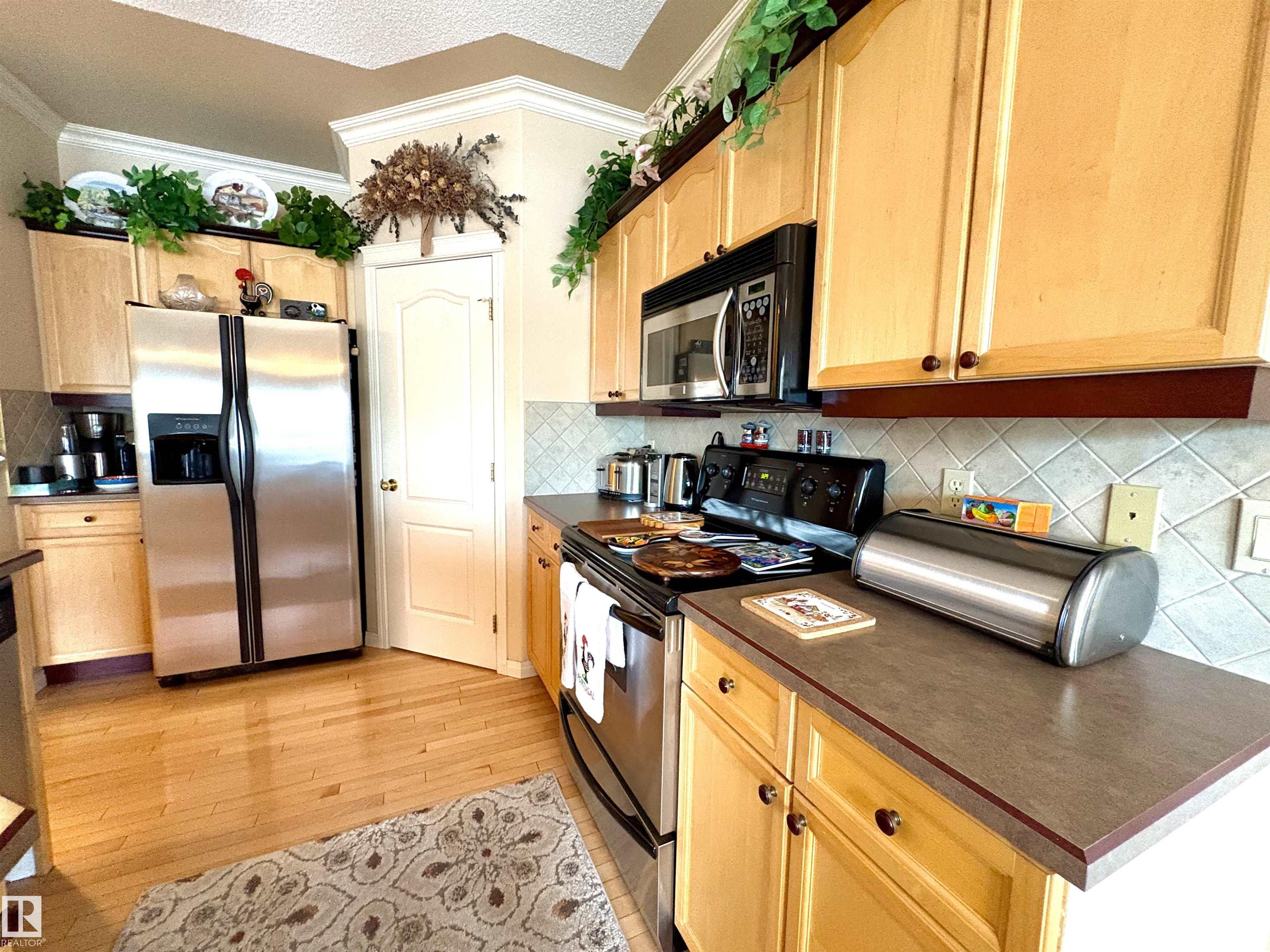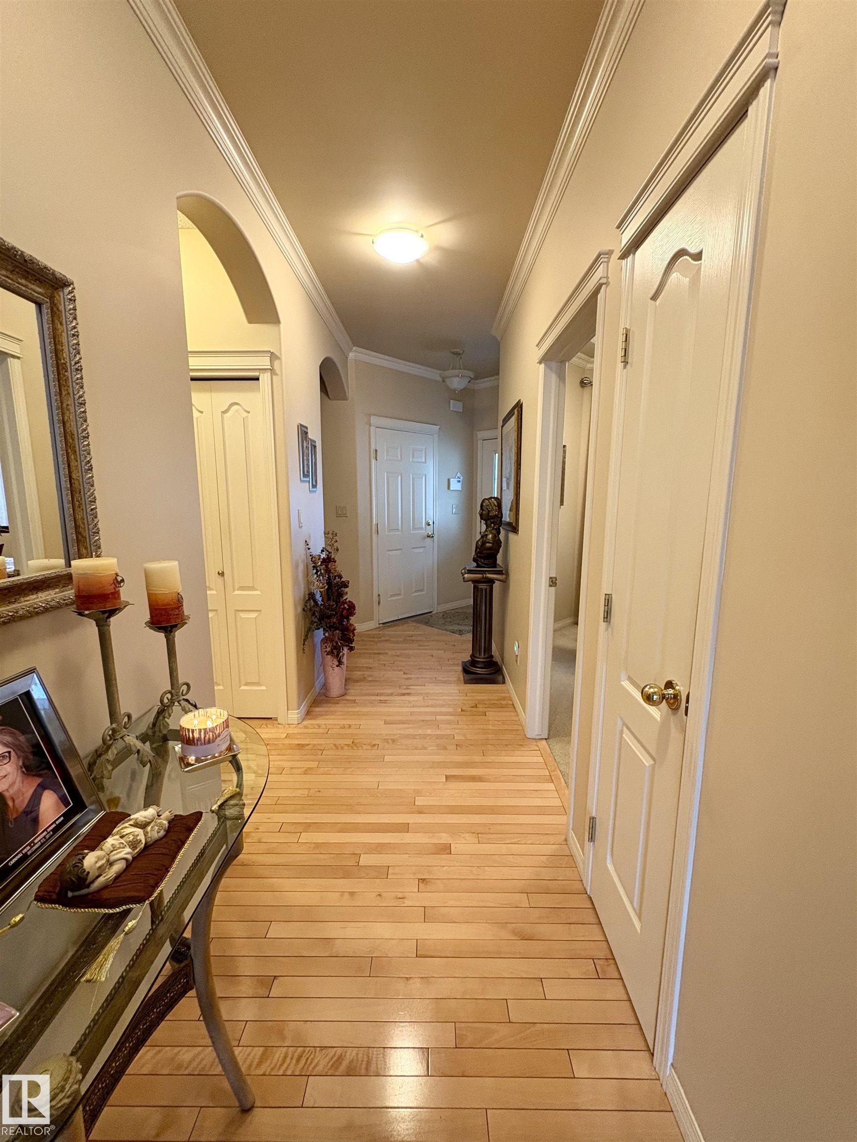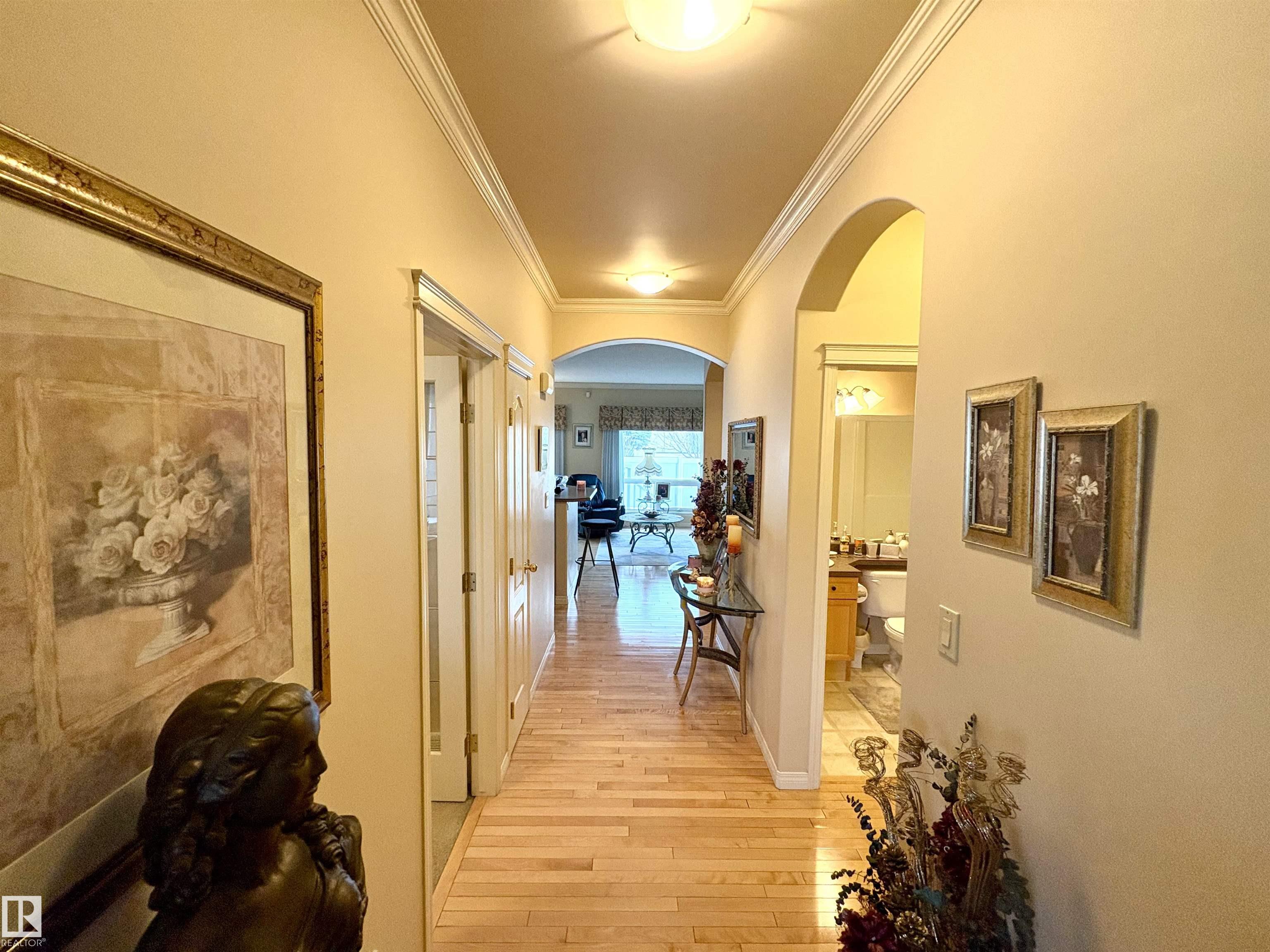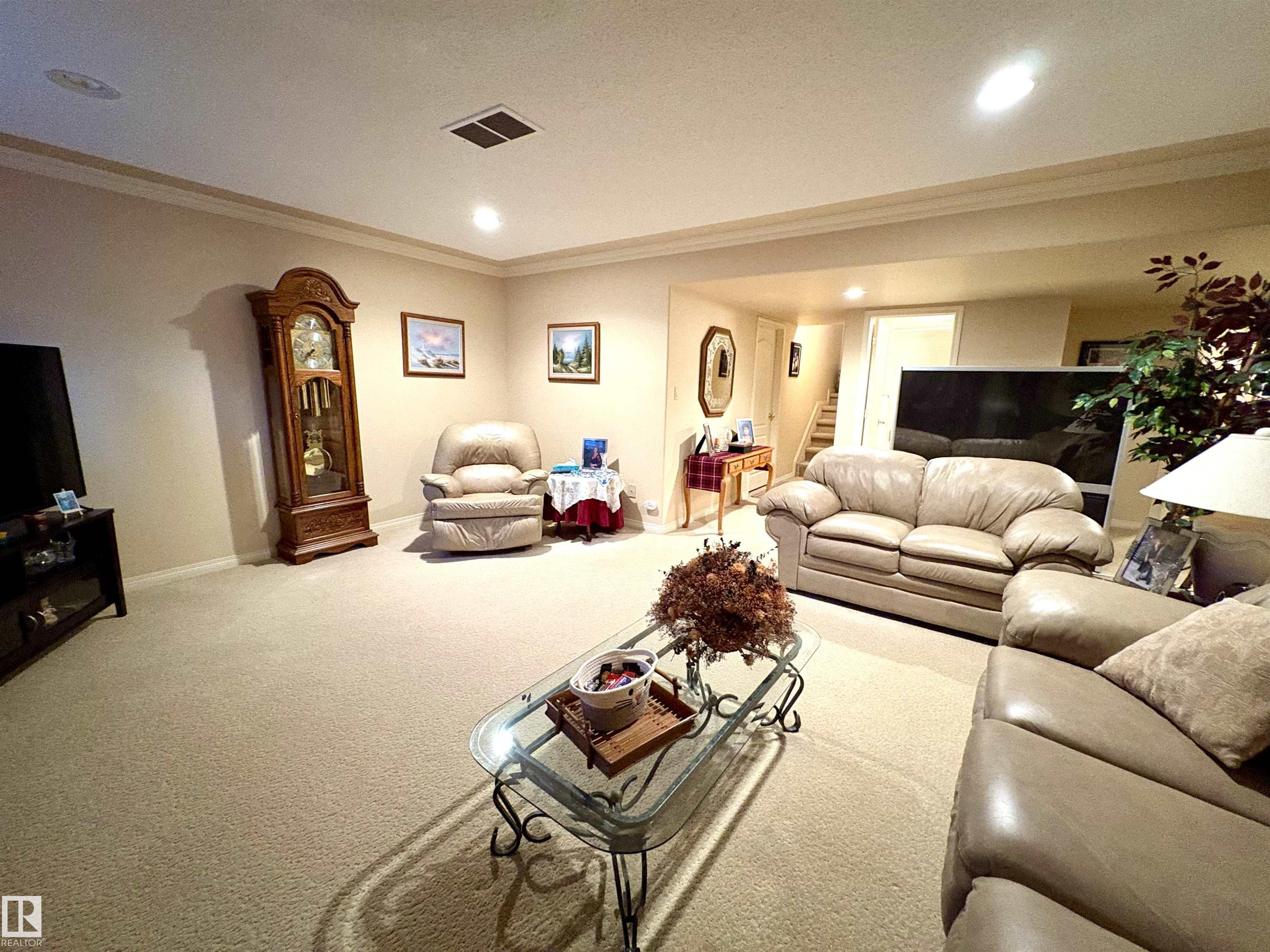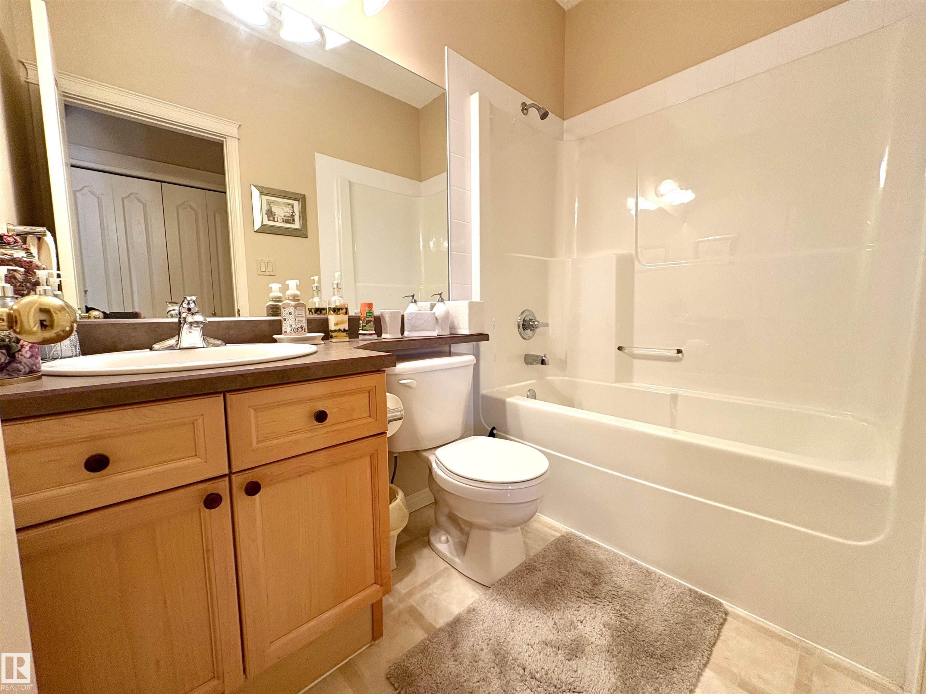 This beautiful well cared for bungalow half duplex is located in the well maintained adult complex of Castlebrook Village. Built by Heredity Homes, this original owner home is fully finished with well laid out living space. Main floor 9? ceilings with crown molding throughout. Large kitchen with oak cabinets, corner storage pantry and centre island with breakfast bar. The patio doors lead to a private east facing deck. Relax in the large living room with a corner natural gas fireplace. Primary bedroom with 3 pc ensuite & walk in closet, a second bedroom/flex room at the front of the home, 4-piece bathroom and stackable laundry closet complete the main floor. Lower level features a huge family room, 2 large bedrooms and another 4-piece bathroom. New hot water tank and water softener system. The exterior has a covered front porch & a beautiful private yard. Oversized insulated double attached garage for parking and storage. Located close to shopping, transit and easy access to the Anthony Henday.