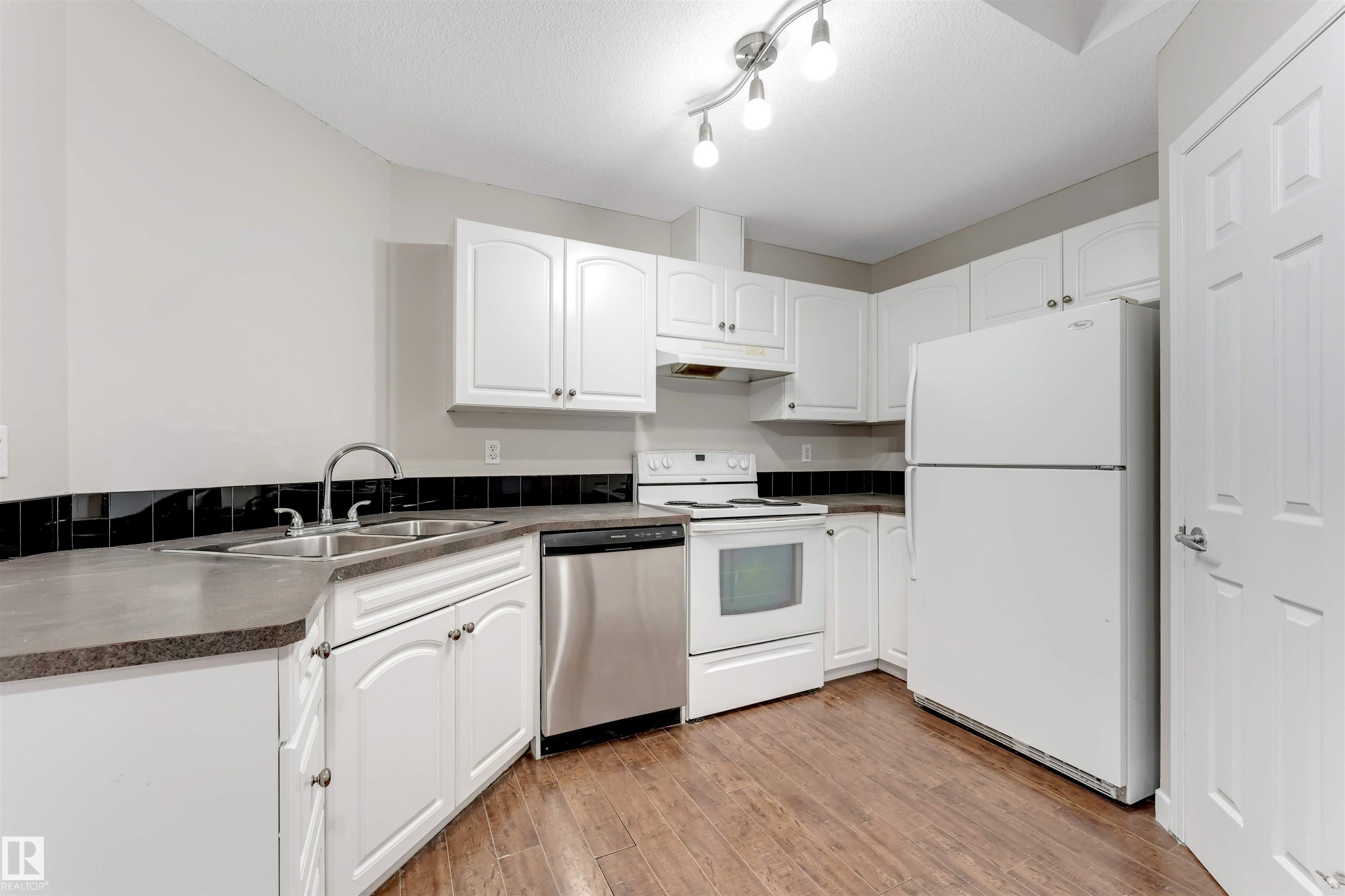 Best priced condo in Ellerslie. Enjoy the good life in this 2 Bedroom & 1 Full bath upper floor carriage style Bungalow townhouse with 1 surface stall as a first time home or an investment property. Go up the stairs to the reveal the living room and corner U-Kitchen and white appliances. There is an in suite laundry and a balcony with railing looking into Edwards Drive. This building location is super convenient to reach the stores of Ellerslie Crossing and the new plaza on the corner of Summerside and 66 Street. Transportation near by for quick convenience. Unit features laminate flooring and tiles in the bathroom. Large windows allows a lot of natural light making the house bright and open and inviting. There is place for a TV wall with enough space for larger seating and proper dinning in the middle. Great first home! Own today.