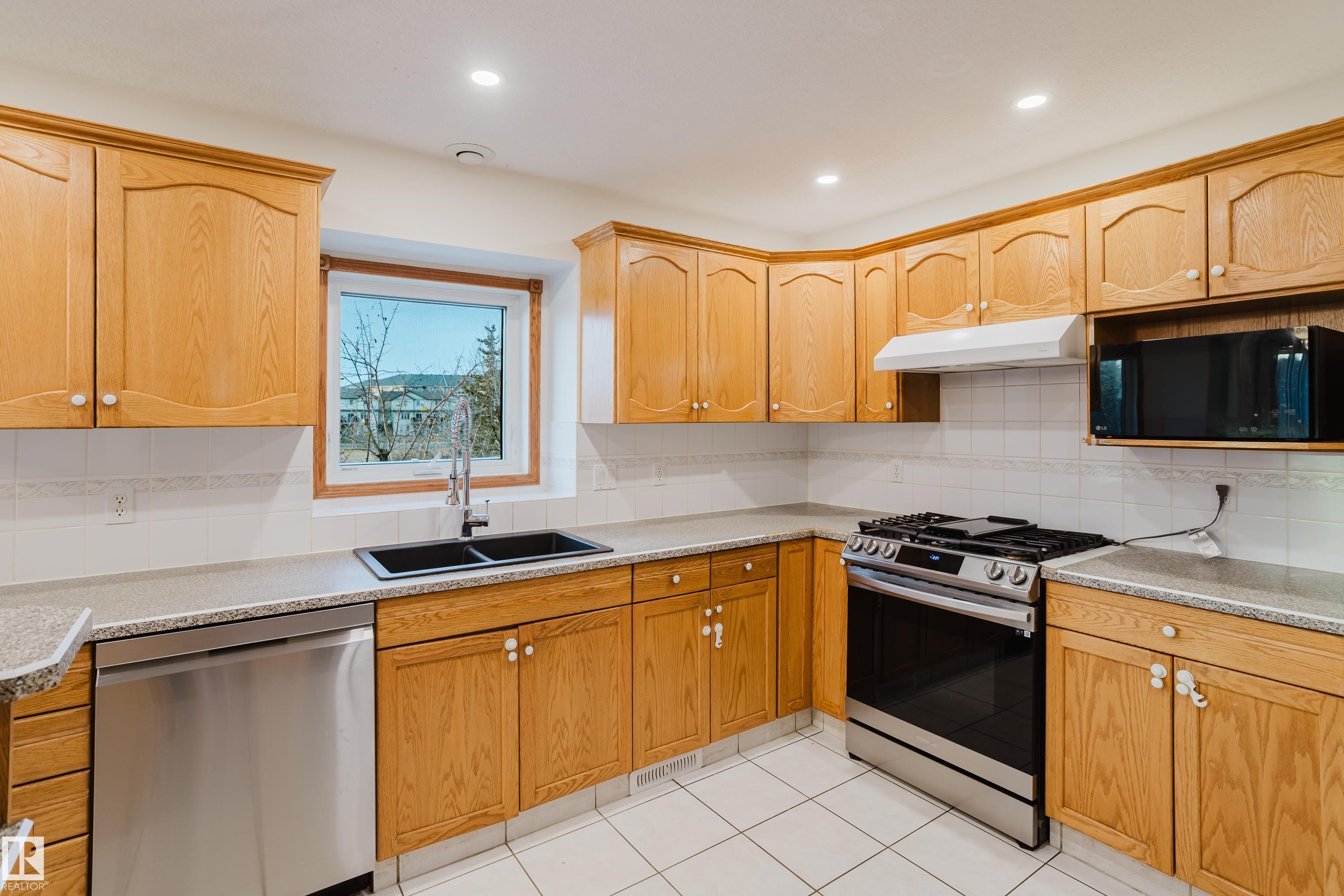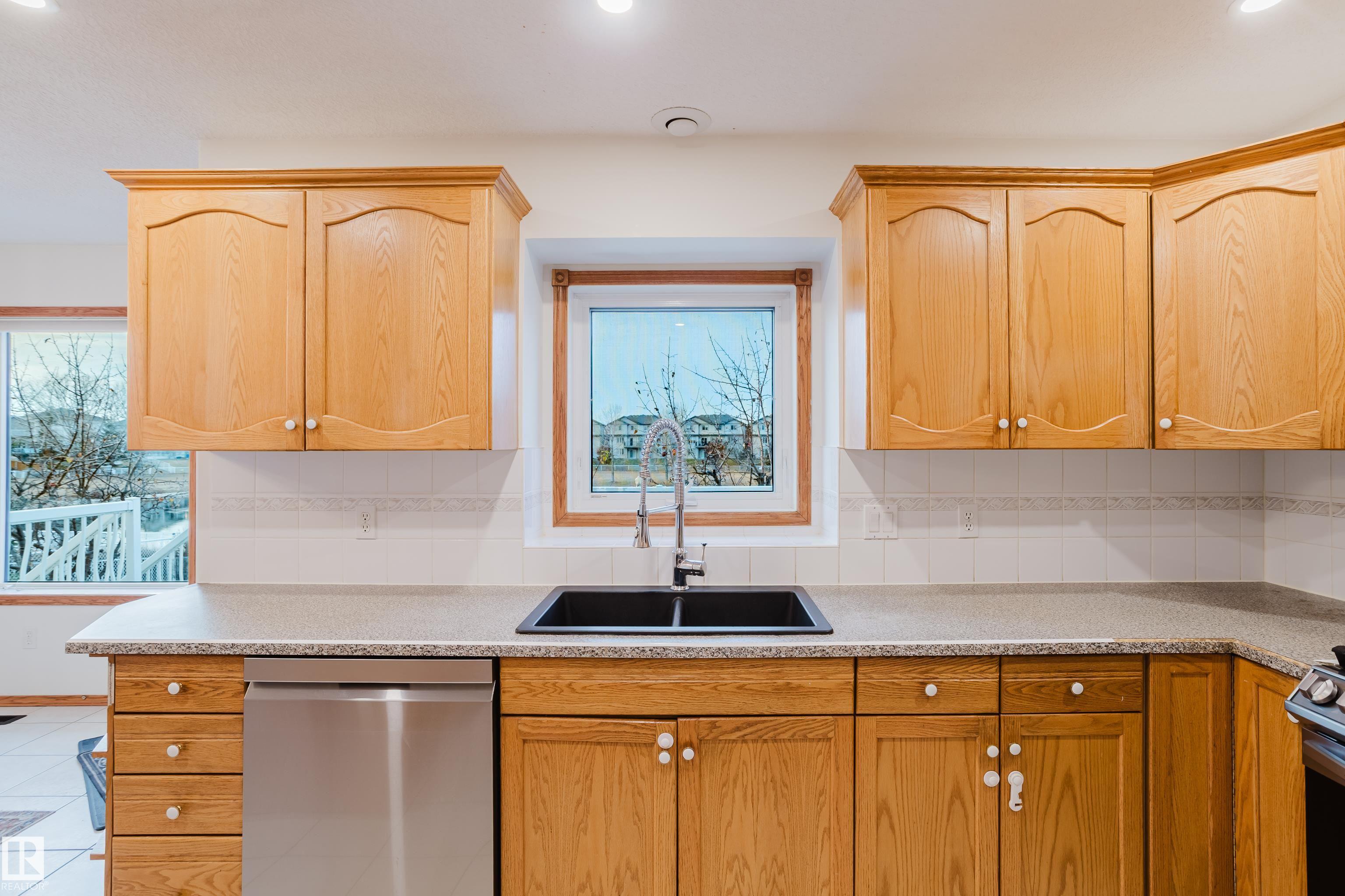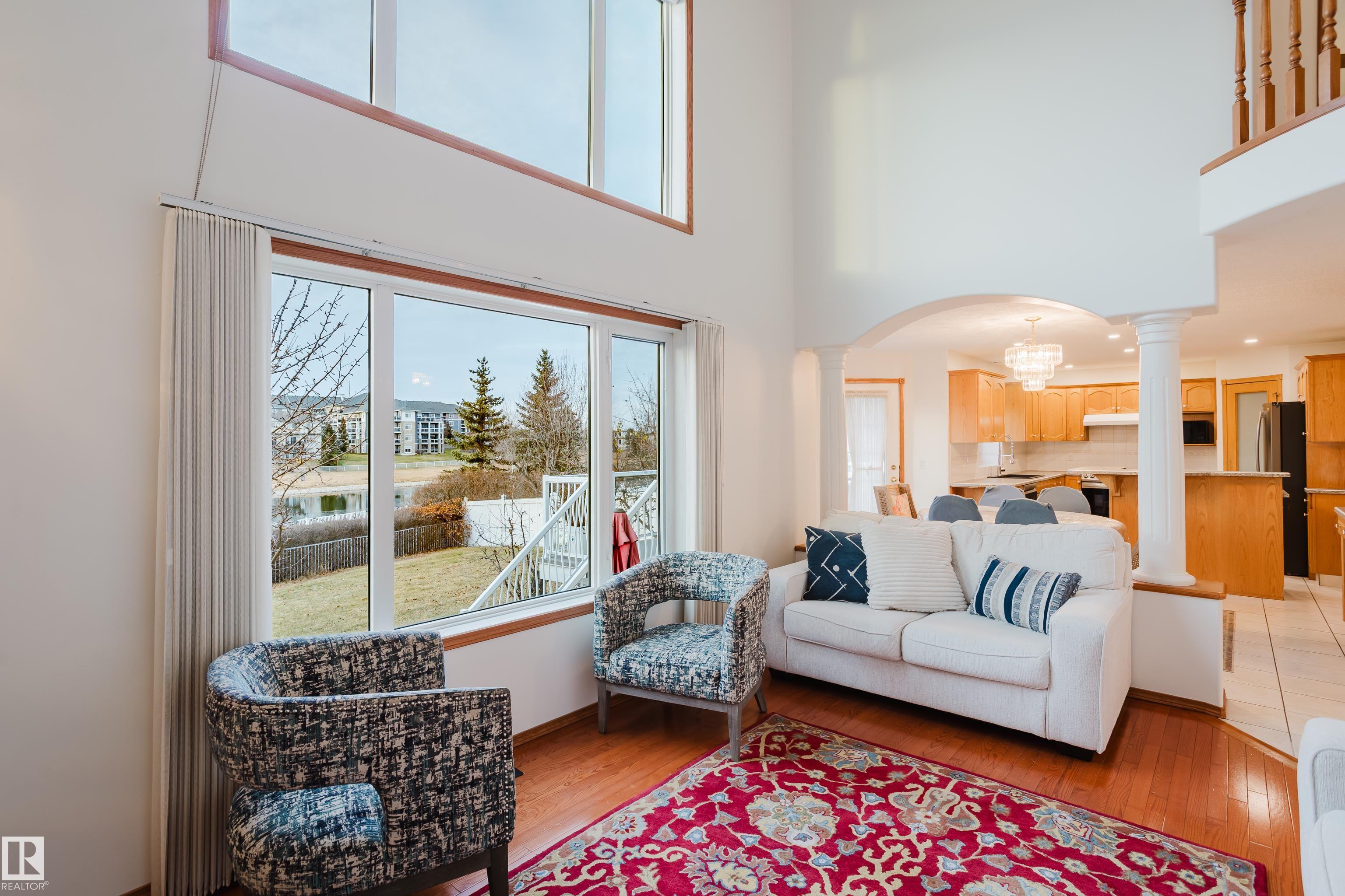 This property is located on a large lot backing a lake in the Oxford area. It is a short walk from a community playground and park. The home features high ceilings in the formal living room and the great room, with multiple tall windows providing natural light and views of the lake. The main floor includes a bedroom and a full bathroom. The kitchen has a gas stove. The home offers approximately 3,500 sq ft of living space, with three bedrooms upstairs, including a primary suite with space for a king-size bed, a sitting area, and an ensuite with a Jacuzzi tub and dual vanities. The upper floor also has a stackable washer and dryer. The fully finished basement includes two bedrooms, a kitchenette, a second laundry, and a full bathroom, with a separate entrance from the garage. The property has a total of six bedrooms. The backyard is landscaped. It is within a 10-minute walk to Elizabeth Finch School (K?9), and close to transit and shopping. Ample parking is available in front for guests and visitors.
