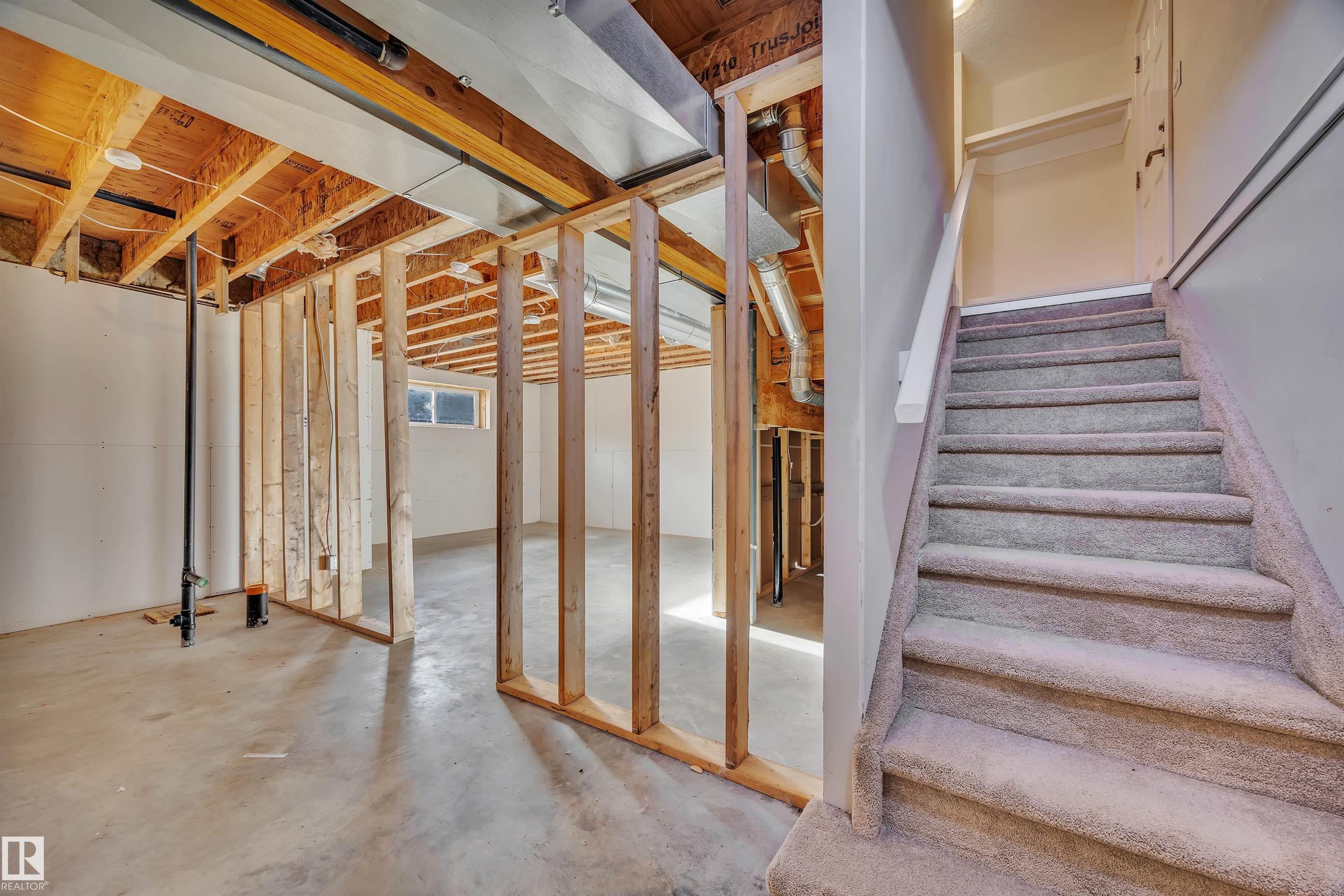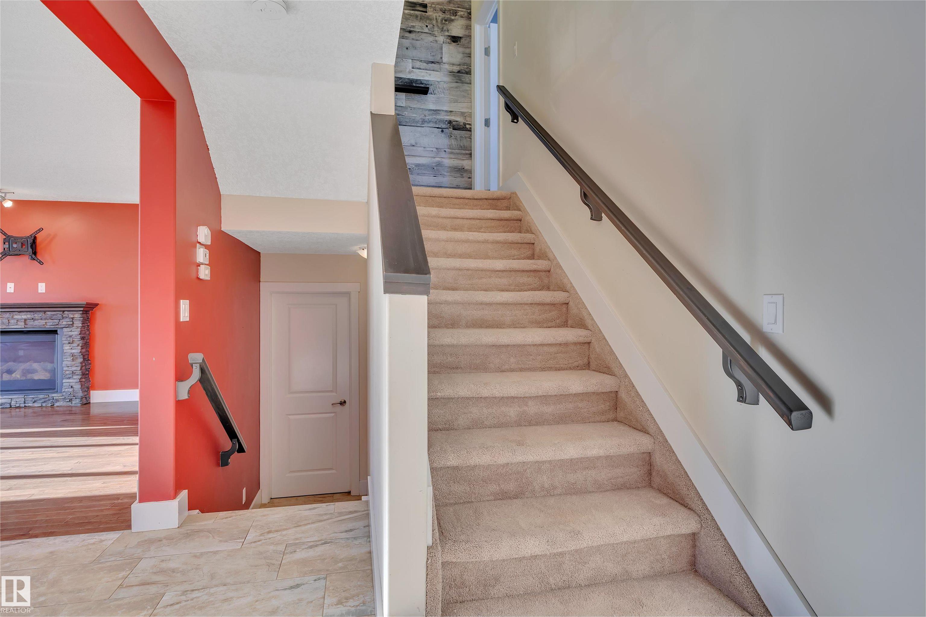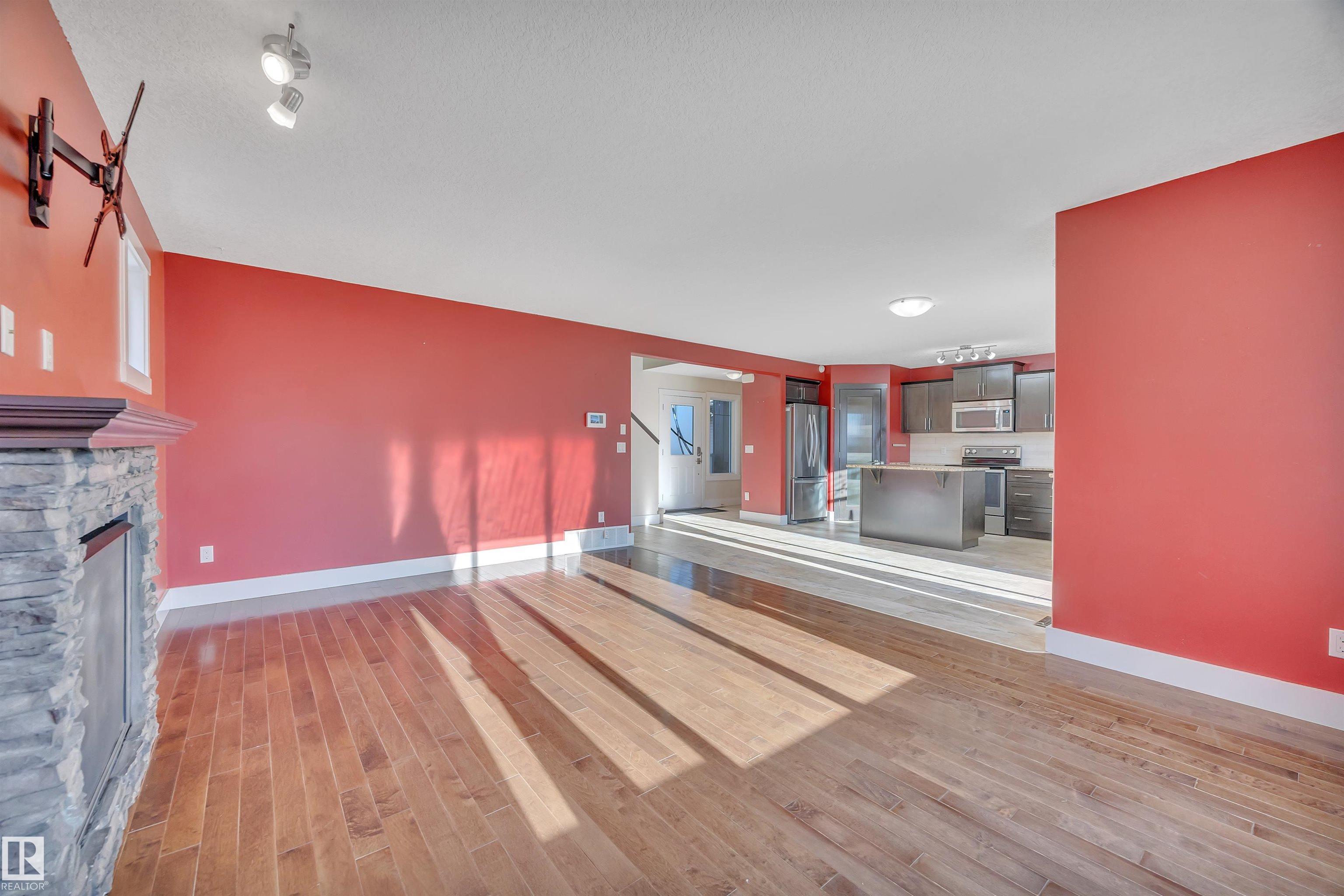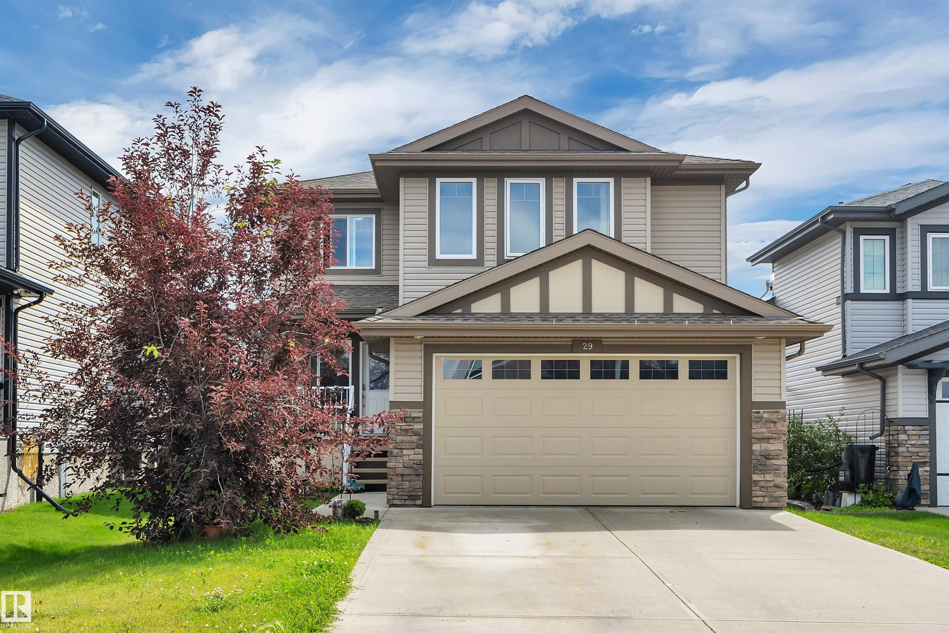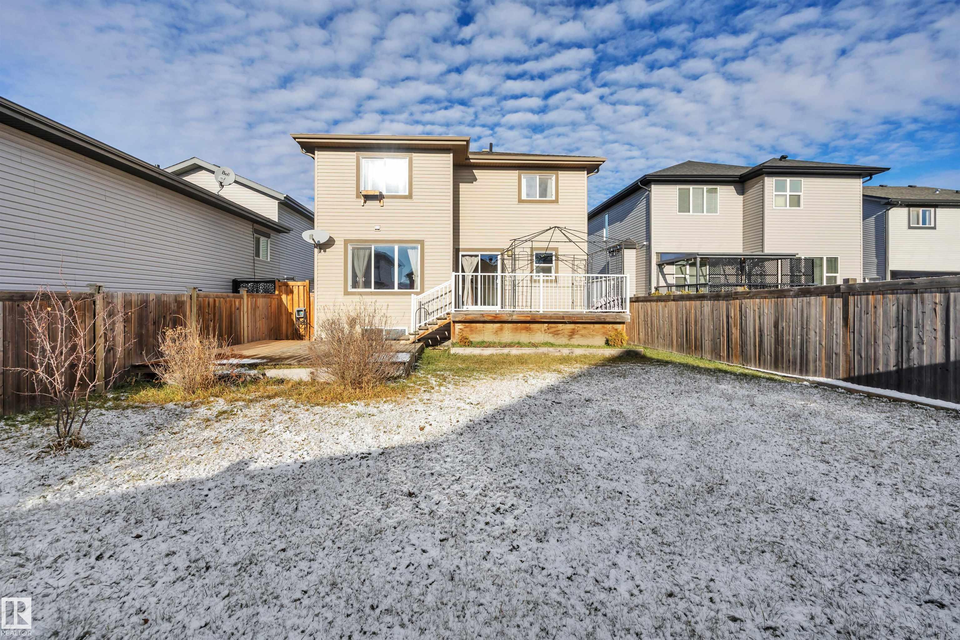 This impressive 4-bedroom home delivers outstanding value with a layout built for real life. A 20?x35? driveway suited for a truck and trailer and an insulated, drywalled double garage set the tone for practical living. Inside, the open main floor features granite counters, solid cabinetry, hardwood, and a stone-accented fireplace that creates a warm gathering space. Patio doors lead to a sunny south-facing backyard with a two-tiered deck perfect for relaxing or entertaining. Upstairs, the private primary suite includes a walk-in closet and dual-sink ensuite, while three additional bedrooms and upper laundry add everyday convenience. The basement is partially framed with bathroom rough-ins, ready for future development or customization. Located in walkable, family-friendly Calmar with quick access to the Edmonton International Airport, this home offers comfort, space, value, and a community feel you will love.