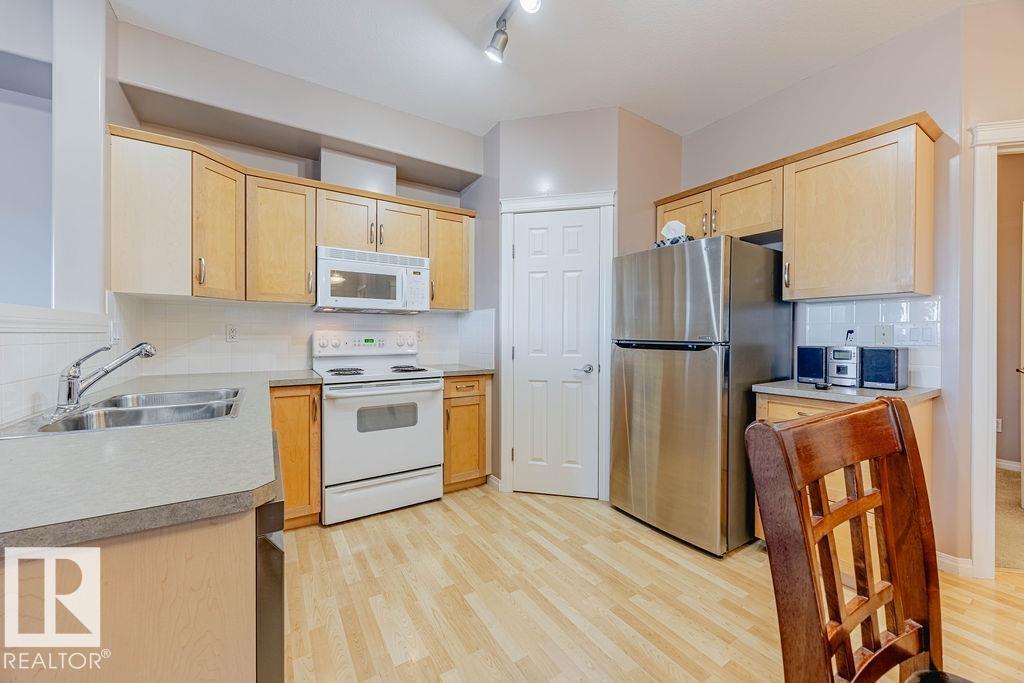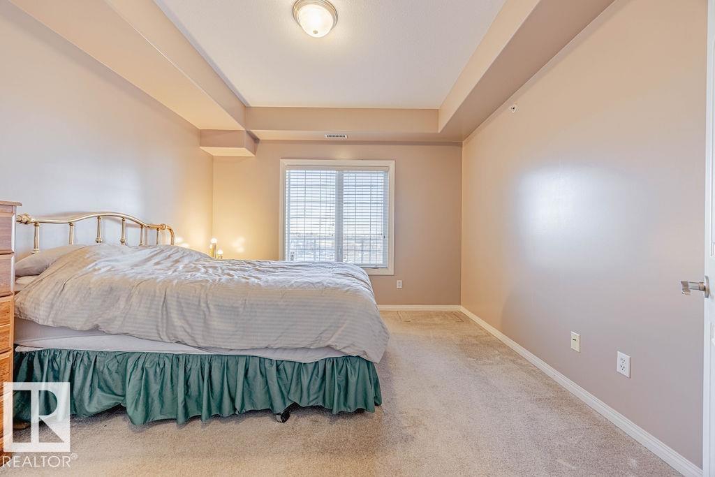 TOP-FLOOR condo in desirable HERITAGE VALLEY ESTATES, a well-maintained 55+ building offering quiet, comfortable living with OUTSTANDING AMENITIES. This immaculate 832 ft2 condo features 9 FOOT CEILINGS, CENTRAL A/C, 2 bedrooms including the large primary with W/I closet, kitchen featuring maple cabinets, corner pantry, newer S/S fridge & dishwasher and in-suite laundry. The spacious west facing balcony with gas BBQ outlet OVERLOOKS A WOODED NATURAL RESERVE and residential homes. Enjoy your heated underground parking stall with a locked storage room located close to the elevator. Smoke & pet free complex featuring outstanding amenities including a large social room with kitchen & dance floor, saltwater indoor pool, hot tub, exercise room, theater, library, games rooms, woodworking room and car wash. Ideally located steps from everyday shopping, close to transit, and offering quick access to Ellerslie Road and the Anthony Henday. A convenient and welcoming community perfect for low-maintenance living.