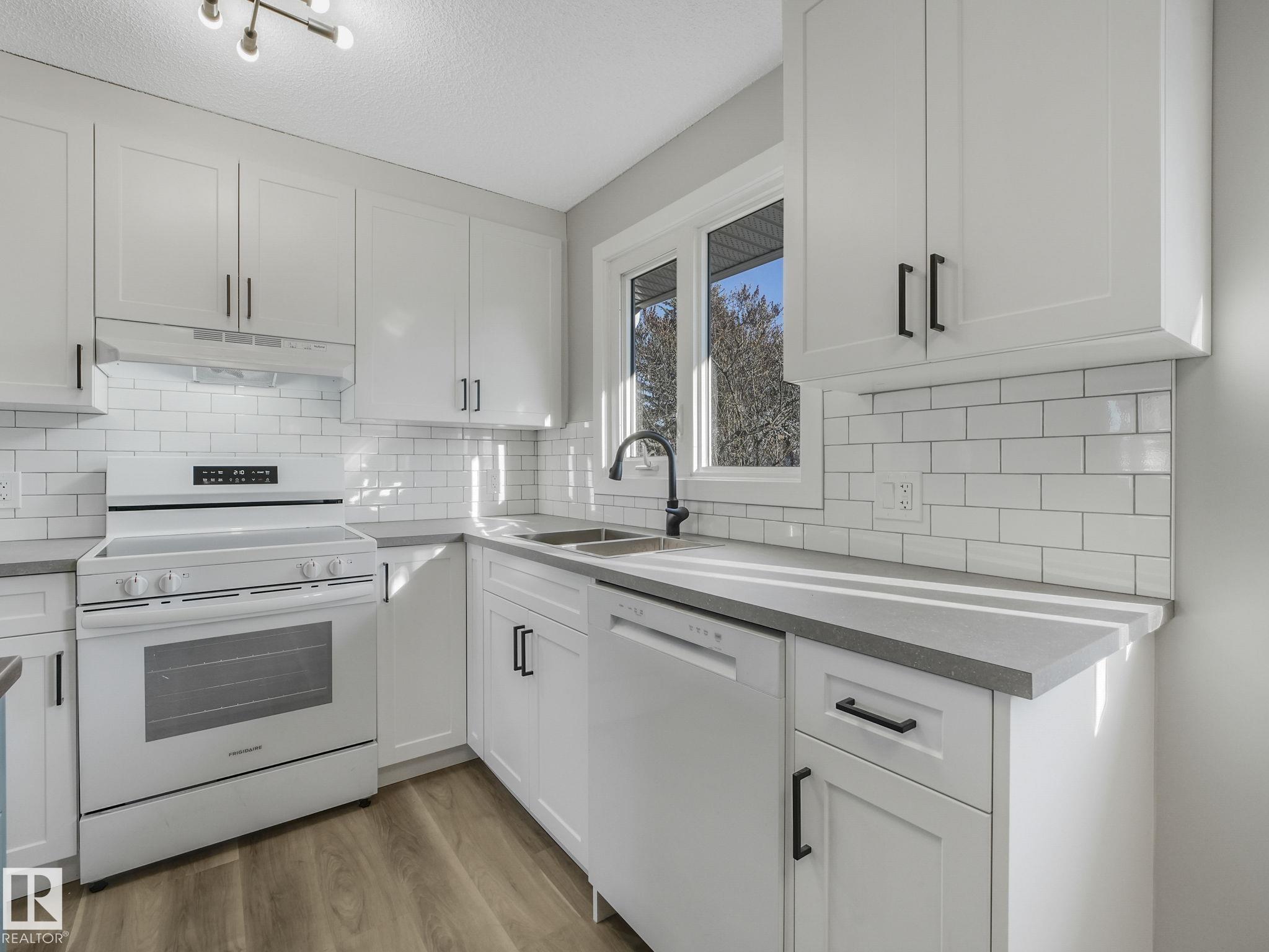 Step inside this upgraded bungalow featuring fresh modern updates with a layout built for comfort. With 4 total bedrooms, 3 on the main level and 1 in the fully finished basement, this layout provides flexibility for families, guests, or a home office. Renovations throughout bring a fresh, modern feel, highlighted by newer vinyl windows, newer roof, Brand new HWT, completely new kitchen and updated finishes that elevate every other space. The finished basement extends your living area even further and includes a great entertainment area complete with a bar. Stay comfortable year-round with central A/C, and enjoy the spacious backyard with two storage sheds that backs onto a peaceful green space, offering added privacy and room to relax. The property also features a double oversized heated garage, perfect for vehicles, storage, or hobbies. Sitting on a large lot in a desirable neighbourhood, this move-in-ready home delivers exceptional value, thoughtful upgrades, and plenty of space for ever lifestyle.
