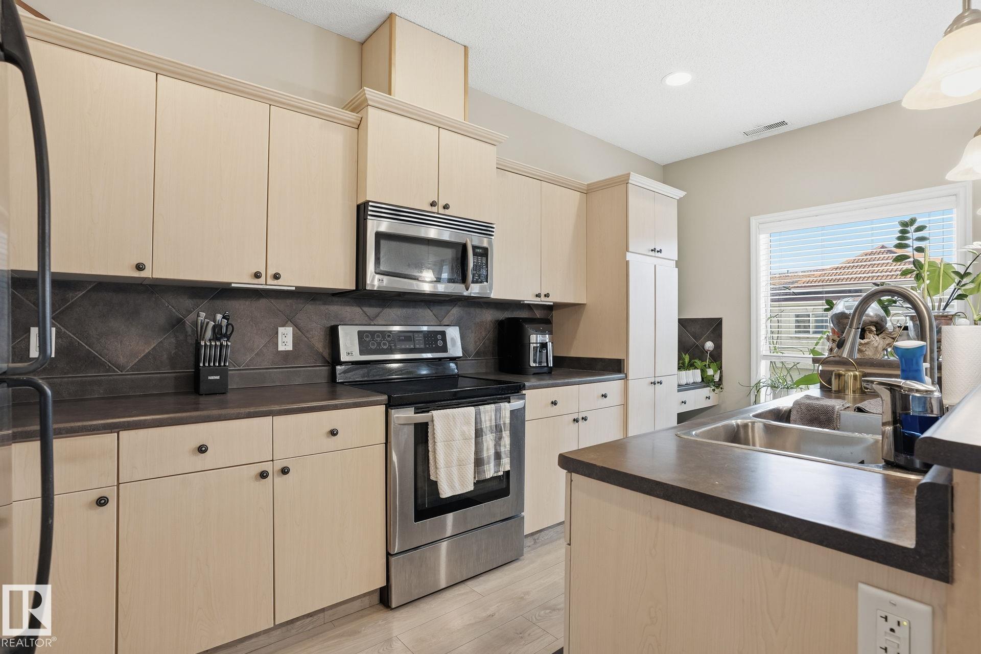 Welcome home to this gorgeous end-unit townhome in Tuscan Village, located in the beautiful, family-friendly community of Carlton. Offering almost 1600SqFt across three levels, this home is perfect for growing families. The main floor features an inviting living room with a gas fireplace and a bright island kitchen with upgraded cabinets, modern countertops, and stainless steel appliances. Enjoy a private balcony off the dining area. Upstairs offers dual primary suites, each with walk-in closets and full ensuites. The fully finished basement adds extra storage & living space. The basement also provides direct access to 2 underground parking stalls right outside your door. A private patio completes the space. Close to schools, parks, shopping, transit, and all amenities, this well-maintained home offers comfort, convenience, and exceptional value in one of North Edmonton?s most desirable communities.
