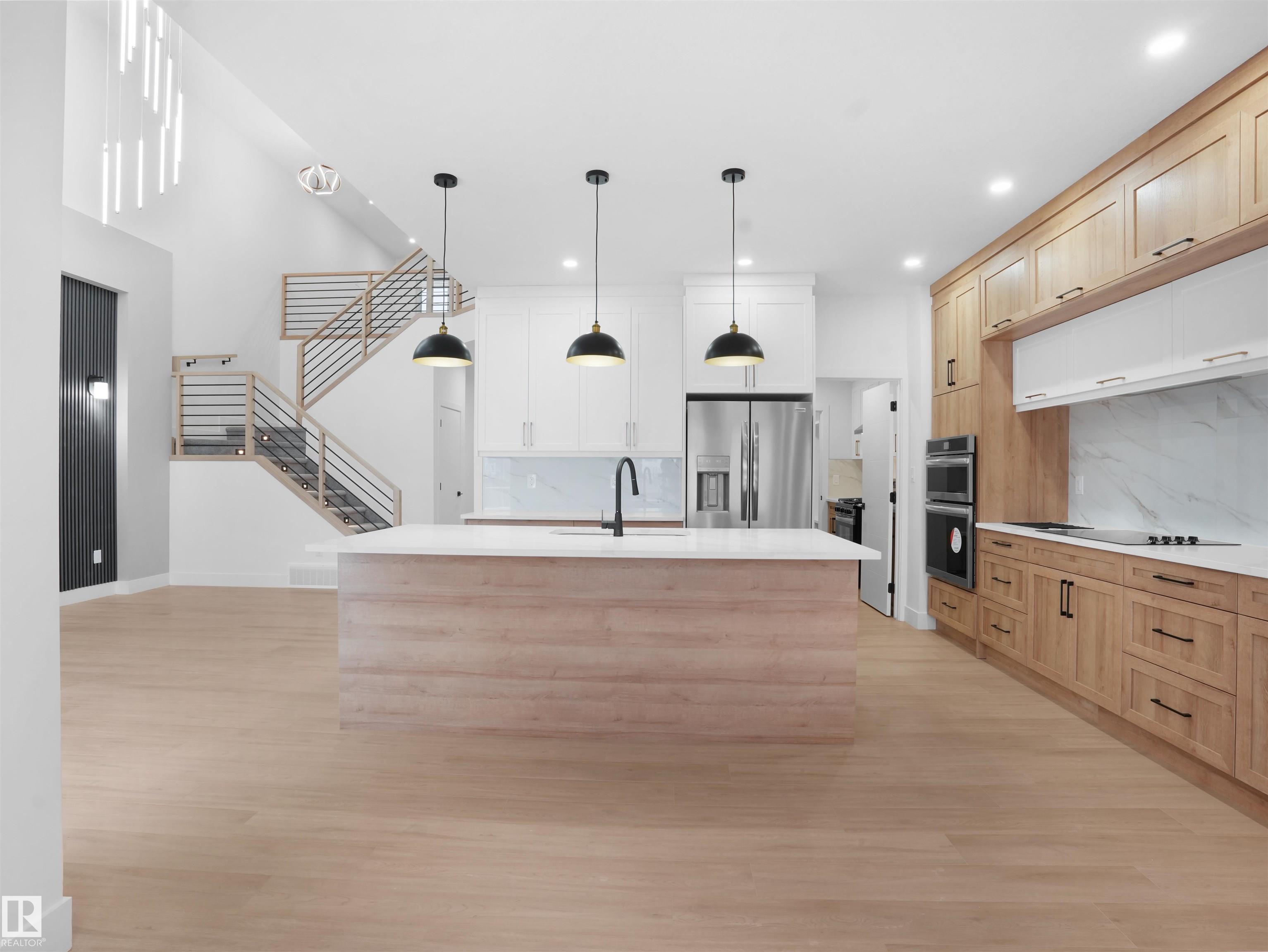 Welcome home to this brand new luxury custom home designed and built by Finesse Homes and backing the lake in Griesbach. This home offers over 2450 + sq ft that includes 4 bedrooms, main floor den, 3 full bathrooms, 9 ft ceiling, double oversized attached garage. The main level features the beautiful open concept family room with open to below and large windows that's wide open to the kitchen and nook. The main floor also has a spice kitchen and walk through pantry. To finish the main floor it comes with a den and full bath. The upper level has a large center bonus room a large primary bedroom with a 5 piece spa like ensuite, an additional 3 large bedrooms , a 4 piece bath and a laundry room. This home also comes with a full walkout basement perfect for future development. Incredible attention to detail & only the finest quality materials used.