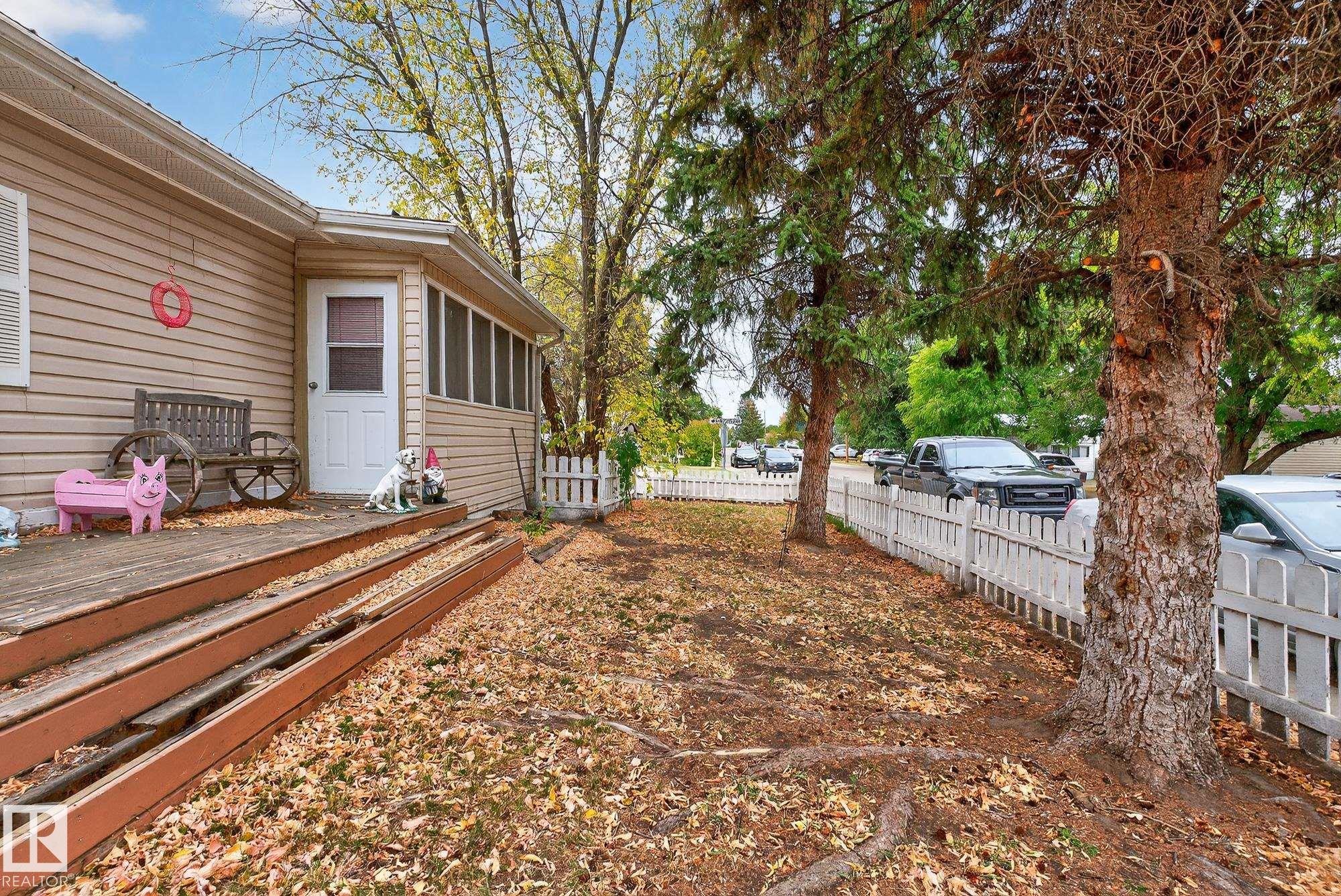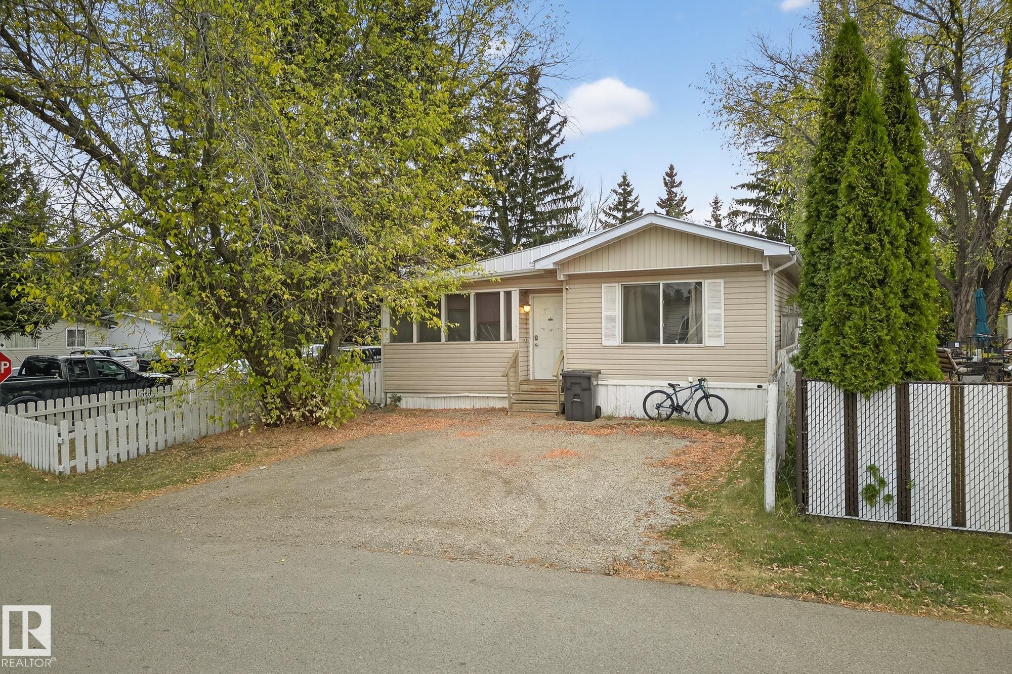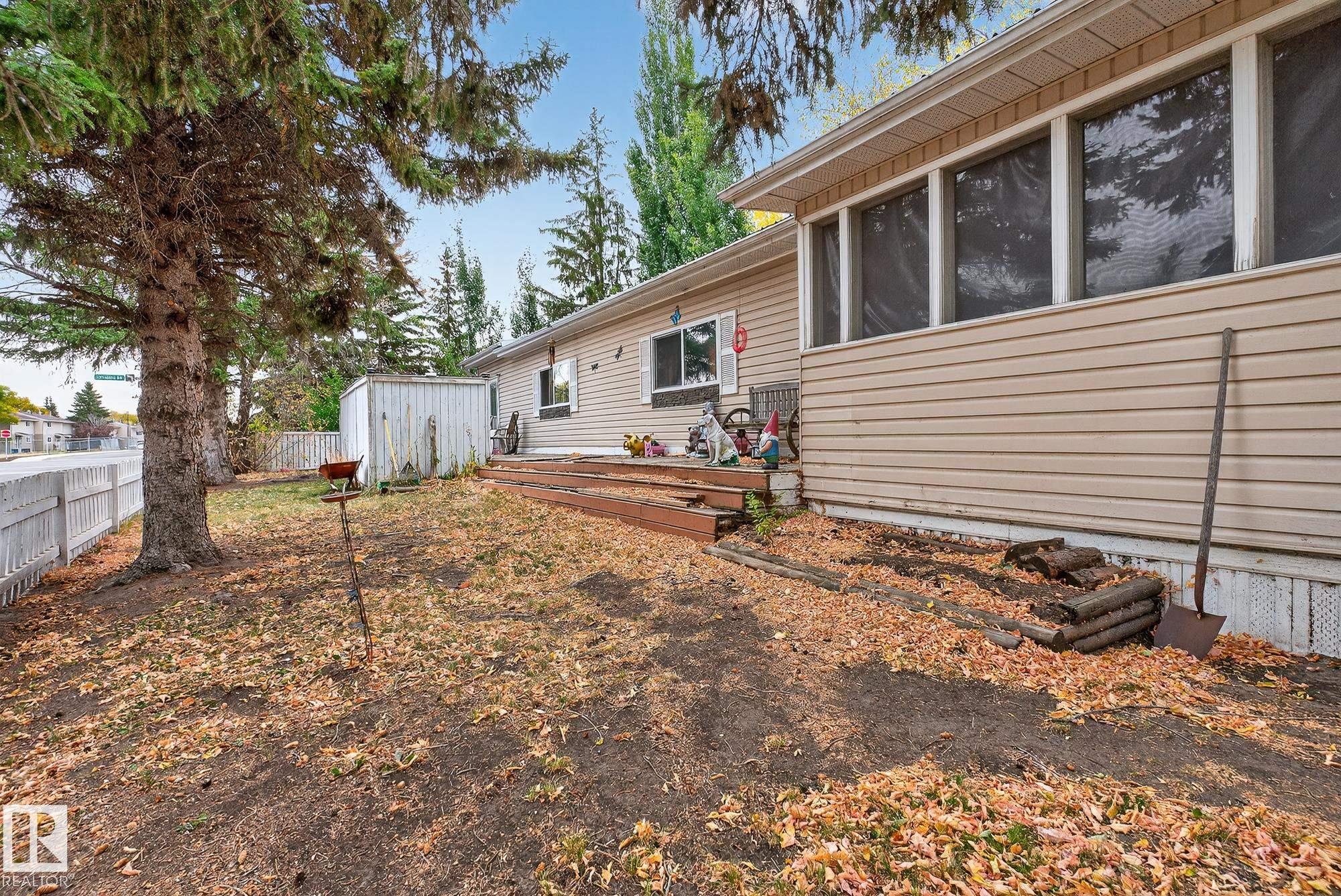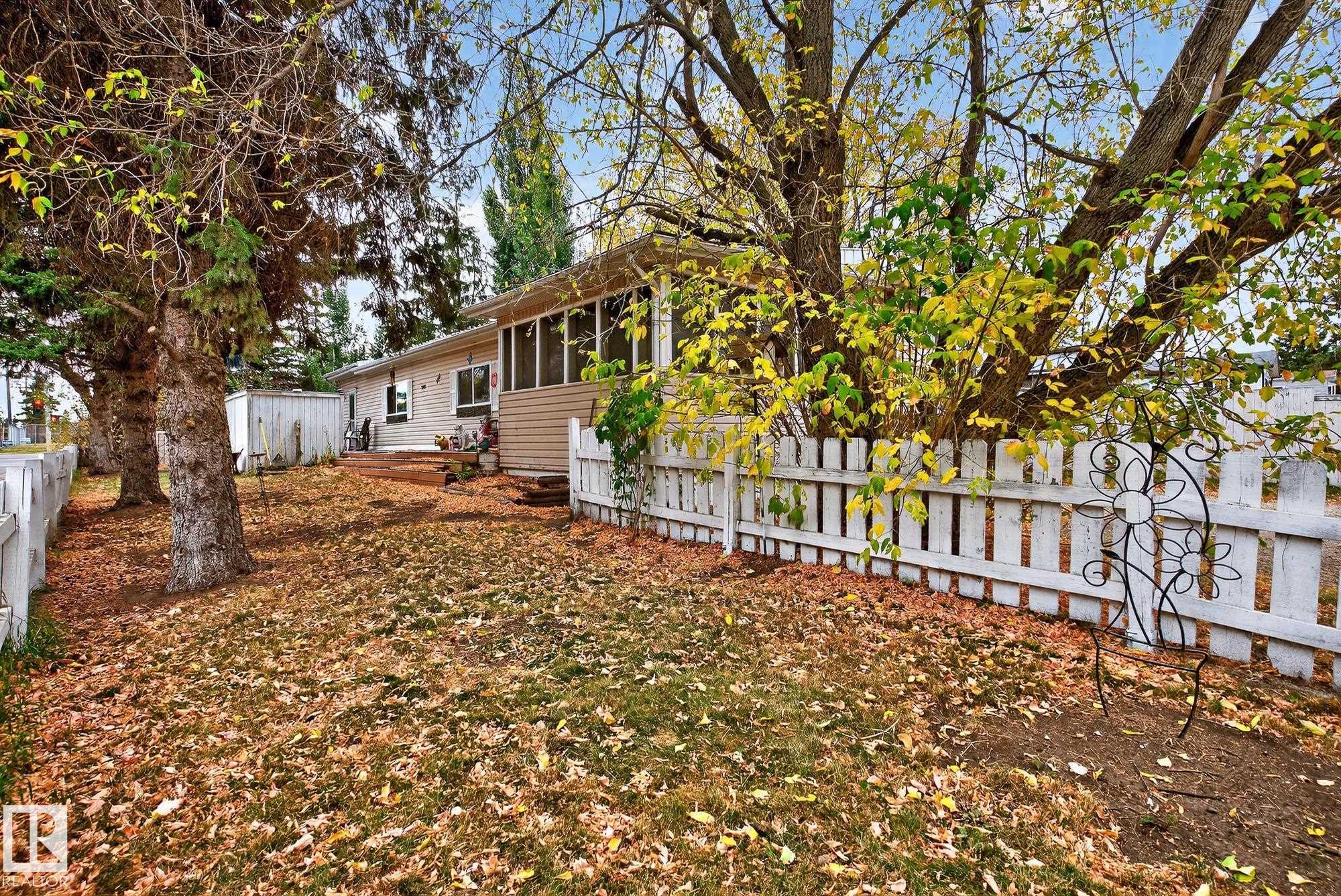 Just under 1600 sq.ft of opportunity awaits in Mobile City Estates, Spruce Grove. Complete with three bedrooms, one bathroom and a spacious addition utilized as storage or a future hobby room this property is eager to welcome its new owners and ready for a refresh! The fully fenced corner lot offers enough space for pets or children to play, while the mature trees add character and privacy. In the back, a 12? x 16? shed comes with the property which is perfect to store all the tools and toys or become an extension of the home to be utilized as a workshop! The home offers an updated bathroom, newer furnace, a tin roof and an updated fridge and stove relieving some of the expenses to update the interior! Enjoy convenient access to local schools, grocery stores, retail shops and local transit just a short walk away! Bring this home back to its full potential with some TLC, and enjoy all Spruce Grove has to offer!