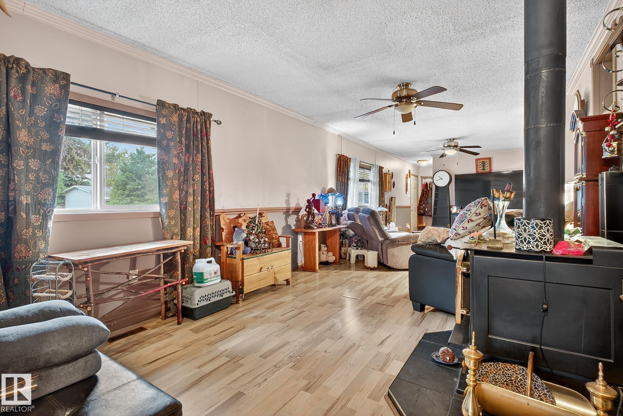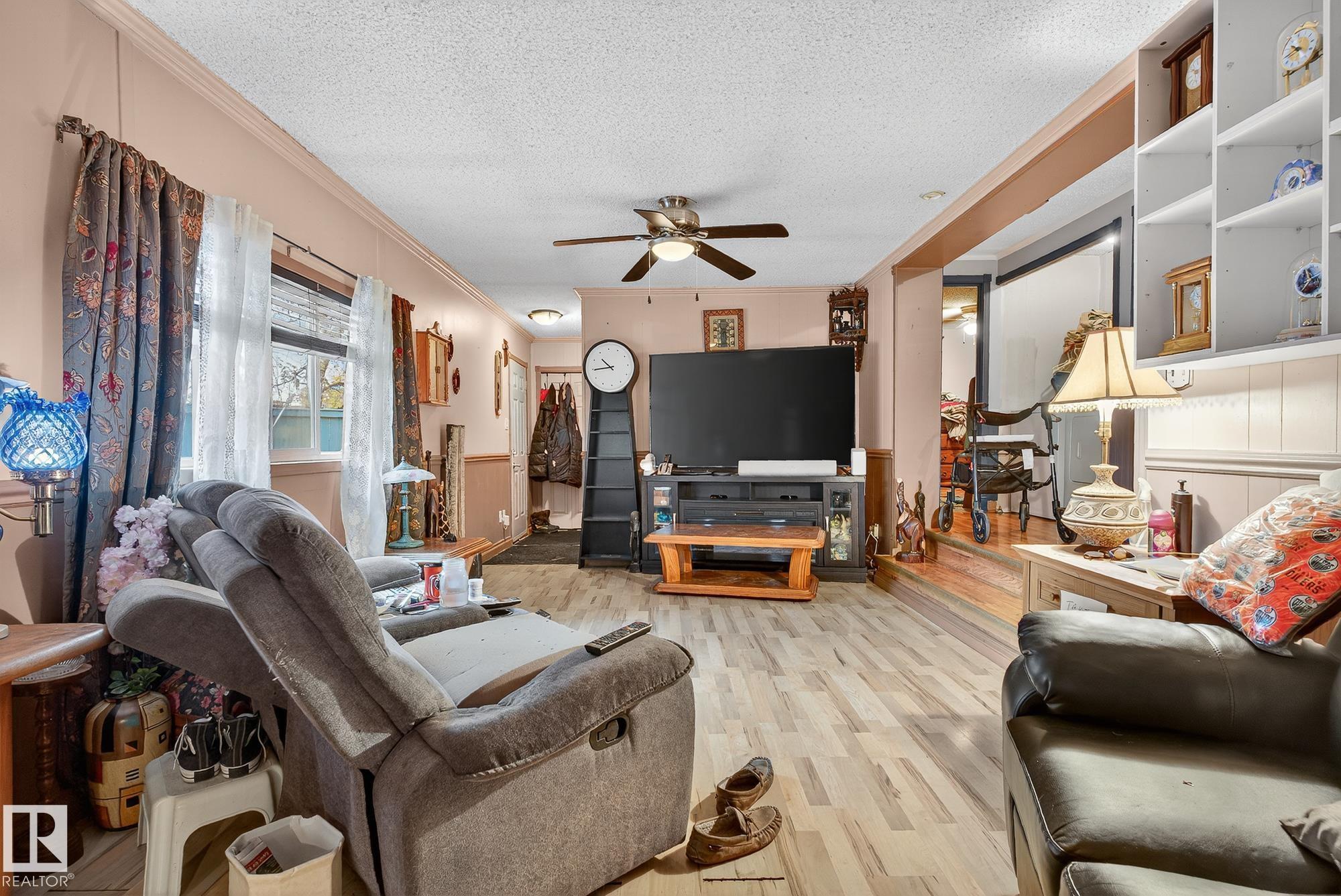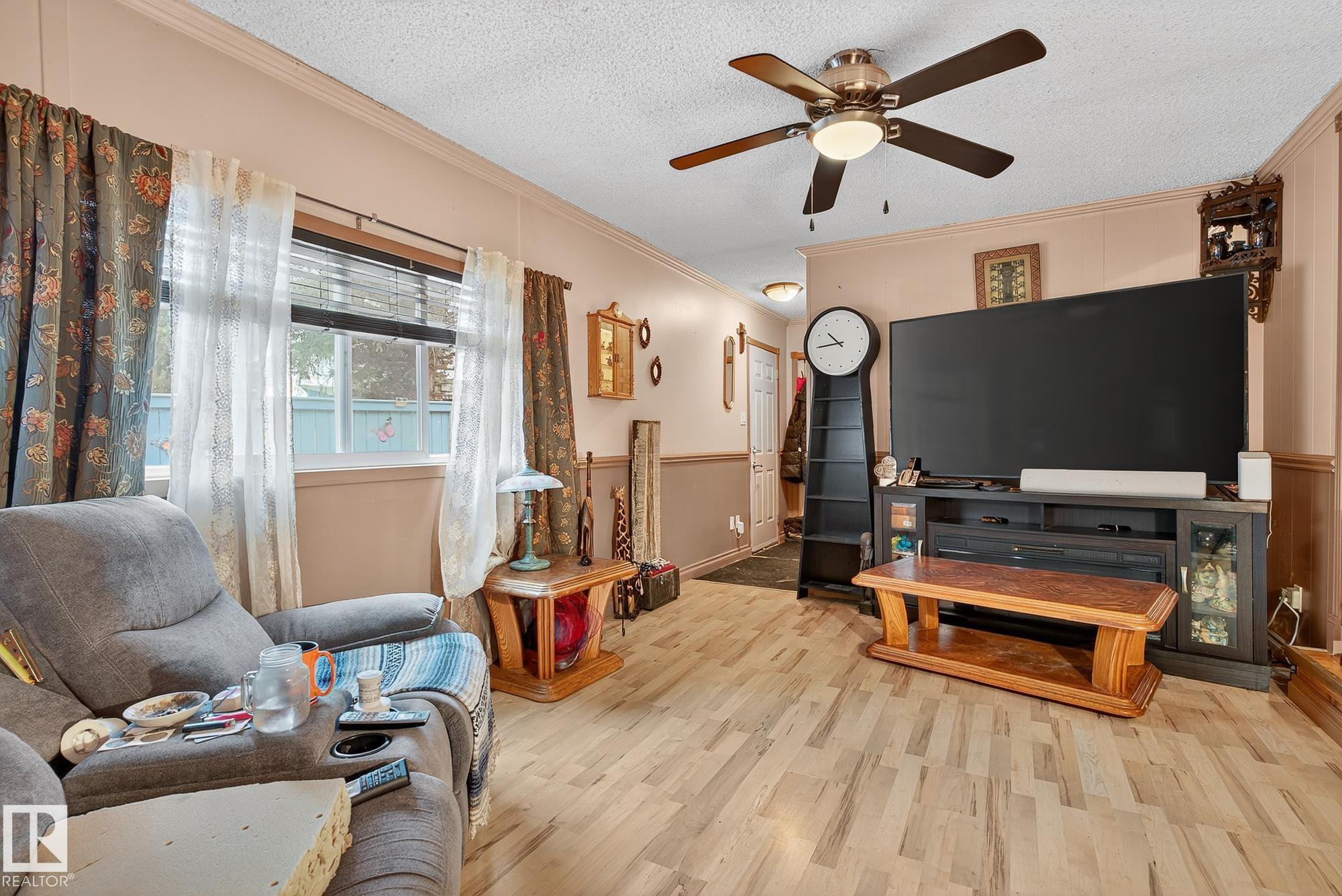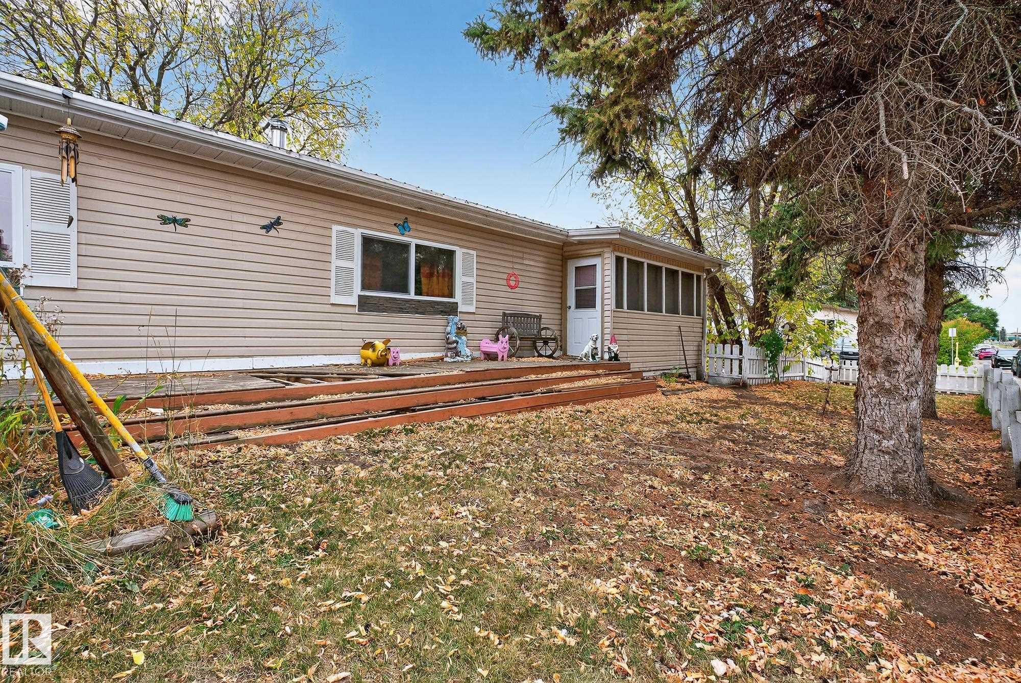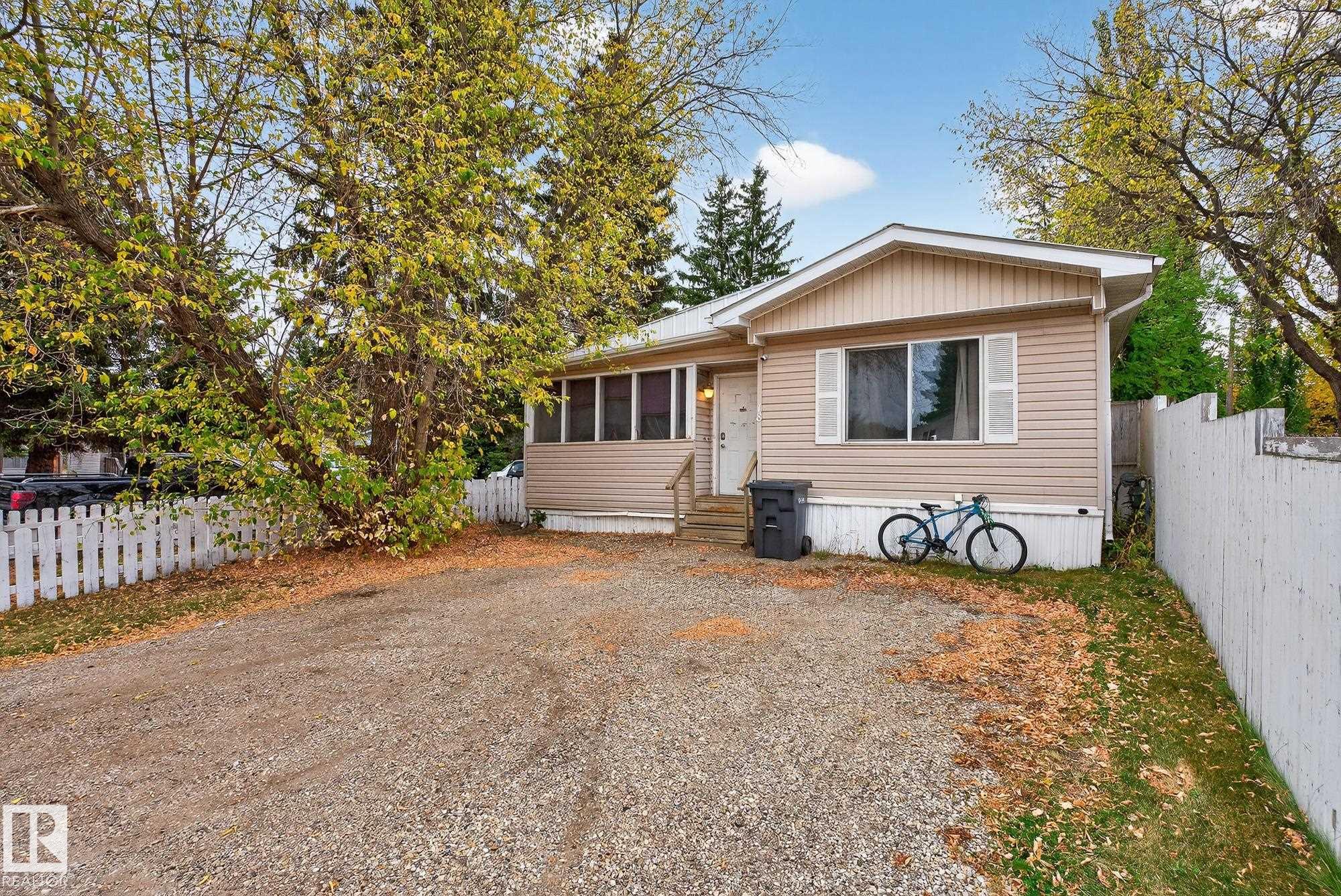 Just under 1600 sq.ft of opportunity awaits in Mobile City Estates, Spruce Grove. Complete with three bedrooms, one bathroom and a spacious addition utilized as storage or a future hobby room this property is eager to welcome its new owners and ready for a refresh! The fully fenced corner lot offers enough space for pets or children to play, while the mature trees add character and privacy. In the back, a 12? x 16? shed comes with the property which is perfect to store all the tools and toys or become an extension of the home to be utilized as a workshop! The home offers an updated bathroom, newer furnace, a tin roof and an updated fridge and stove relieving some of the expenses to update the interior! Enjoy convenient access to local schools, grocery stores, retail shops and local transit just a short walk away! Bring this home back to its full potential with some TLC, and enjoy all Spruce Grove has to offer!