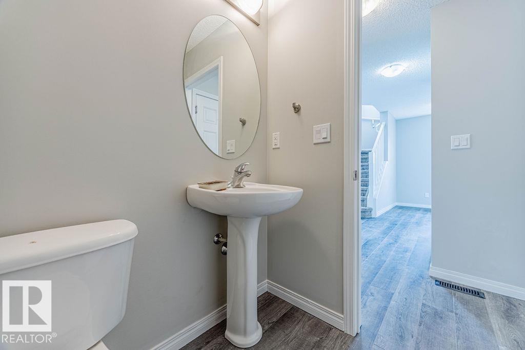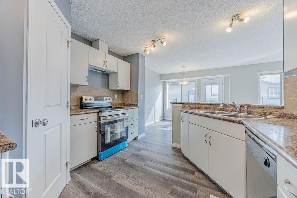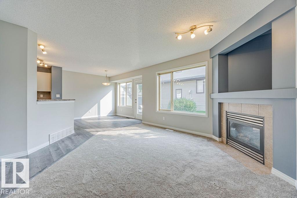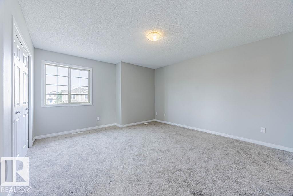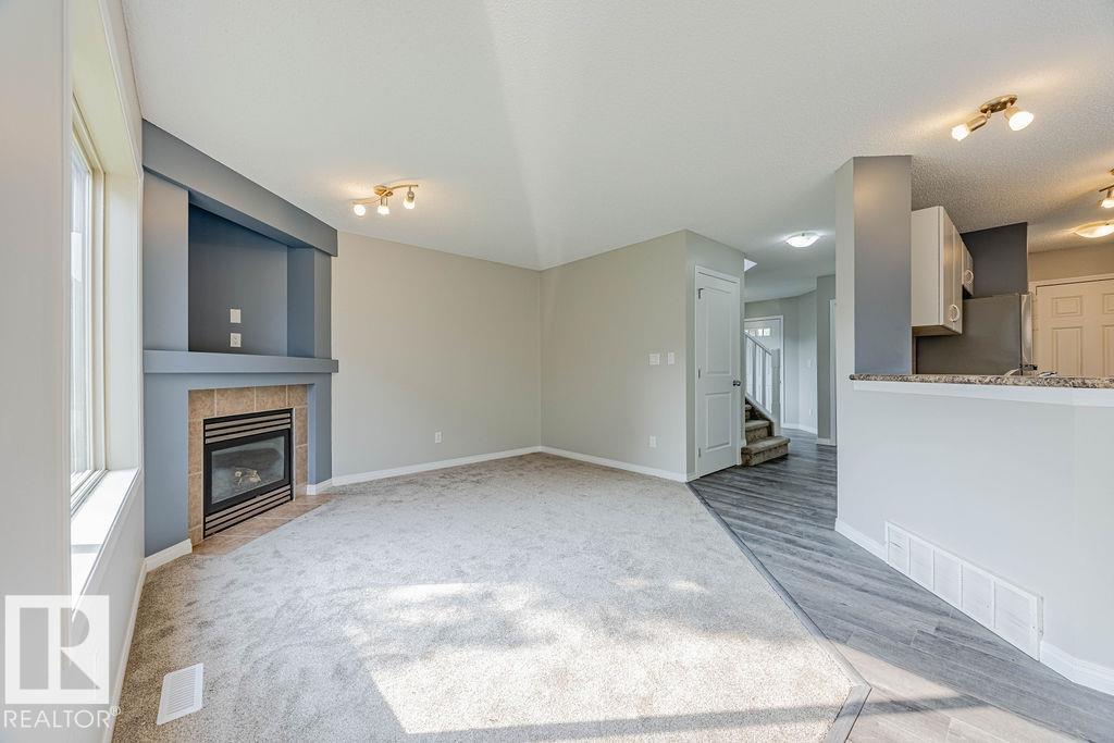 Welcome to this bright and stylish half duplex, perfectly located near schools, parks, shopping, and easy access to Anthony Henday. Step inside to an open-concept main floor featuring a brand-new kitchen appliances, corner pantry, and a cozy dining area overlooking the patio. The spacious living room is highlighted by a charming corner gas fireplace, perfect for relaxing evenings. A convenient 2-piece bath completes the main level. Upstairs, you?ll find two large primary bedrooms, each with its own 4-piece ensuite, offering comfort and privacy, one of the bedrooms has walk in closet with window. A versatile loft-style sitting area makes the perfect home office, reading nook, or TV room. The basement is unfinished and full of potential, ready for your personal touch. Outside, enjoy a patio yard space and the convenience of a double attached garage. This home is move-in ready with fresh paint, new carpet, throughout?a true must-see!