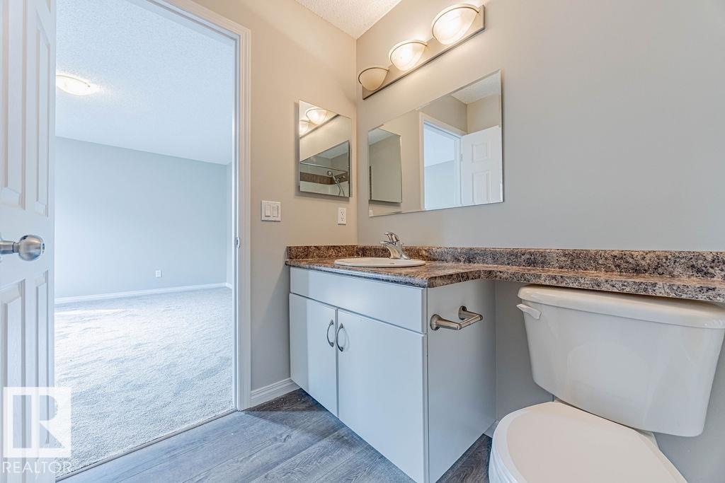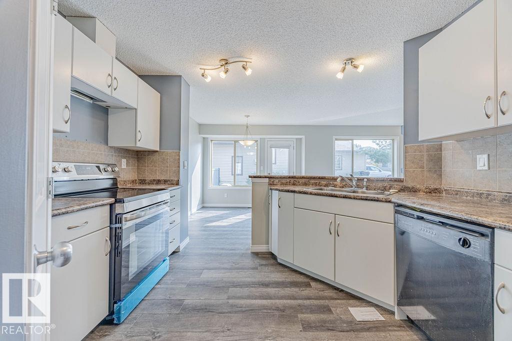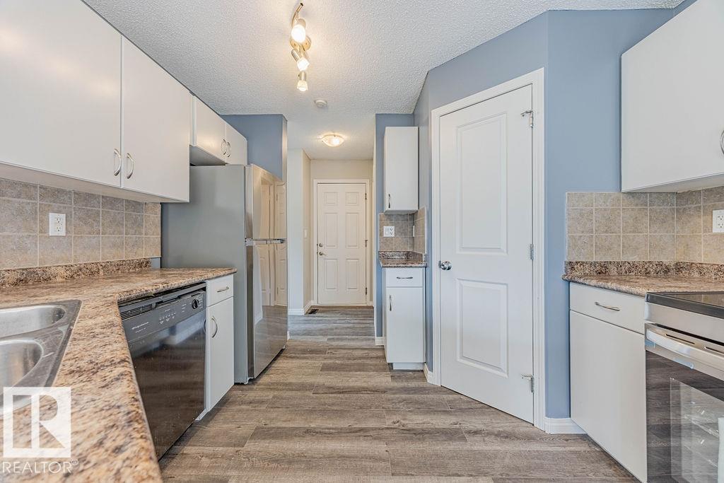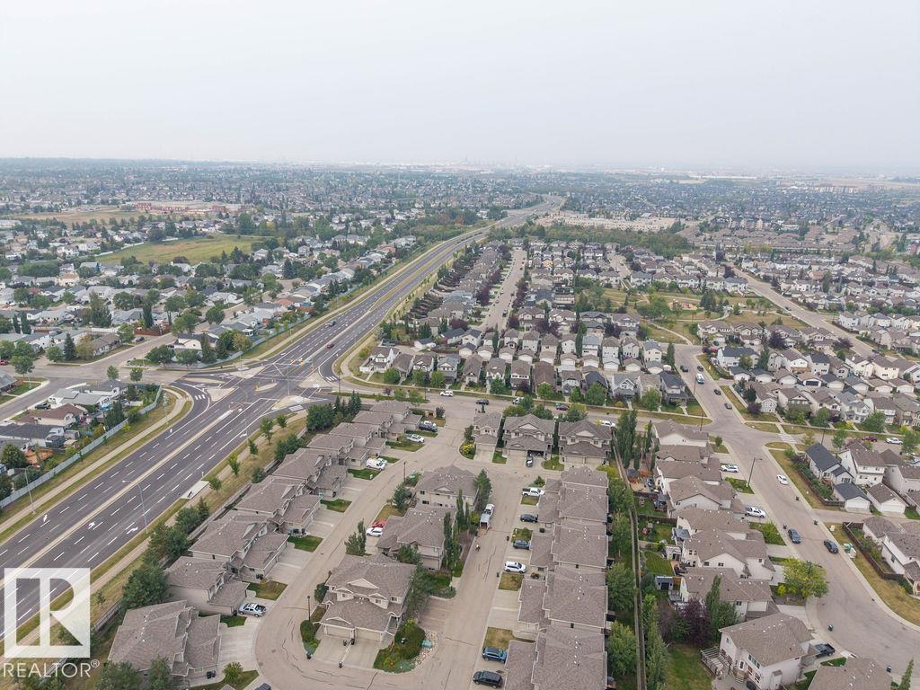 Welcome to this bright and stylish half duplex, perfectly located near schools, parks, shopping, and easy access to Anthony Henday. Step inside to an open-concept main floor featuring a brand-new kitchen appliances, corner pantry, and a cozy dining area overlooking the patio. The spacious living room is highlighted by a charming corner gas fireplace, perfect for relaxing evenings. A convenient 2-piece bath completes the main level. Upstairs, you?ll find two large primary bedrooms, each with its own 4-piece ensuite, offering comfort and privacy, one of the bedrooms has walk in closet with window. A versatile loft-style sitting area makes the perfect home office, reading nook, or TV room. The basement is unfinished and full of potential, ready for your personal touch. Outside, enjoy a patio yard space and the convenience of a double attached garage. This home is move-in ready with fresh paint, new carpet, throughout?a true must-see!