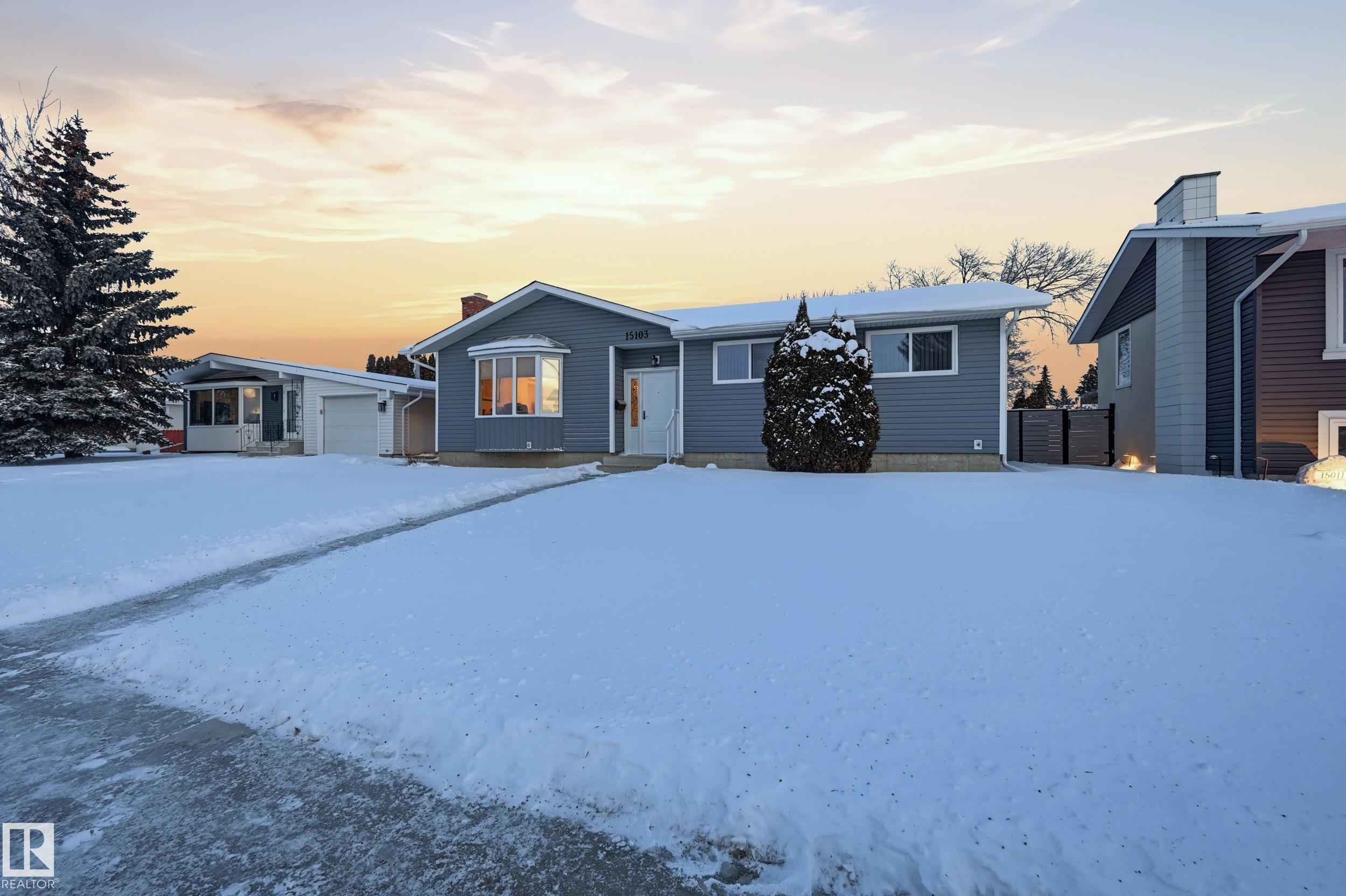 Experience living in this impeccably maintained luxury bungalow. A bright, spacious living room flows into the formal dining area, enhanced by upgraded windows that fill the home with natural light. The chef inspired kitchen features custom cabinetry, extensive counters, and an elegant eat up island perfect for entertaining. Down the hall, the private wing offers a generous Master bedroom, two additional bedrooms, and a spa like bathroom with a soaker tub and separate shower. The fully finished basement impresses with a stylish family room highlighted by a brick feature wall in the living room, a large guest bedroom, a 3 piece bath, and an oversized laundry room with exceptional storage. A bonus under-stairs pantry cold storage space. Upgrades Include: Windows, Furnace, Kitchen, Bathrooms, Exterior. Outside, the expansive backyard provides access to the double detached garage and a large parking pad with room for an RV. A rare blend of luxury, comfort, and pride of ownership.