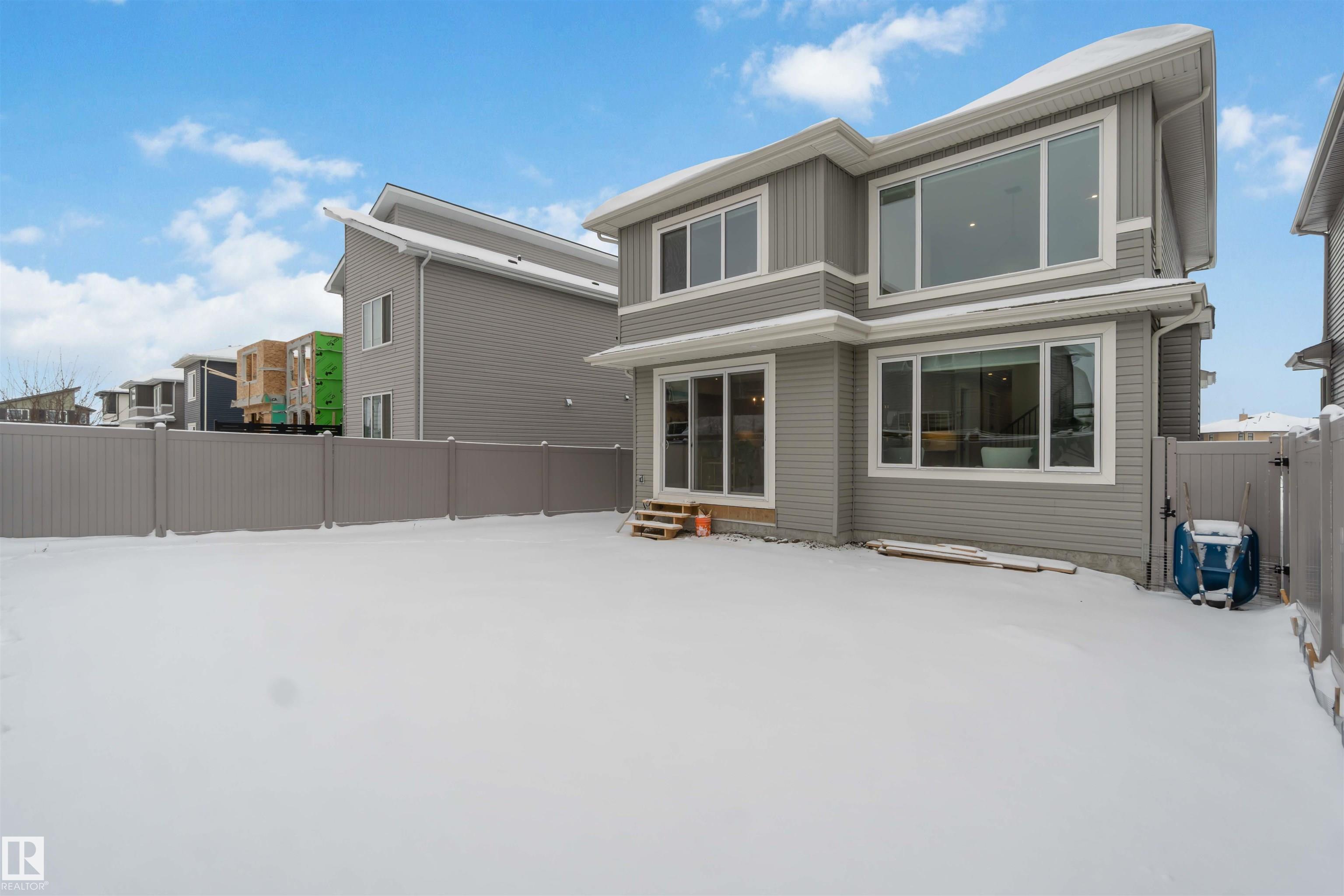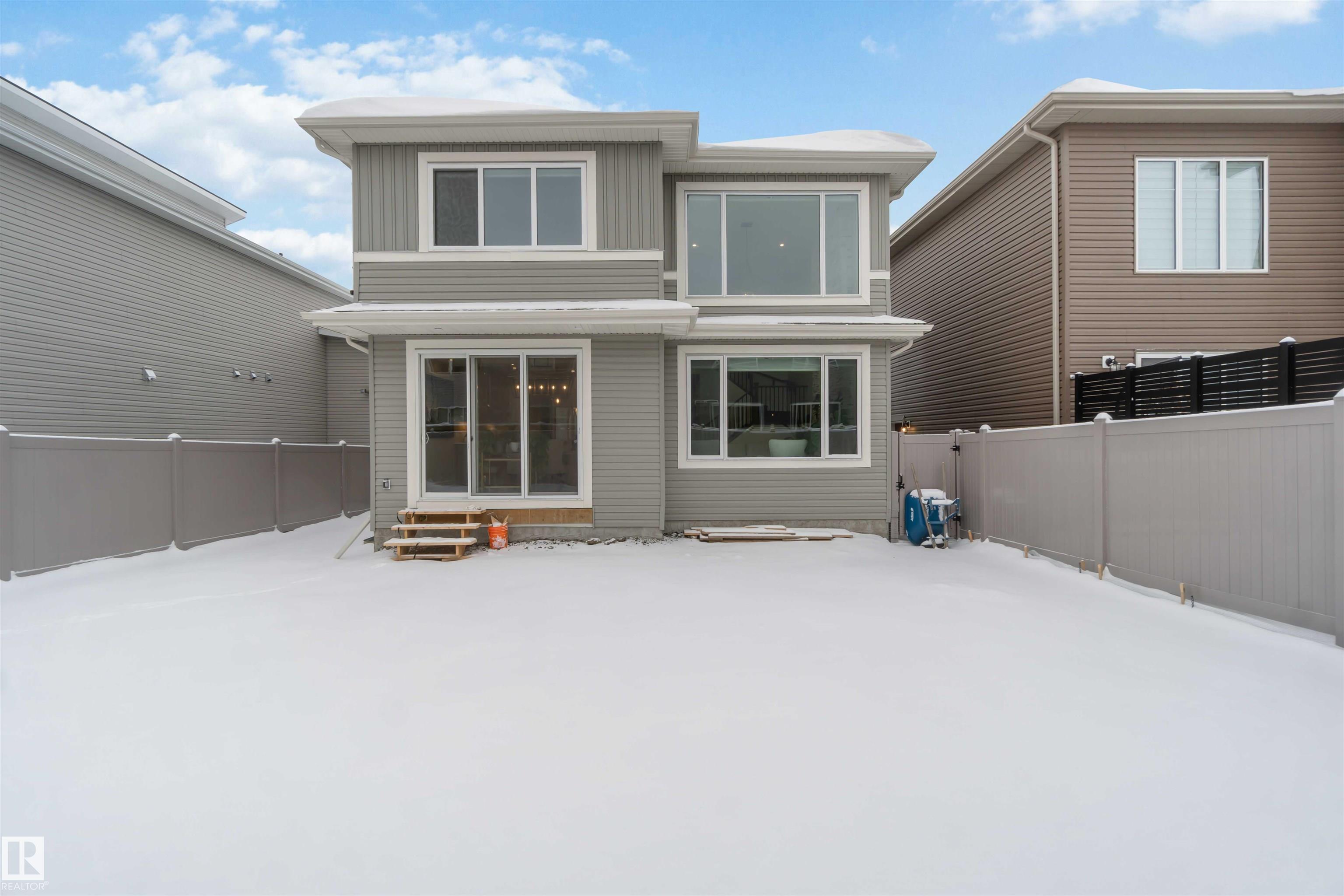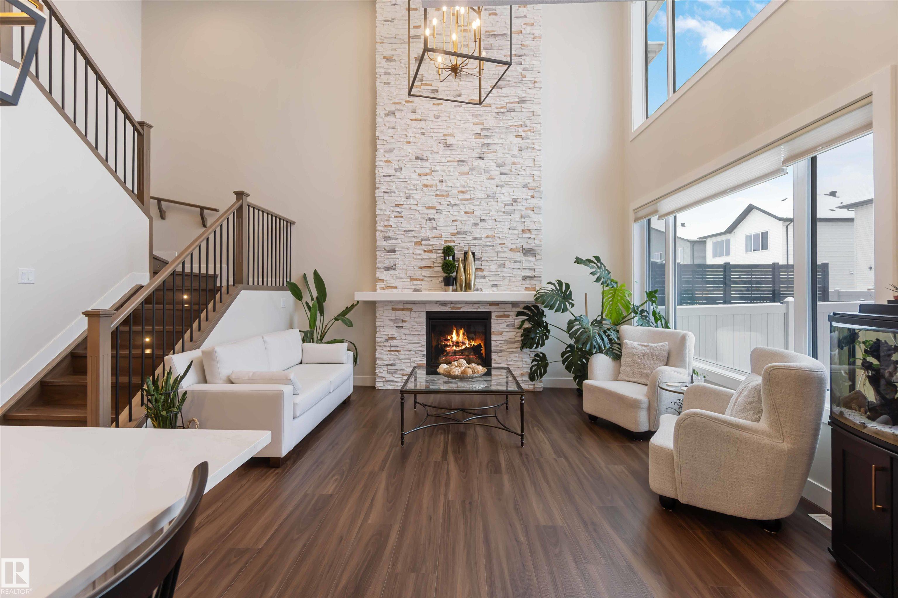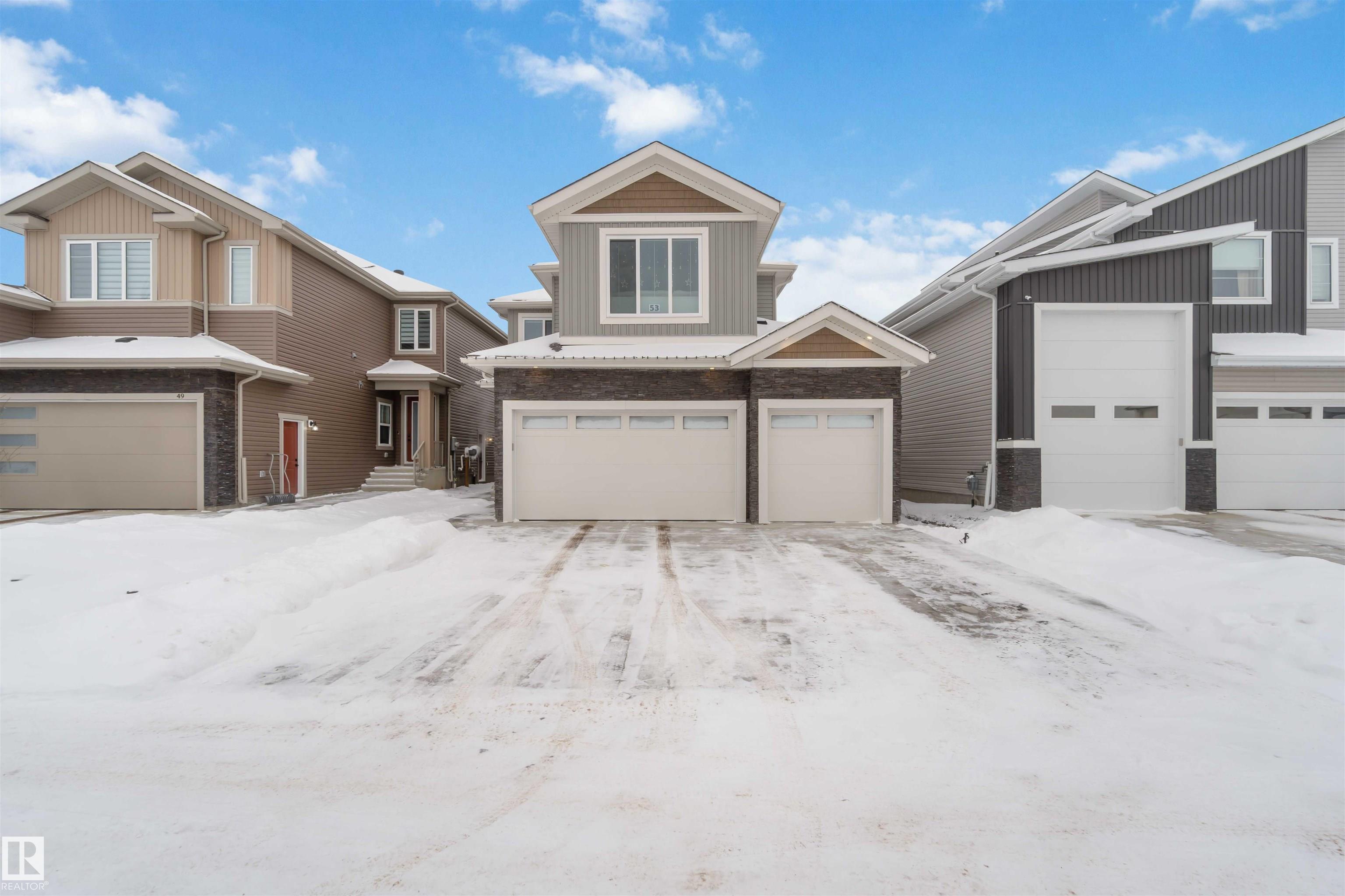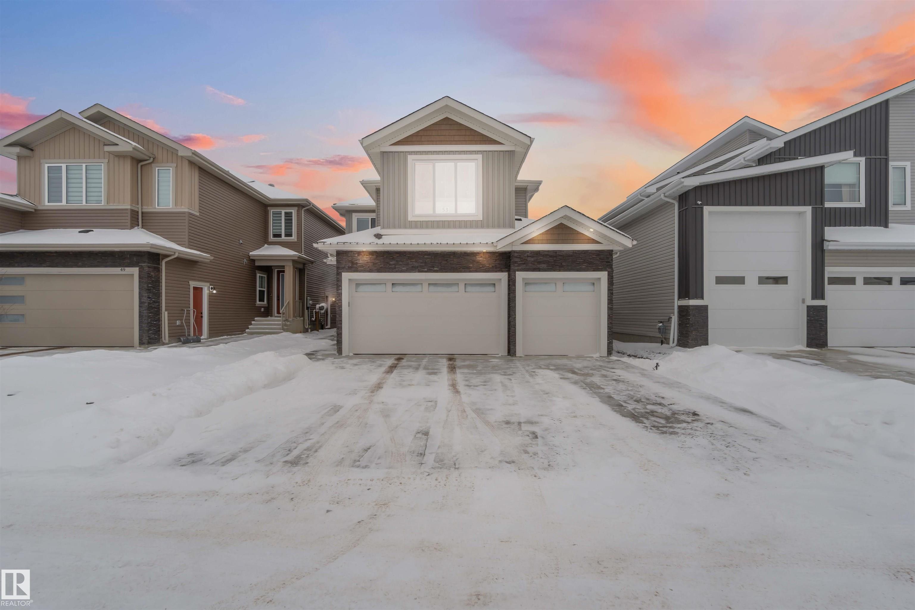 Beautiful 3-bedroom home with a triple attached heated garage and a fully finished 2-bedroom legal basement suite with separate entrance, ideal for rental income or private space for extended family. The main floor features a 2-piece bath and a striking great room with 17? ceilings, gas fireplace, and floor-to-ceiling stone feature wall. Entry from the garage leads to a spacious mudroom and butler-style walk-through pantry connecting to the kitchen, complete with real wood cabinet boxes. Additional upgrades include light commercial?grade vinyl plank flooring, triple-pane windows with coverings, and a fully fenced backyard with low-maintenance vinyl fencing. Upstairs offers three bedrooms, including a primary suite with walk-in closet and 5-piece ensuite, a bonus room, 4-piece main bath, and convenient upper-level laundry. The legal basement suite includes its own stacked washer and dryer. Carpet is limited to the basement stairs only, ensuring easy maintenance throughout the home.