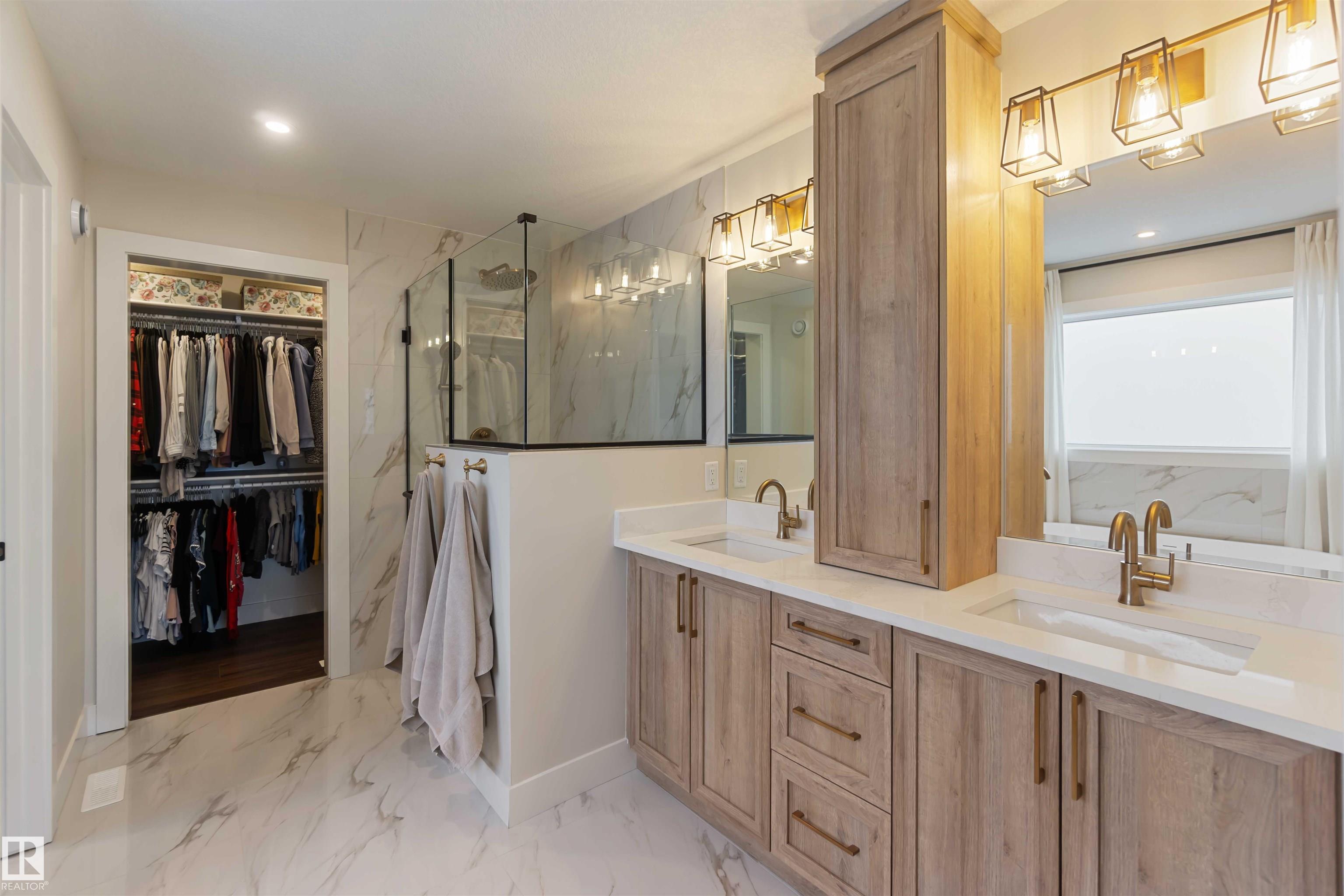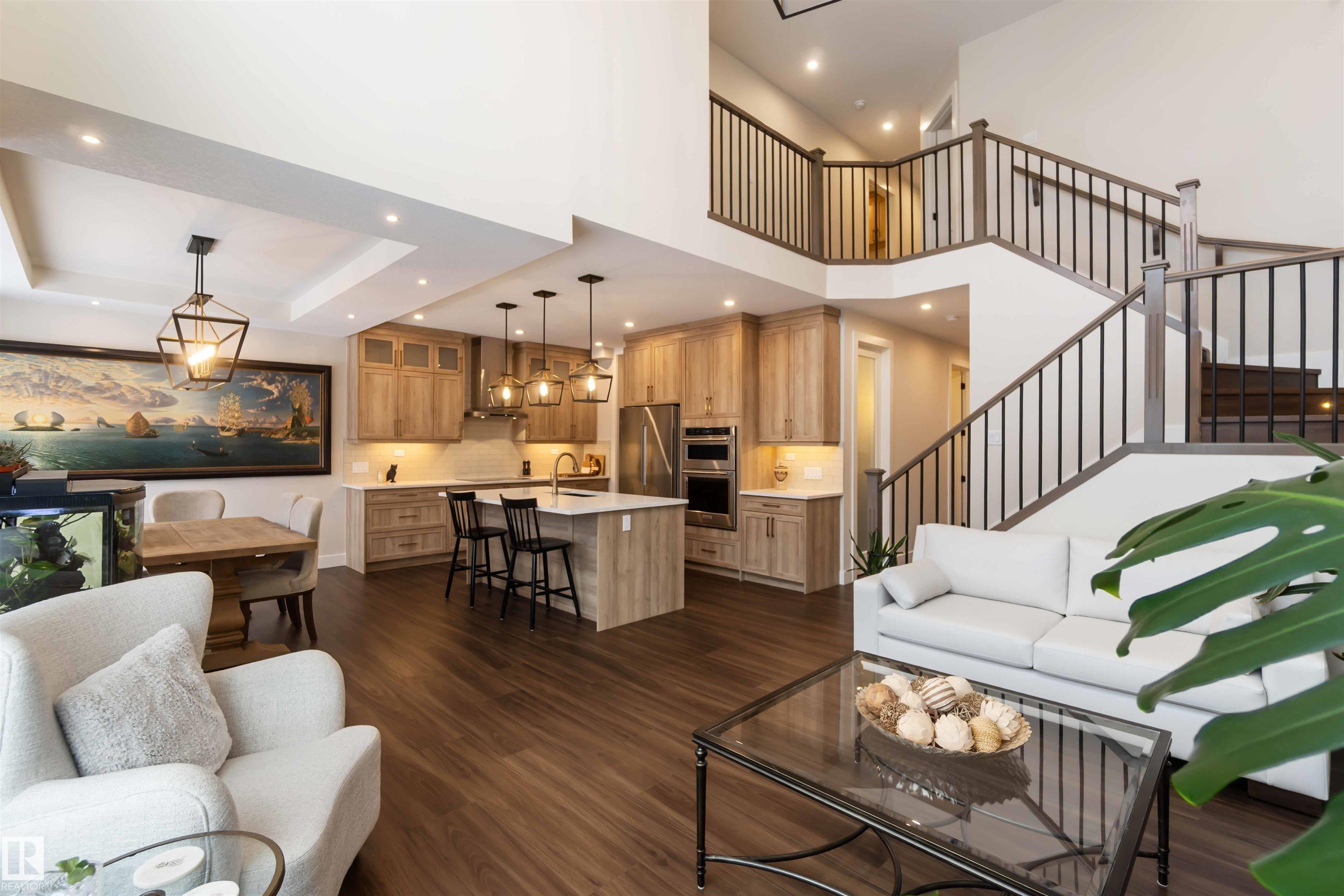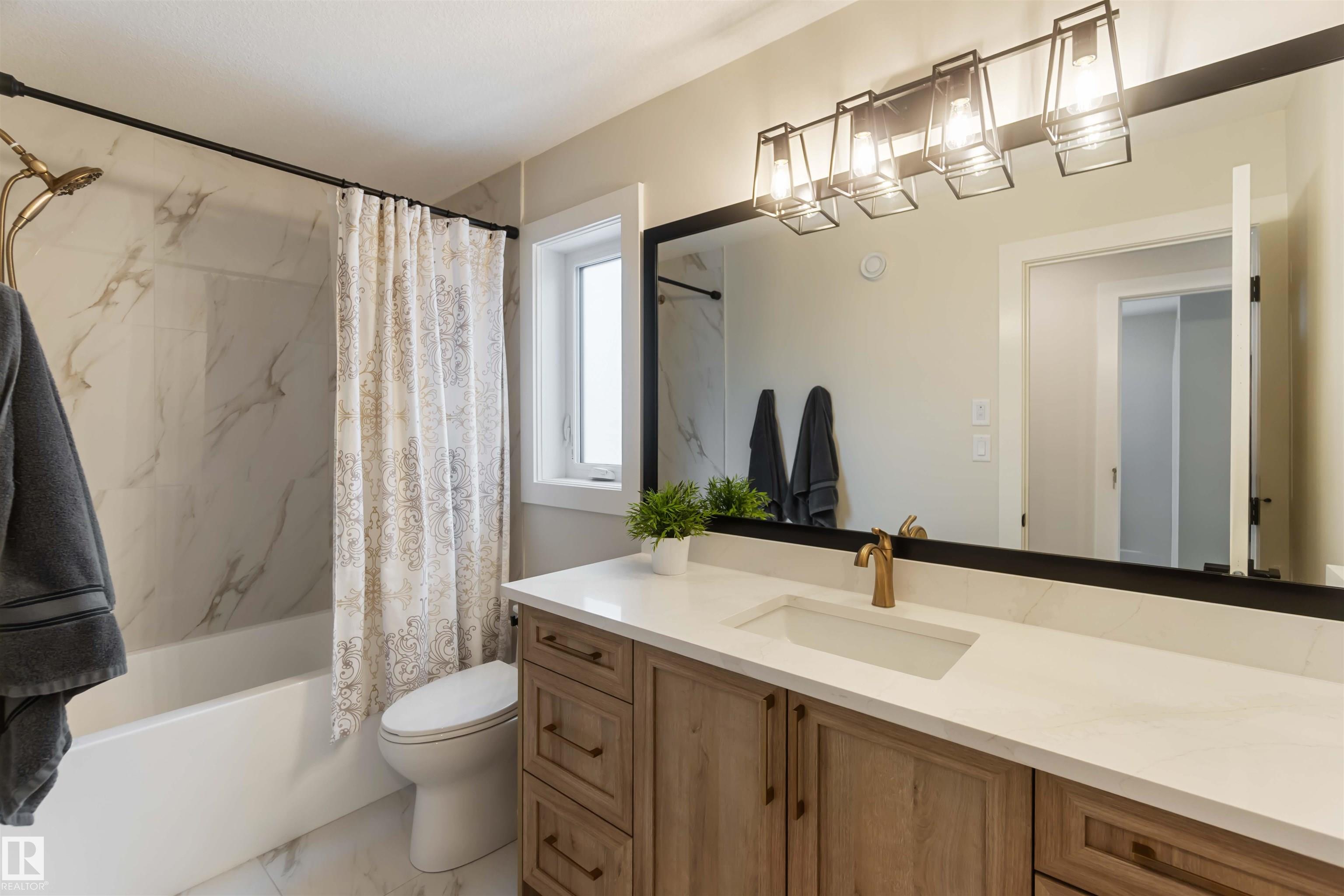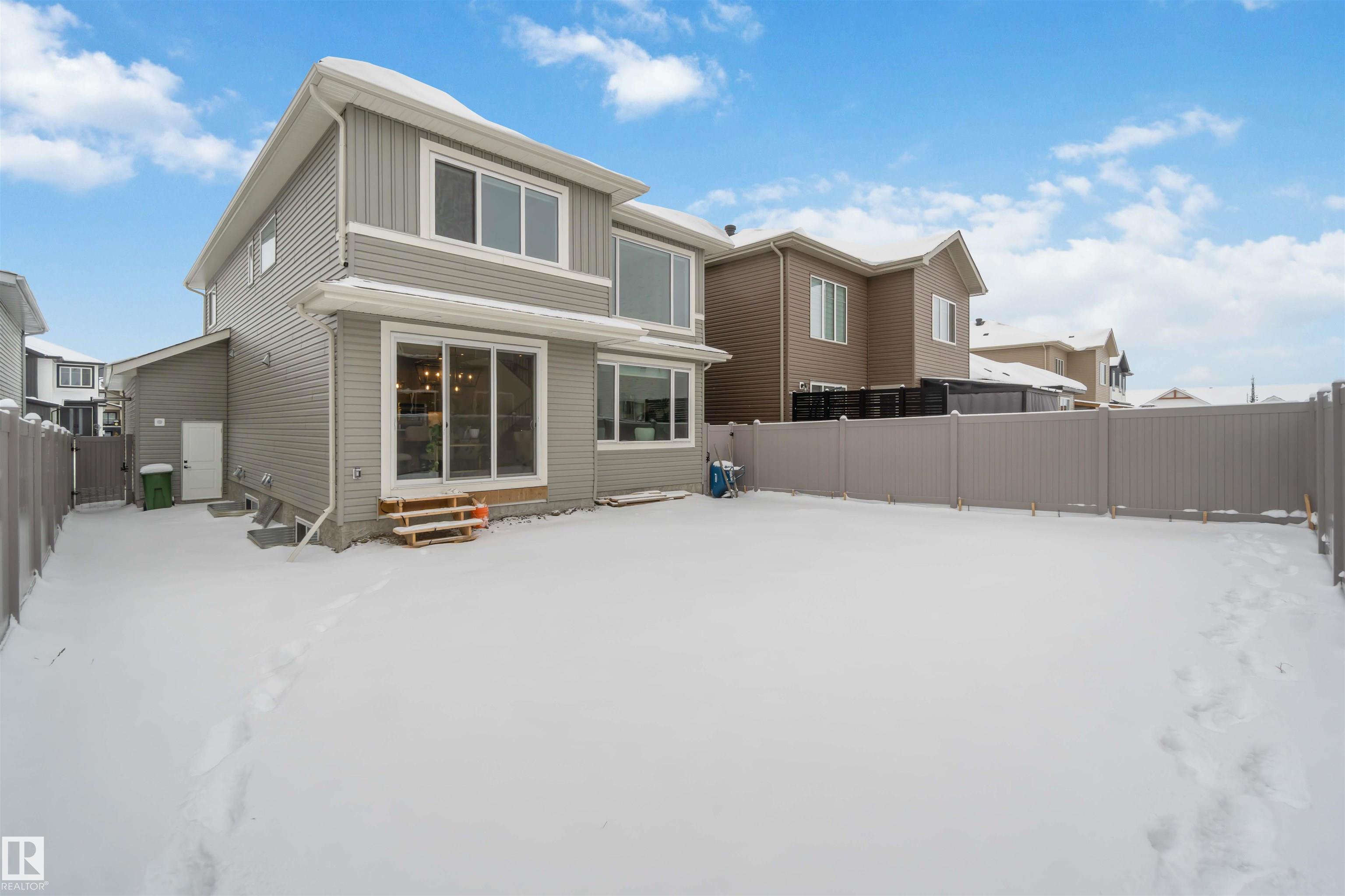 Beautiful 3-bedroom home with a triple attached heated garage and a fully finished 2-bedroom legal basement suite with separate entrance, ideal for rental income or private space for extended family. The main floor features a 2-piece bath and a striking great room with 17? ceilings, gas fireplace, and floor-to-ceiling stone feature wall. Entry from the garage leads to a spacious mudroom and butler-style walk-through pantry connecting to the kitchen, complete with real wood cabinet boxes. Additional upgrades include light commercial?grade vinyl plank flooring, triple-pane windows with coverings, and a fully fenced backyard with low-maintenance vinyl fencing. Upstairs offers three bedrooms, including a primary suite with walk-in closet and 5-piece ensuite, a bonus room, 4-piece main bath, and convenient upper-level laundry. The legal basement suite includes its own stacked washer and dryer. Carpet is limited to the basement stairs only, ensuring easy maintenance throughout the home.