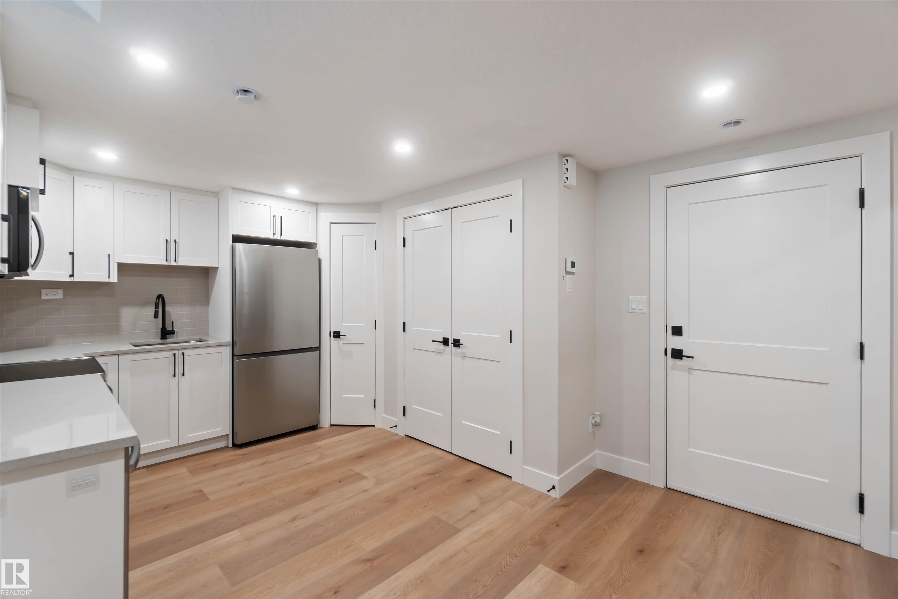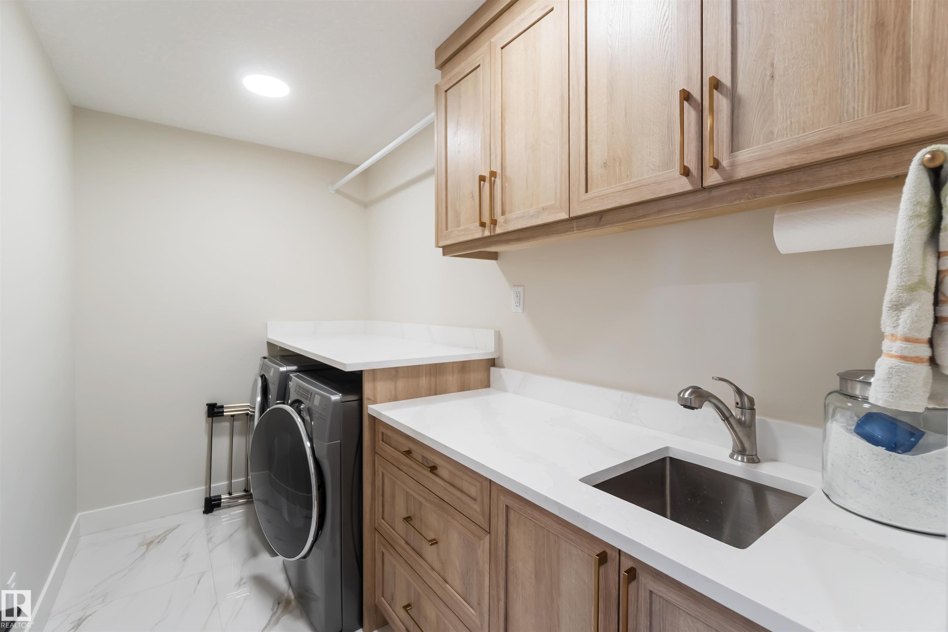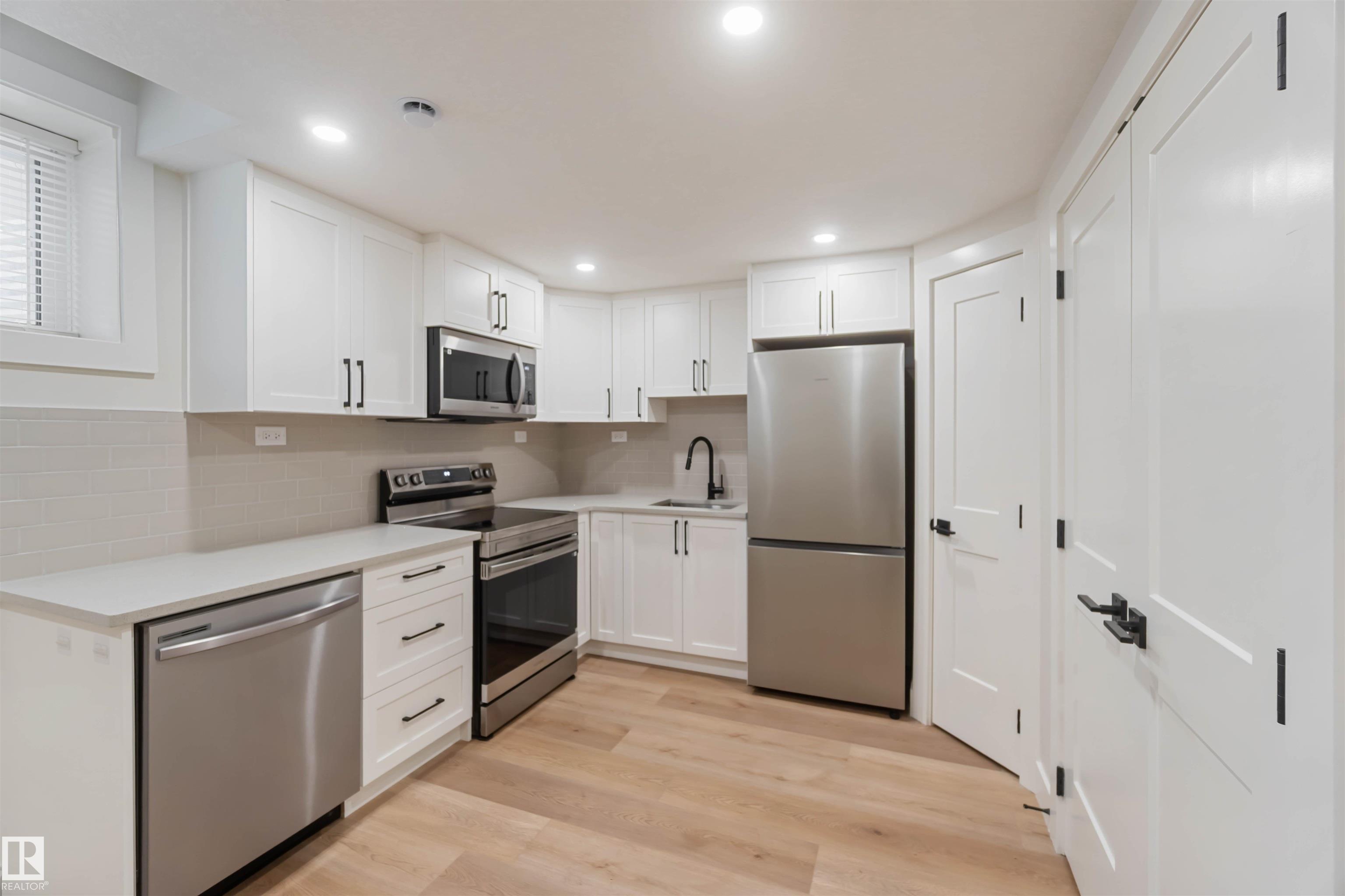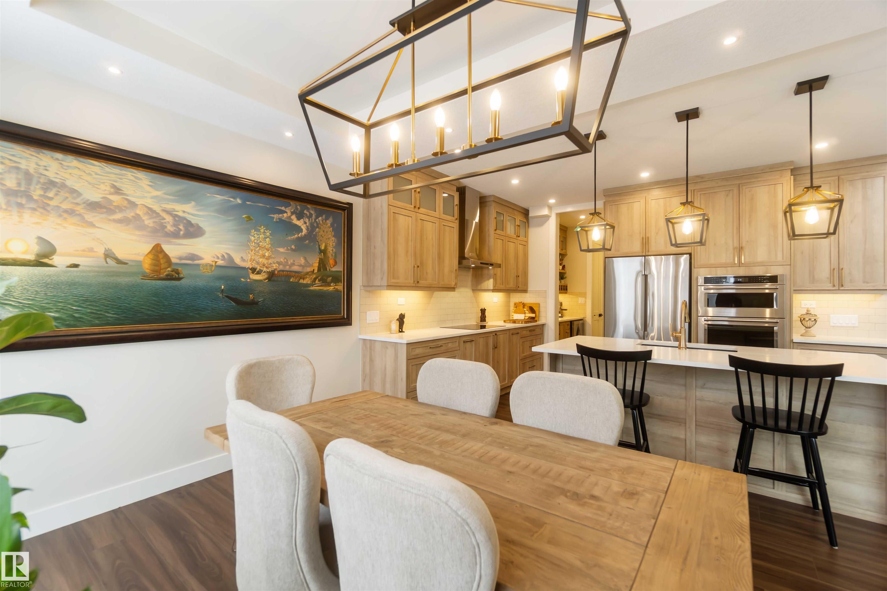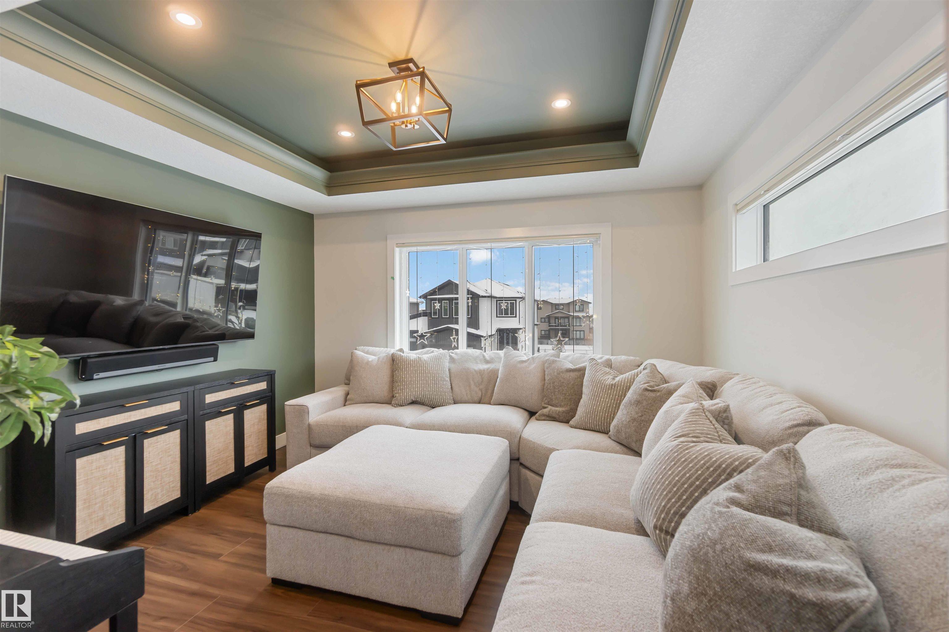 Beautiful 3-bedroom home with a triple attached heated garage and a fully finished 2-bedroom legal basement suite with separate entrance, ideal for rental income or private space for extended family. The main floor features a 2-piece bath and a striking great room with 17? ceilings, gas fireplace, and floor-to-ceiling stone feature wall. Entry from the garage leads to a spacious mudroom and butler-style walk-through pantry connecting to the kitchen, complete with real wood cabinet boxes. Additional upgrades include light commercial?grade vinyl plank flooring, triple-pane windows with coverings, and a fully fenced backyard with low-maintenance vinyl fencing. Upstairs offers three bedrooms, including a primary suite with walk-in closet and 5-piece ensuite, a bonus room, 4-piece main bath, and convenient upper-level laundry. The legal basement suite includes its own stacked washer and dryer. Carpet is limited to the basement stairs only, ensuring easy maintenance throughout the home.