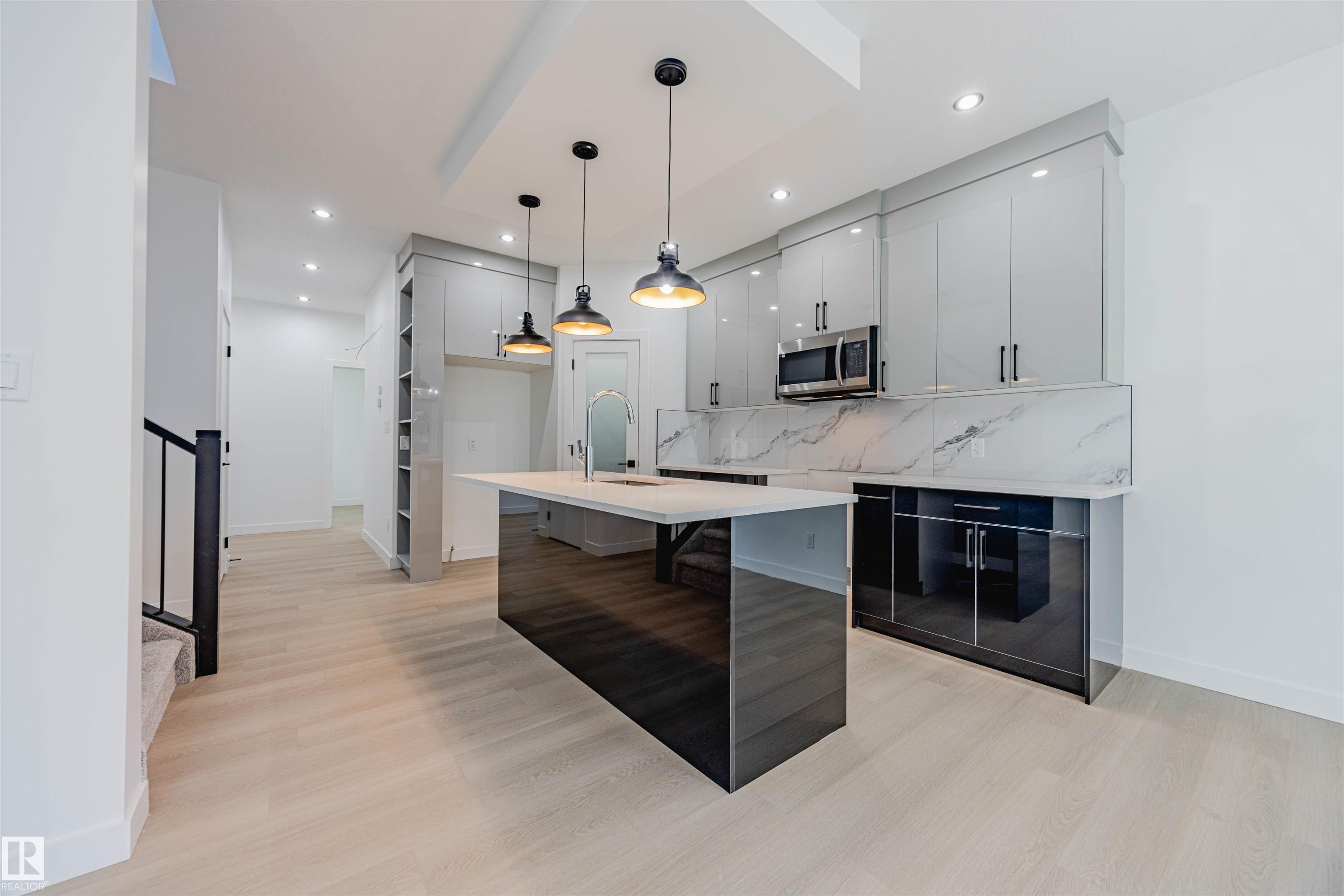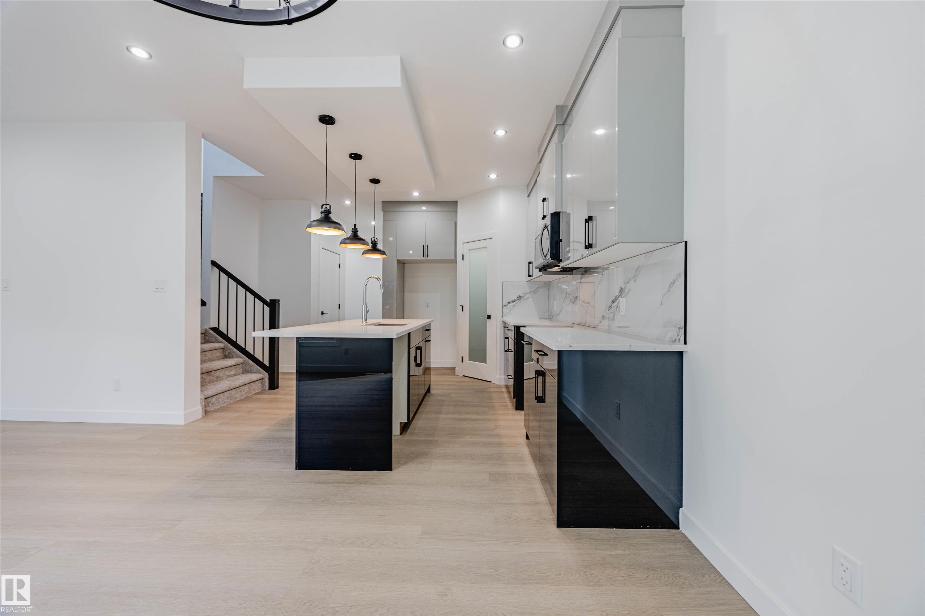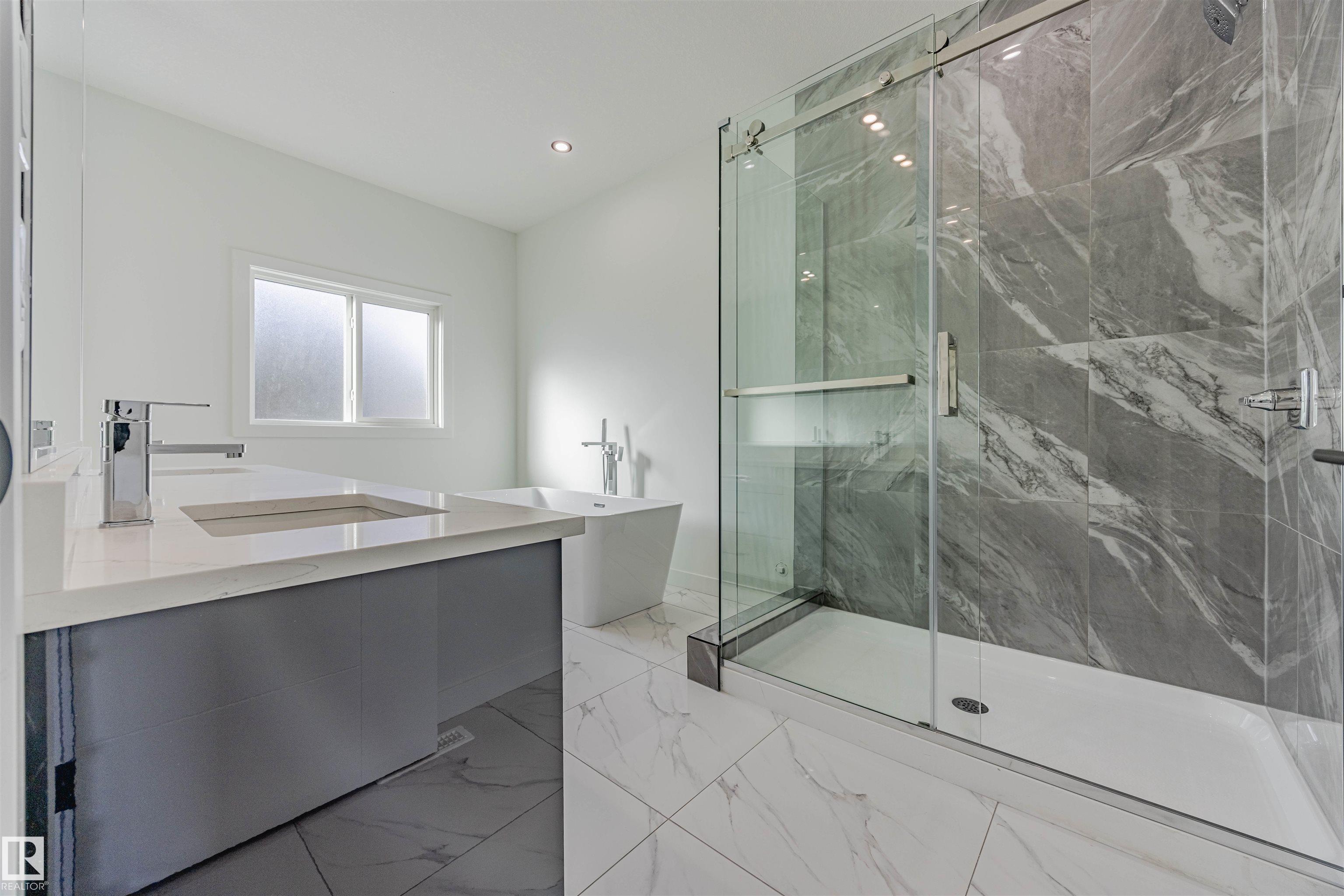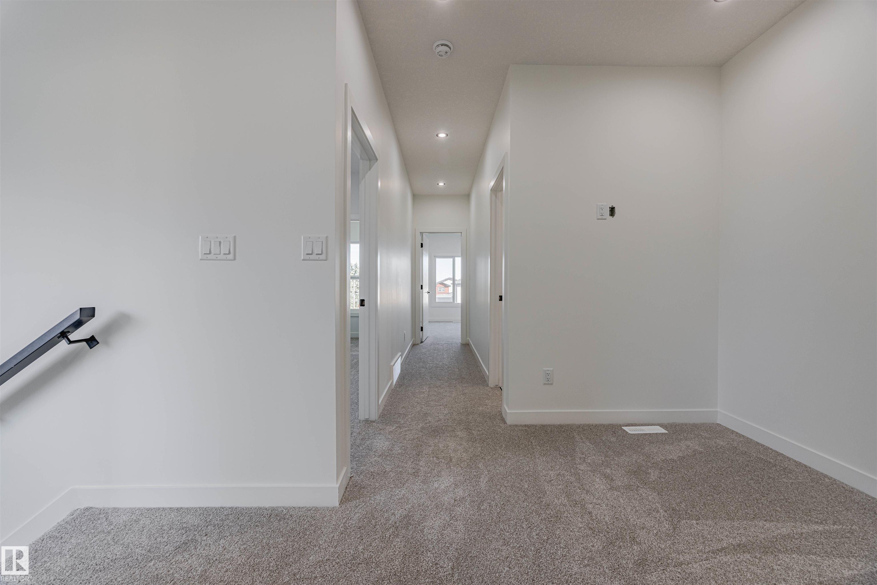 Welcome to this stunning brand-new custom duplex offering over 1,800 square feet of living space, perfectly situated on a corner lot in a quiet cul-de-sac. Thoughtfully designed for modern family living, this home features 4 spacious bedrooms and 3 full bathrooms, including a main floor three-piece bath with a walk-in shower. The main floor showcases 9-foot ceilings, a bright open layout, and a modern kitchen with a large island, walk-through pantry, and gas line for a future gas stove. Upstairs also features 9-foot ceilings, a bonus room, laundry, and two bedrooms with walk-in closets plus a beautiful primary suite with a luxurious 5-piece ensuite. The basement continues the 9-foot ceilings and has a side entrance ready for a future 2-bedroom legal suite. The single attached garage is insulated, oversized, and includes a floor drain for added convenience. A stylish, functional, and flexible home with incredible potential.