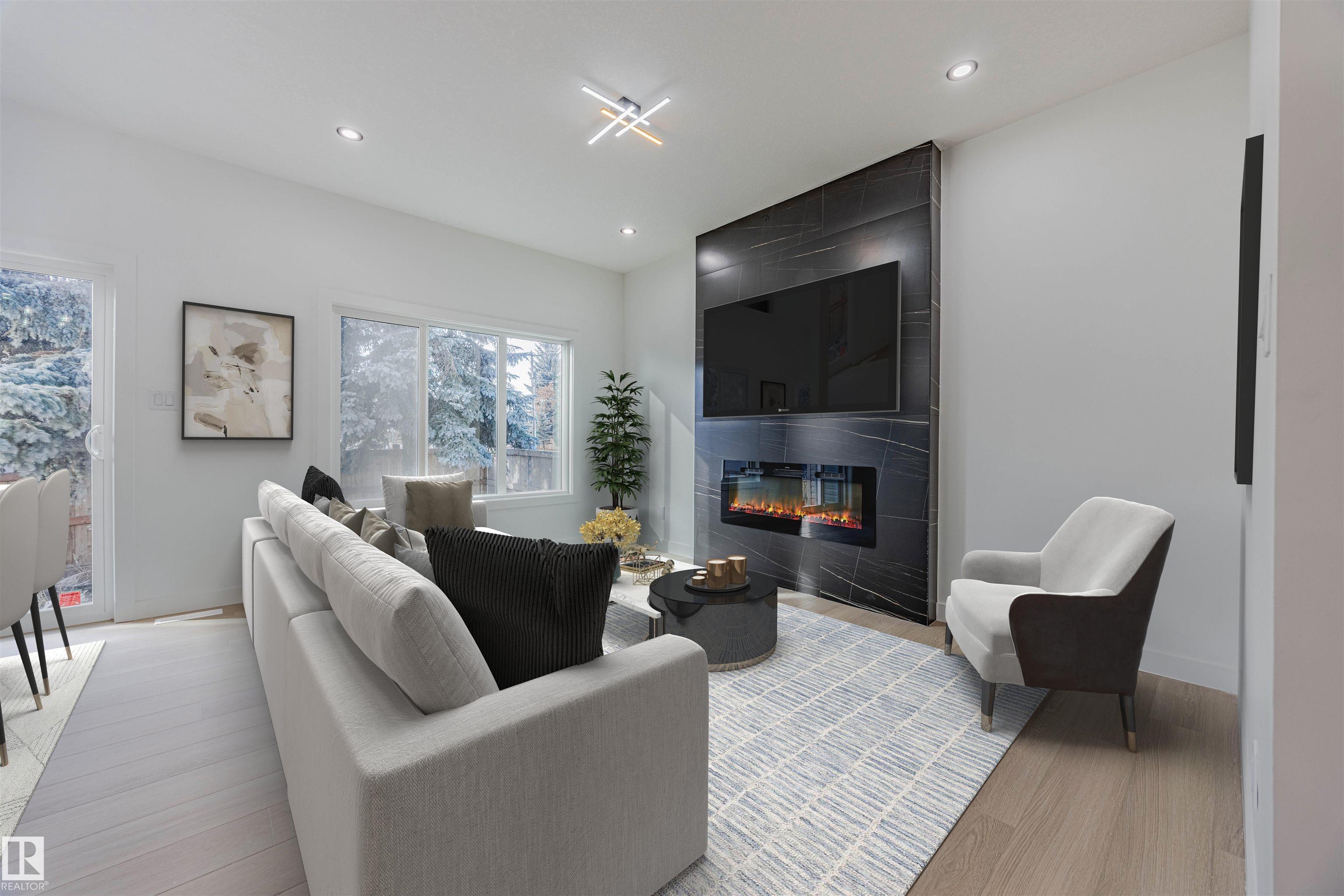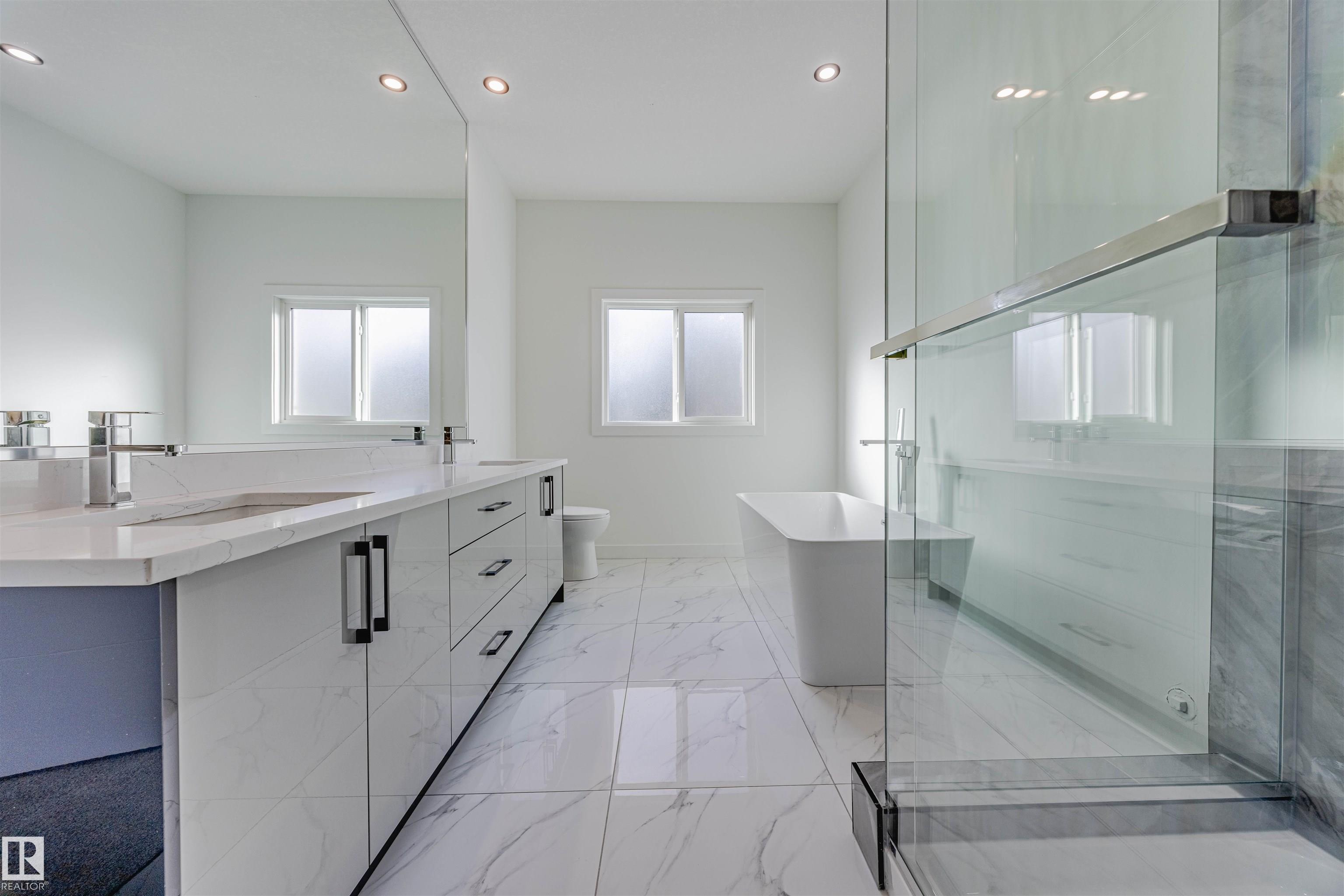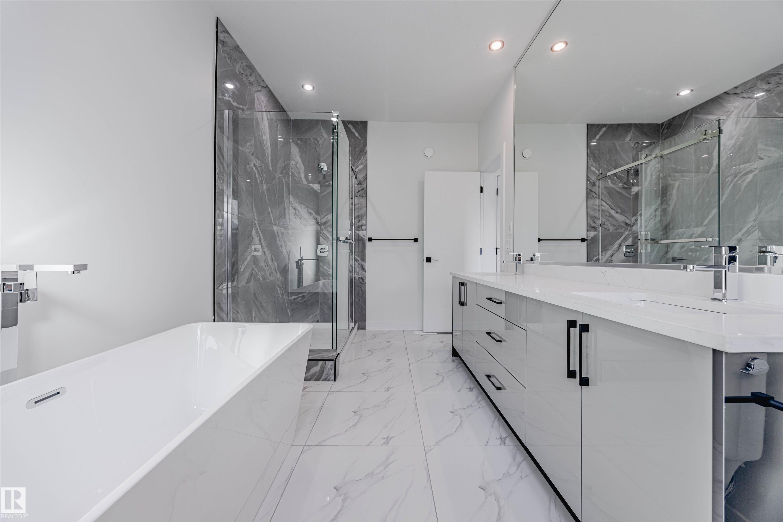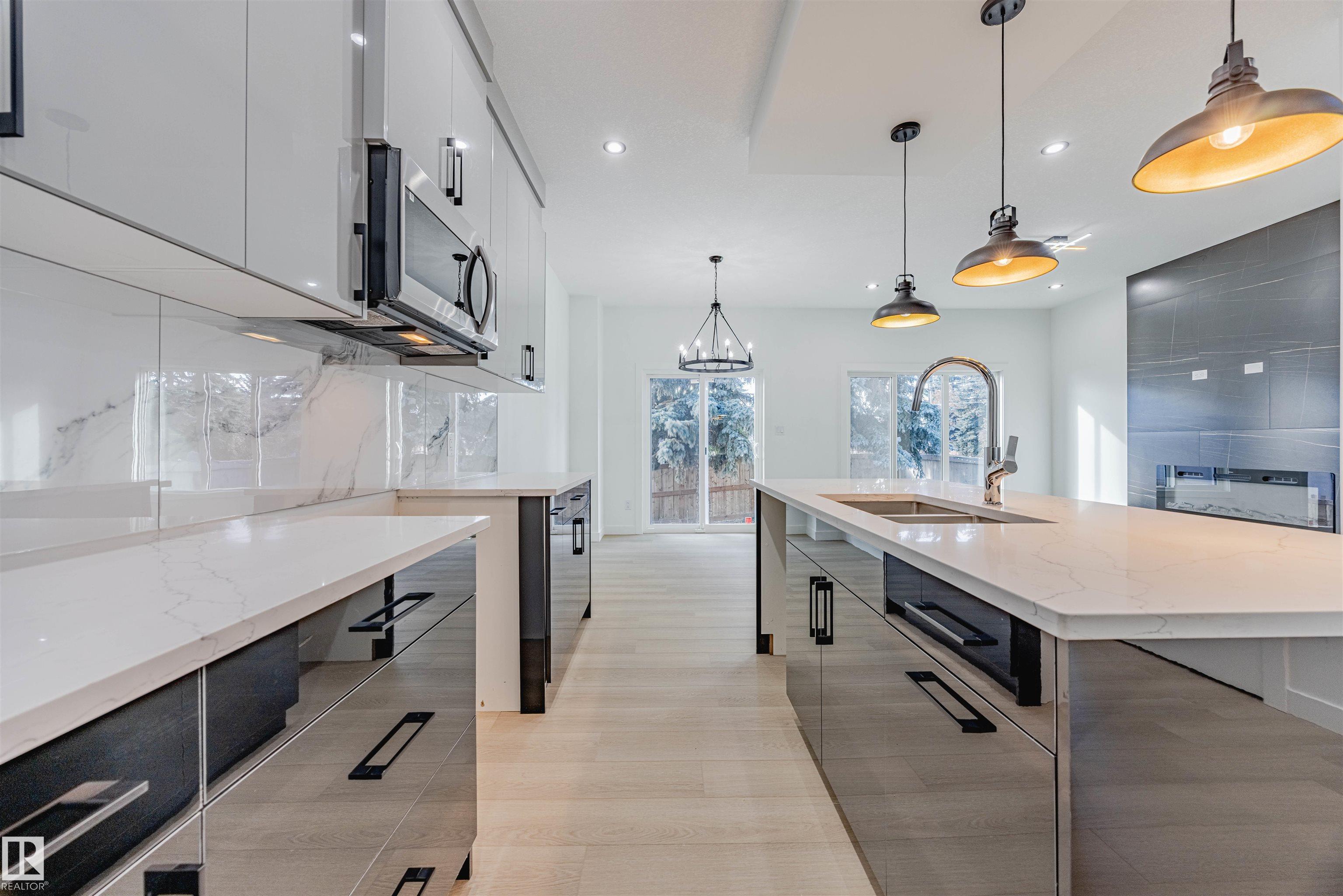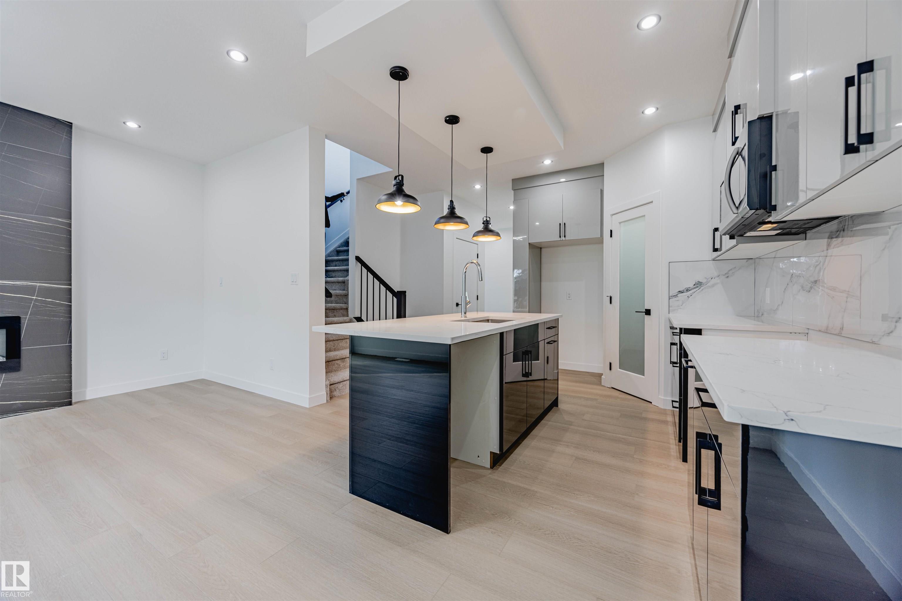 Welcome to this stunning brand-new custom duplex offering over 1,800 square feet of living space, perfectly situated on a corner lot in a quiet cul-de-sac. Thoughtfully designed for modern family living, this home features 4 spacious bedrooms and 3 full bathrooms, including a main floor three-piece bath with a walk-in shower. The main floor showcases 9-foot ceilings, a bright open layout, and a modern kitchen with a large island, walk-through pantry, and gas line for a future gas stove. Upstairs also features 9-foot ceilings, a bonus room, laundry, and two bedrooms with walk-in closets plus a beautiful primary suite with a luxurious 5-piece ensuite. The basement continues the 9-foot ceilings and has a side entrance ready for a future 2-bedroom legal suite. The single attached garage is insulated, oversized, and includes a floor drain for added convenience. A stylish, functional, and flexible home with incredible potential.