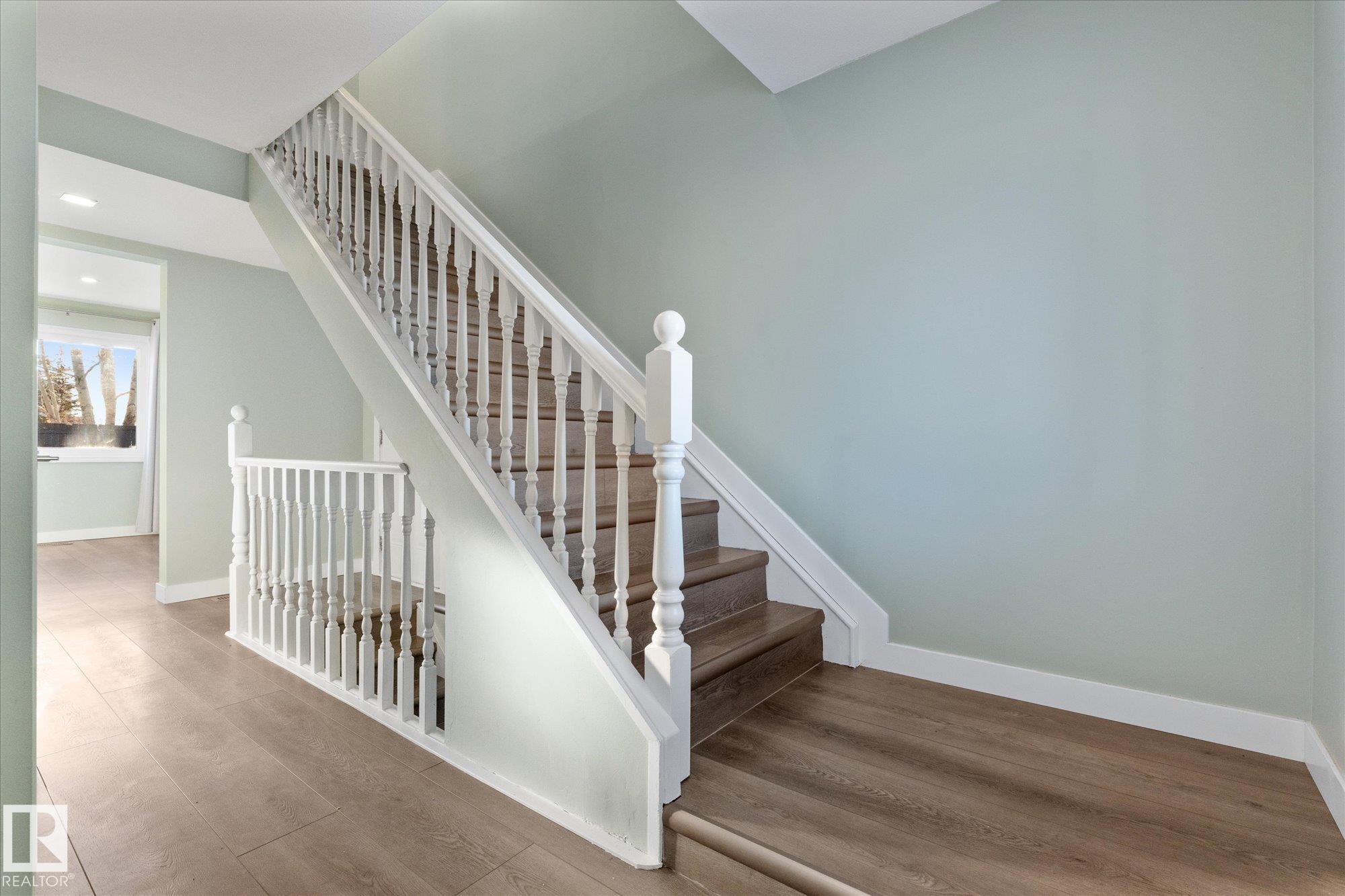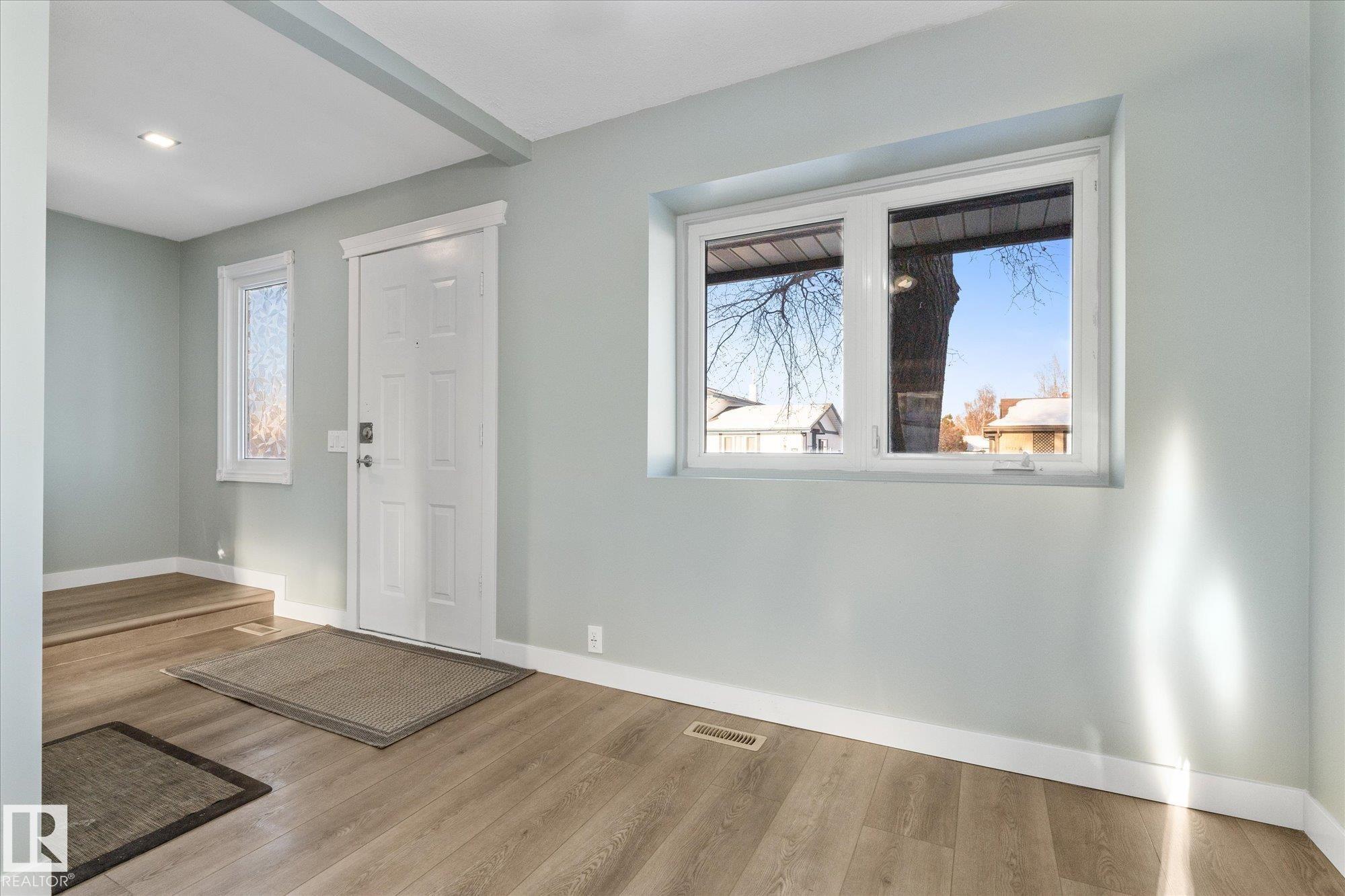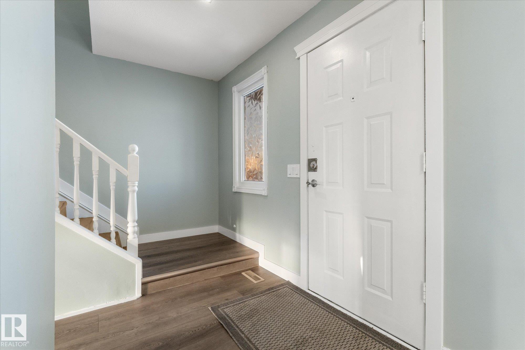 Perfect opportunity for a first time home buyer. This 1200 plus sqft duplex has been updated from top to bottom and is truly move in ready. Recent improvements include new vinyl plank flooring throughout, a fully renovated kitchen with new appliances, updated bathrooms, newer windows, and more. The main floor offers a functional layout with a spacious living room, dining area, kitchen, and a convenient two piece bathroom. Upstairs you will find three bedrooms, including a primary bedroom with a walk in closet, along with a beautifully renovated four piece bathroom. The basement is unfinished and ready for your future development ideas. Outside, enjoy a large fully fenced yard backing onto green space with a walking path, offering quick access to restaurants, shopping, and the Dow Centre. A turn key home at an affordable price point!