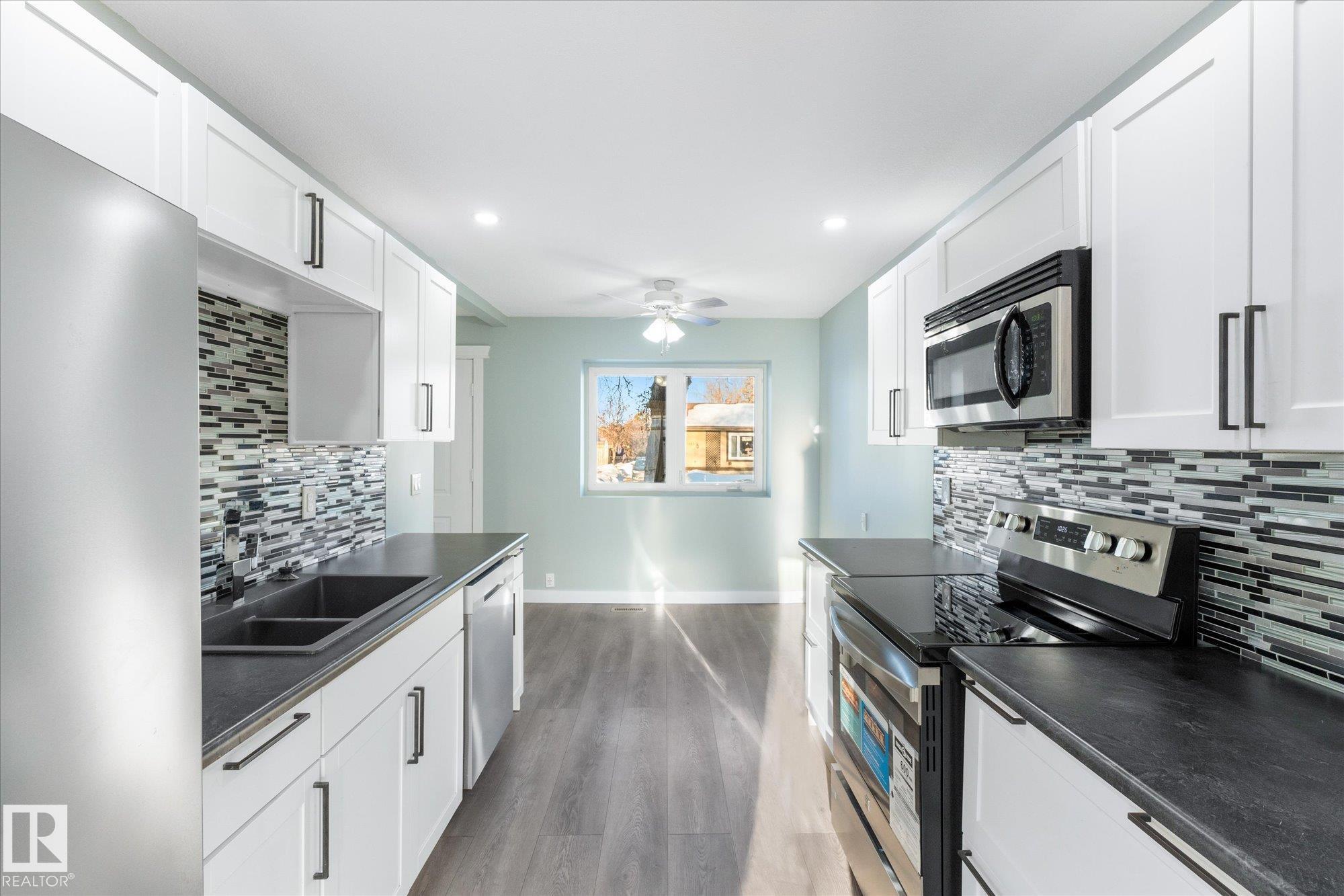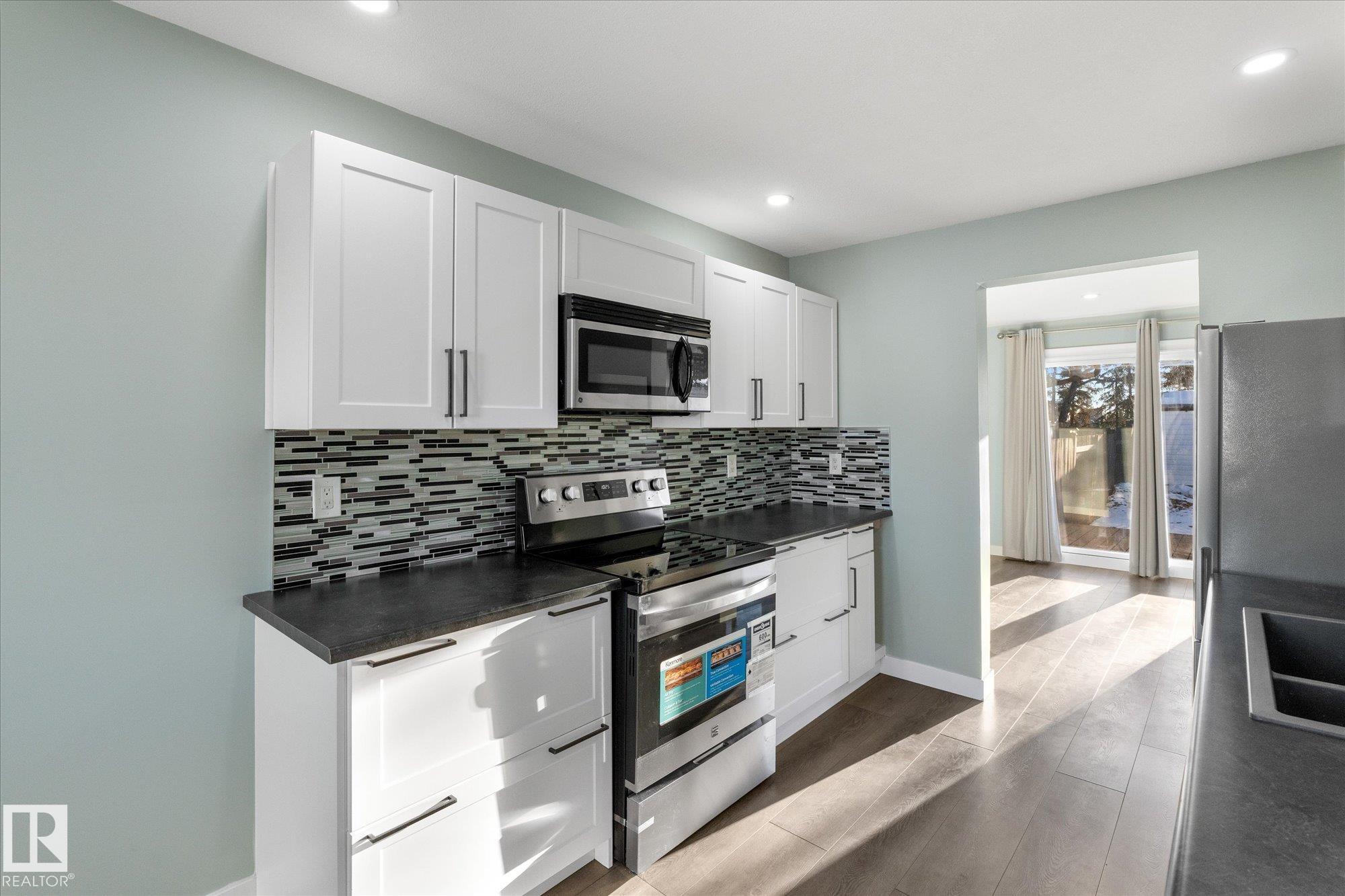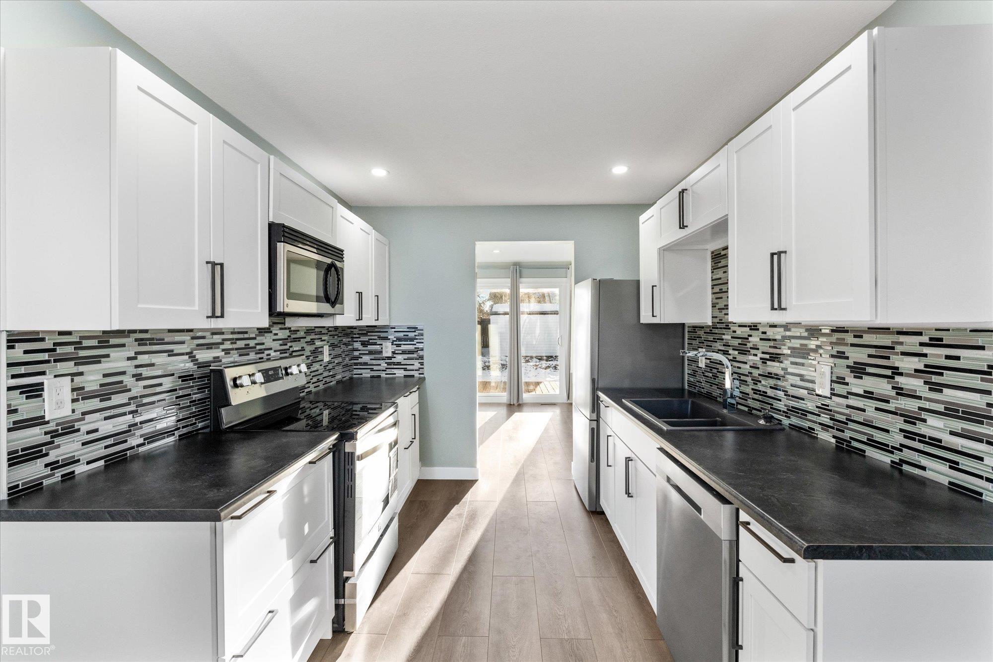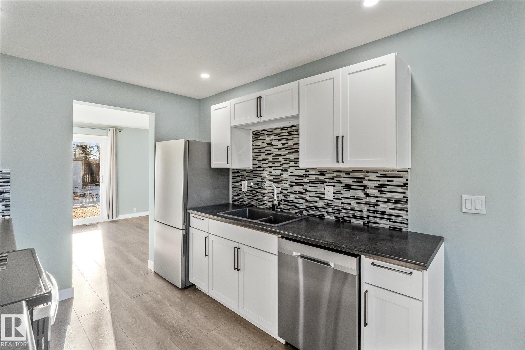 Perfect opportunity for a first time home buyer. This 1200 plus sqft duplex has been updated from top to bottom and is truly move in ready. Recent improvements include new vinyl plank flooring throughout, a fully renovated kitchen with new appliances, updated bathrooms, newer windows, and more. The main floor offers a functional layout with a spacious living room, dining area, kitchen, and a convenient two piece bathroom. Upstairs you will find three bedrooms, including a primary bedroom with a walk in closet, along with a beautifully renovated four piece bathroom. The basement is unfinished and ready for your future development ideas. Outside, enjoy a large fully fenced yard backing onto green space with a walking path, offering quick access to restaurants, shopping, and the Dow Centre. A turn key home at an affordable price point!