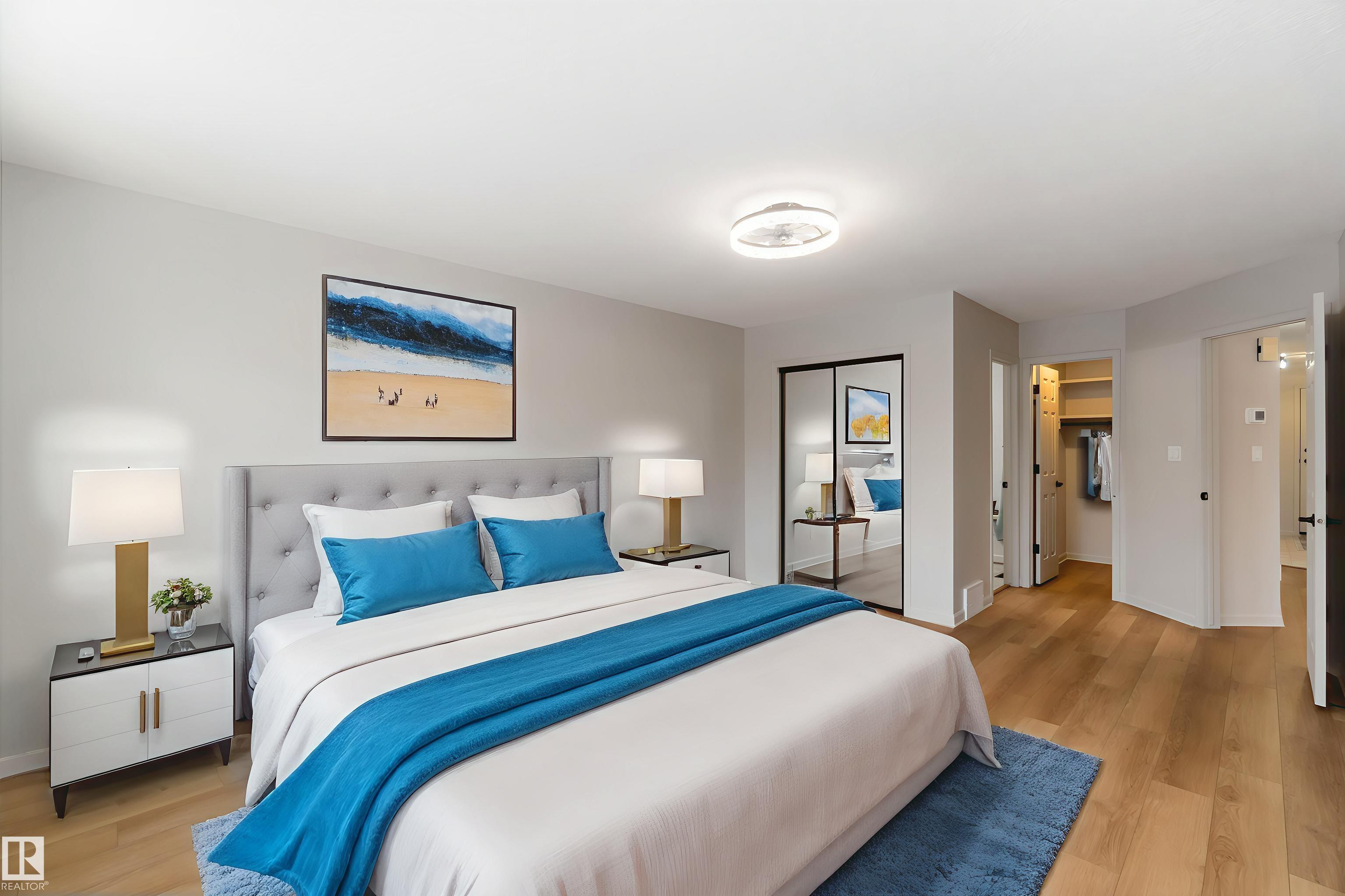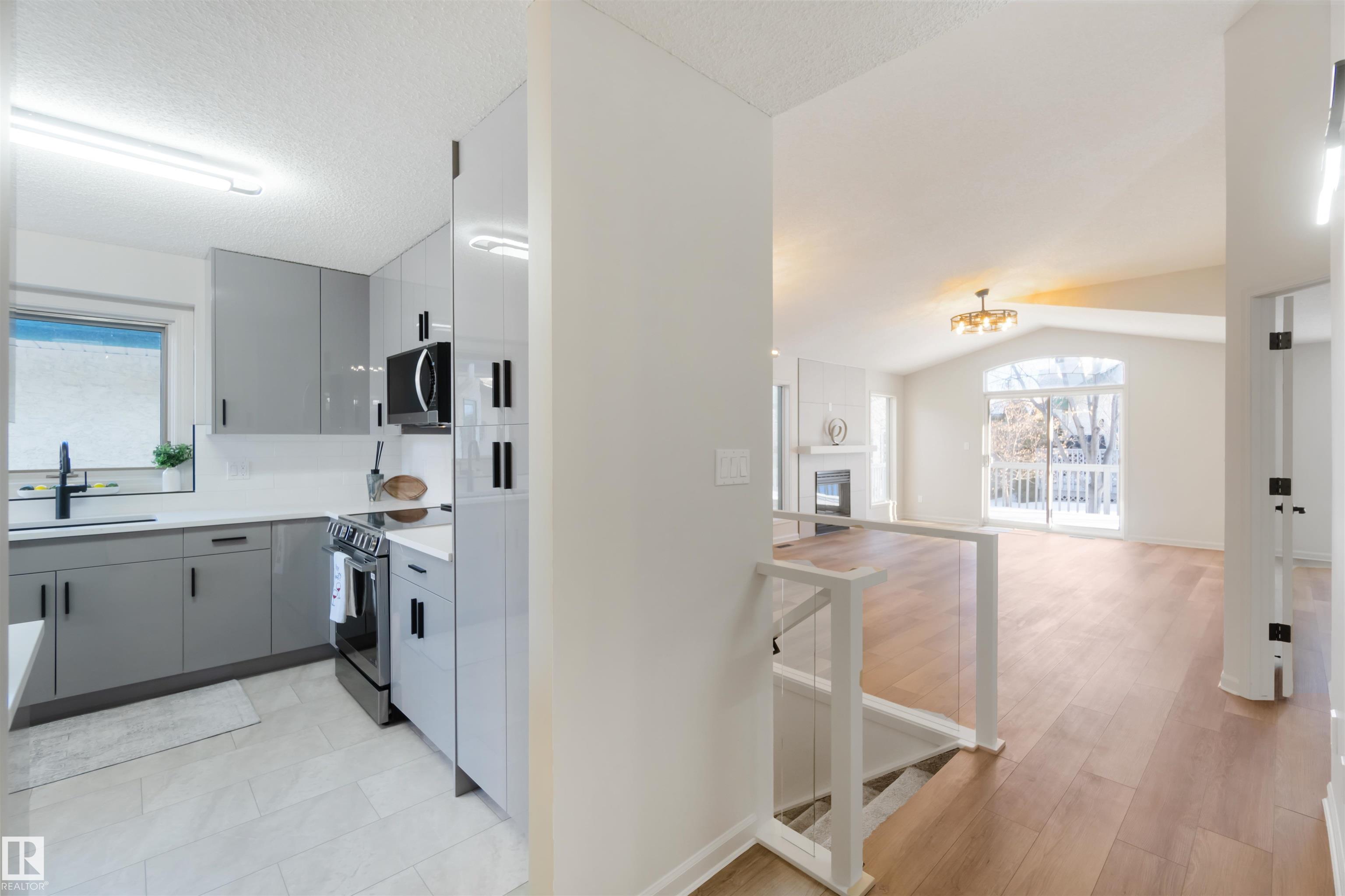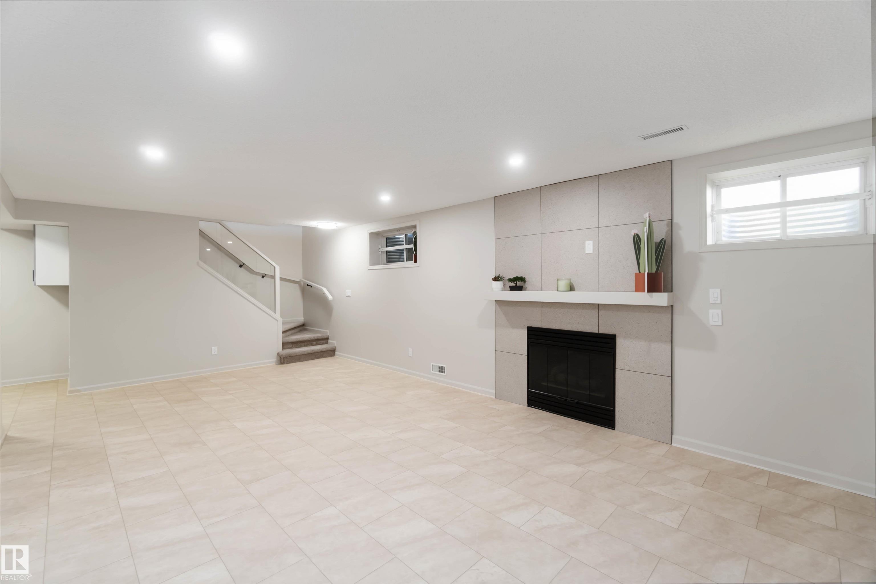 Indulge in the perfect blend of sophisticated design and everyday comfort with this exquisitely renovated bungalow half-duplex in Southwest Edmonton. From the moment you enter, the craftsmanship shines through a newly configured kitchen boasting sleek grey cabinetry, stainless steel appliances, and modern light fixtures. Main floor is defined by elegant glass railings, beautiful flooring, and one of two gas fireplaces, alongside the convenience of main floor laundry and a versatile second bedroom. The main-floor primary retreat offers a spa-inspired ensuite with a Jacuzzi tub, plus a second bedroom and main bath, while the fully finished basement provides exceptional flexibility with a rare second primary bedroom suite featuring its own full bath?ideal for guests or multi-generational living. With three full bathrooms showcasing large new showers and a double attached garage, every detail has been considered. Enjoy summer evenings on the large deck off the living room or explore the nearby parks.
