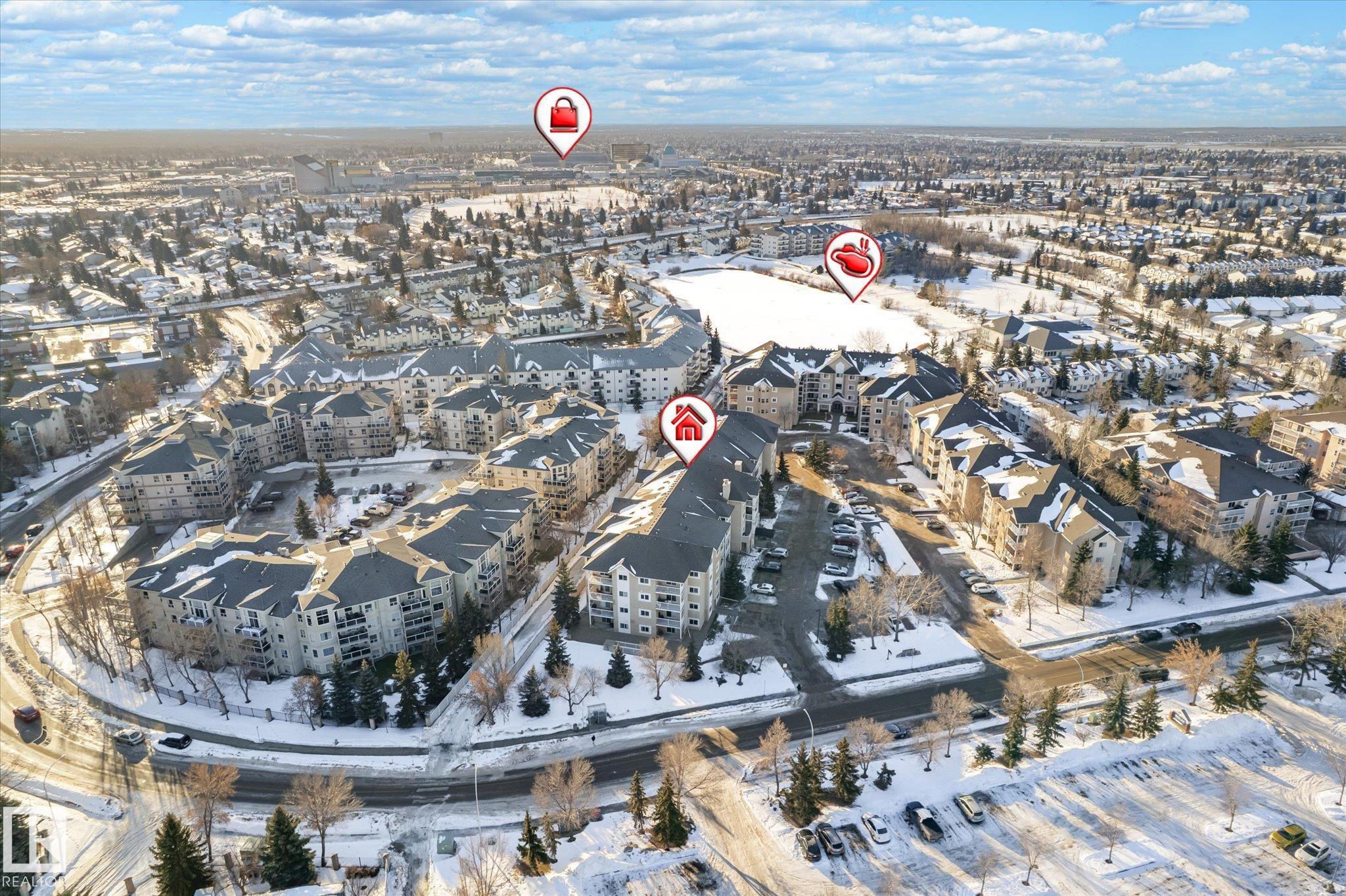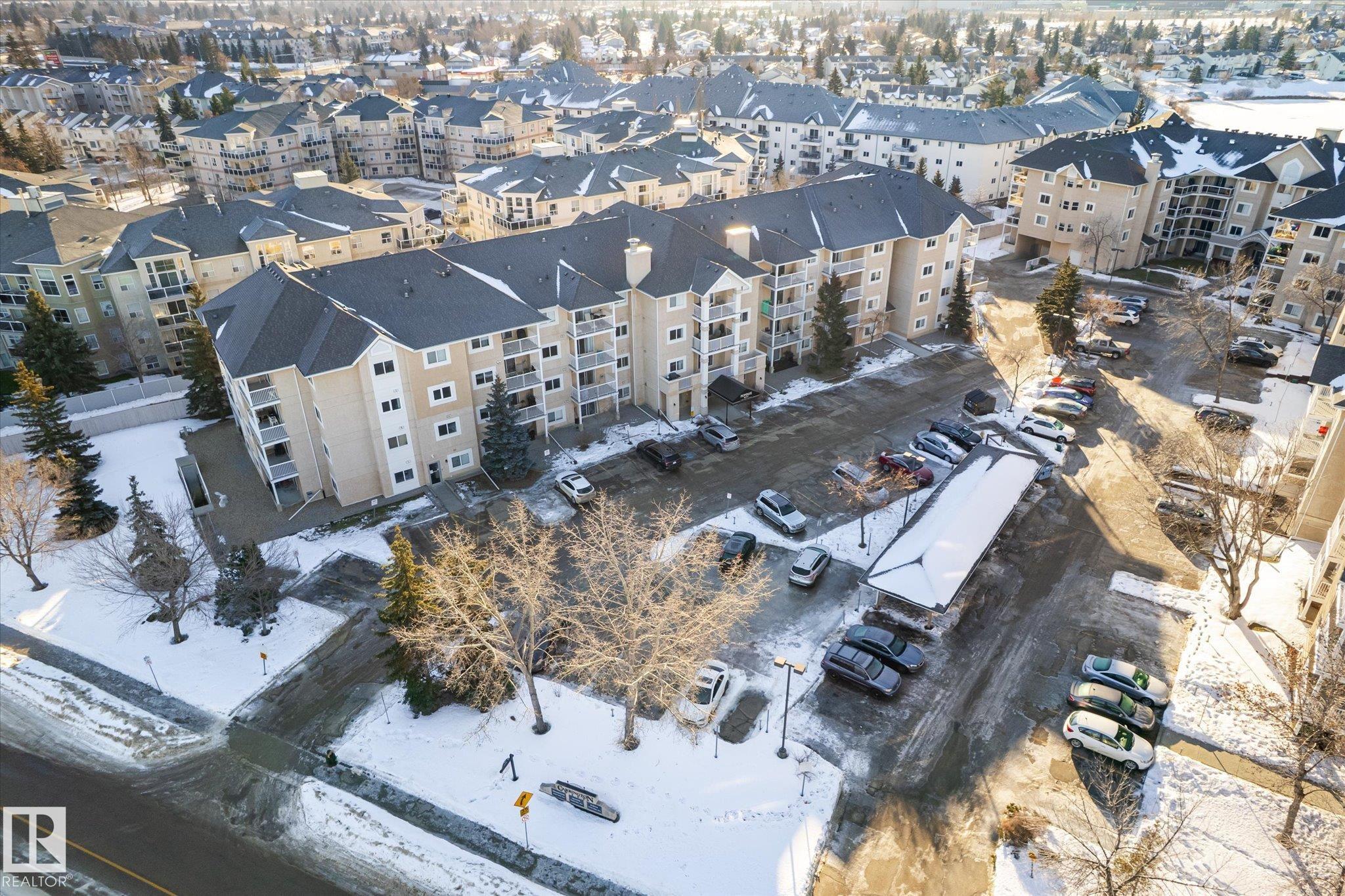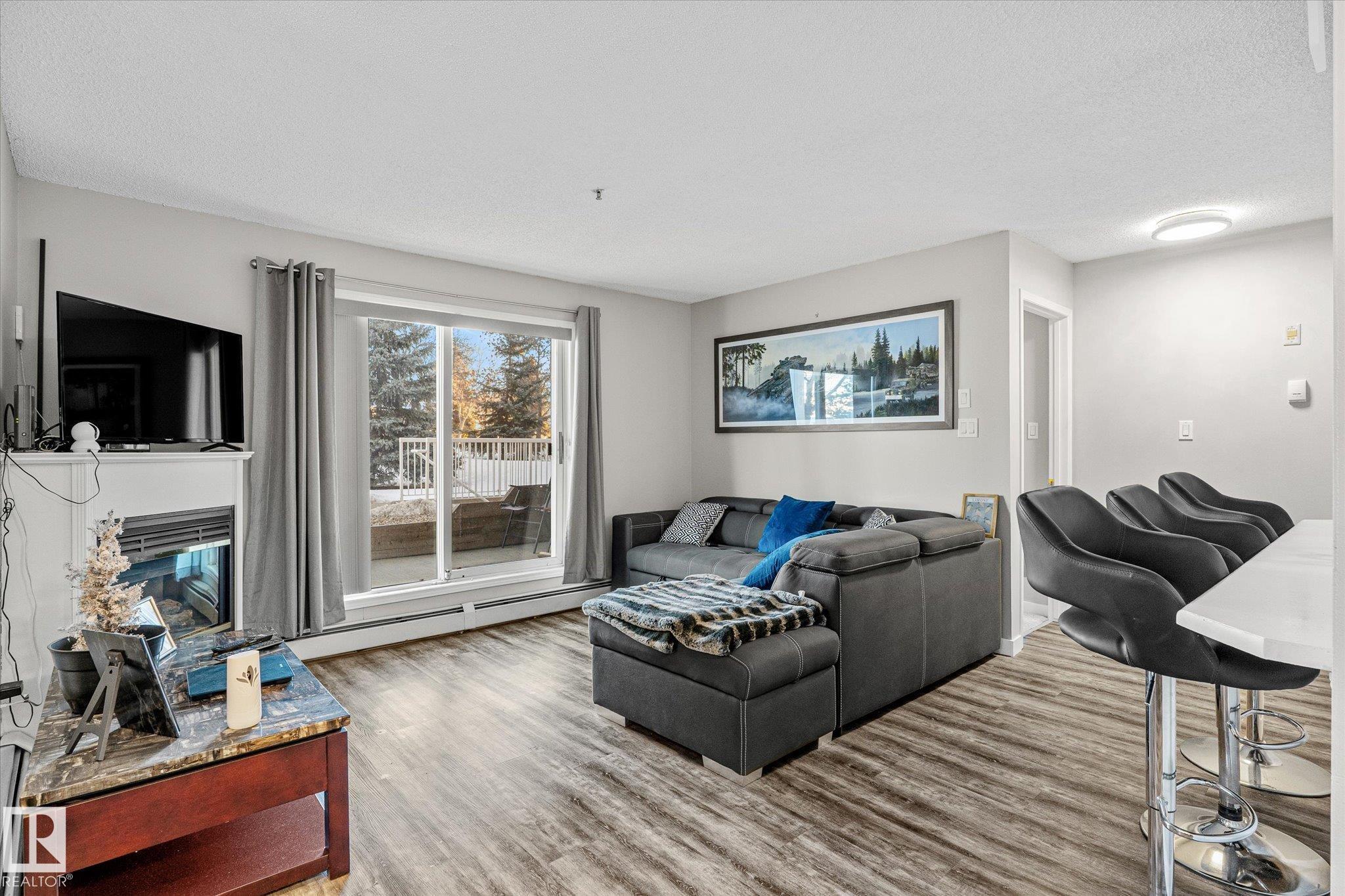 Enjoy condo living in Terra Losa, with access to green-space and lake! Excellent value in this main floor corner unit with 2-bedroom and 2 bathrooms. Functional open-concept living and dining area features large windows that lets the natural light shine in on the vinyl plank flooring. The living room is anchored with a gas fireplace. The bright white kitchen is nicely equipped with stainless steel appliances. Both bedrooms are very spacious with carpet floors to keep your toes warm on those winter mornings. The master bedroom has a walk in closet as well as a full ensuite. Enjoy your patio terrace, perfect for enjoying an evening BBQ. Conveniently located near West Edmonton Mall, this prime location is walking distance to schools, transit, restaurants and shopping. The unit also comes with a titled underground parking stall & storage cage. This unit is ideal for couples, singles, and roommates. The main floor location is helpful for the dog owner.