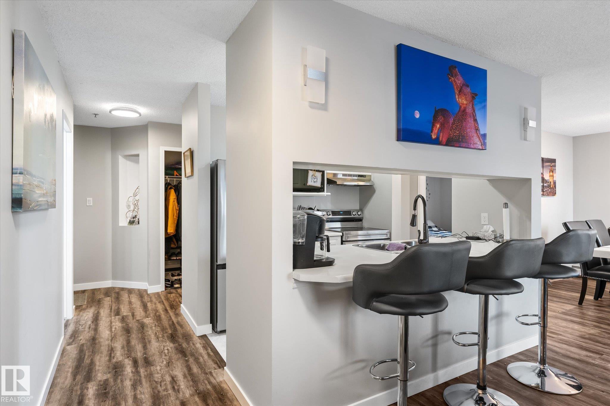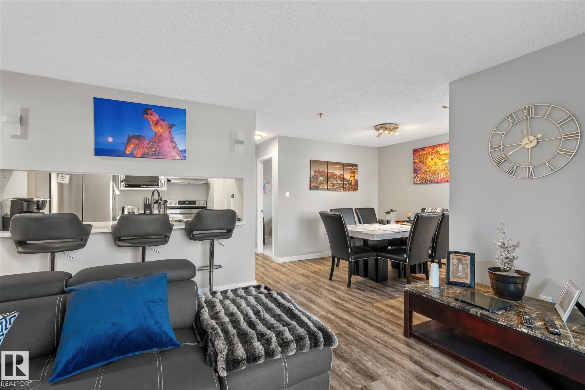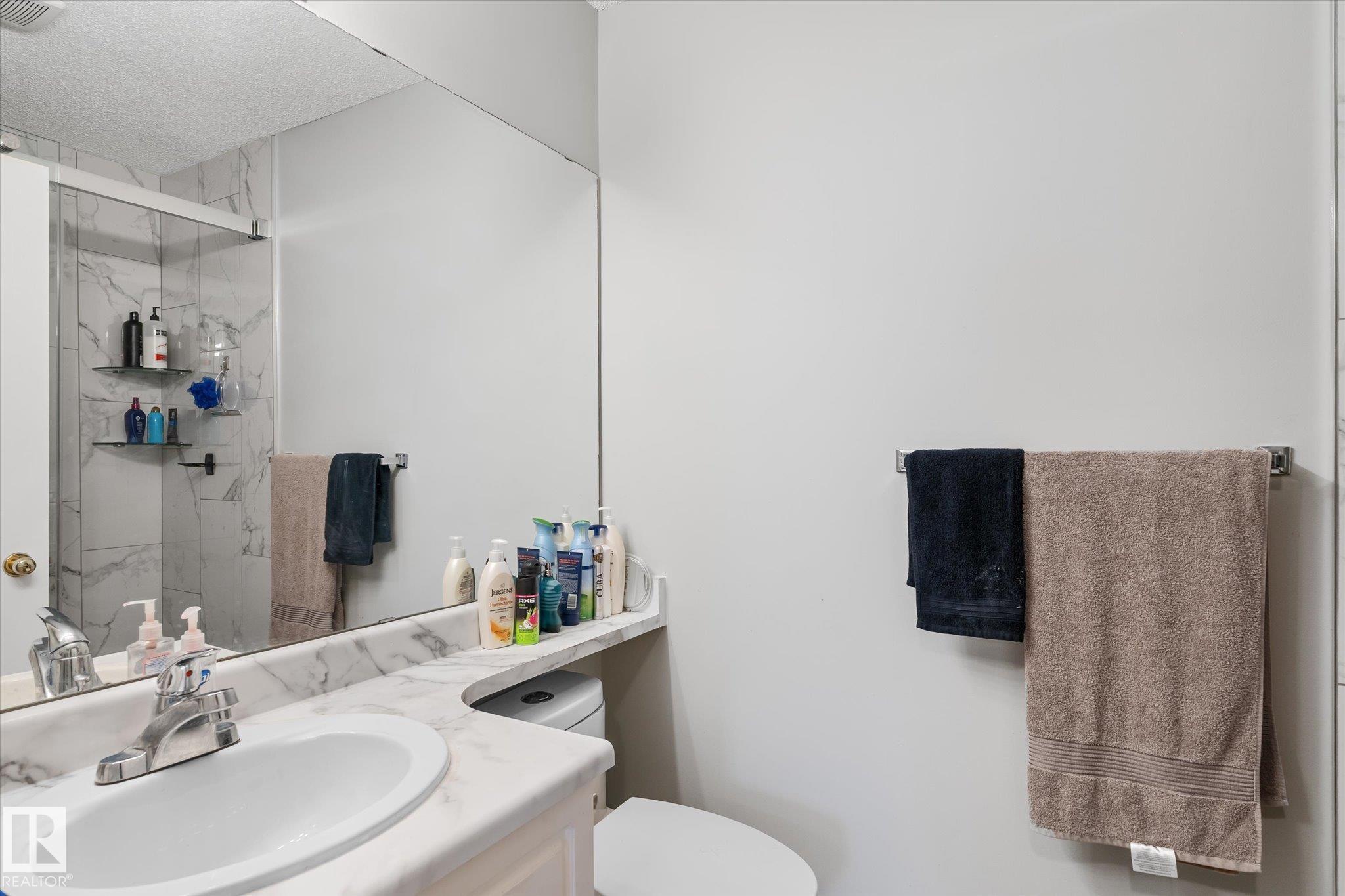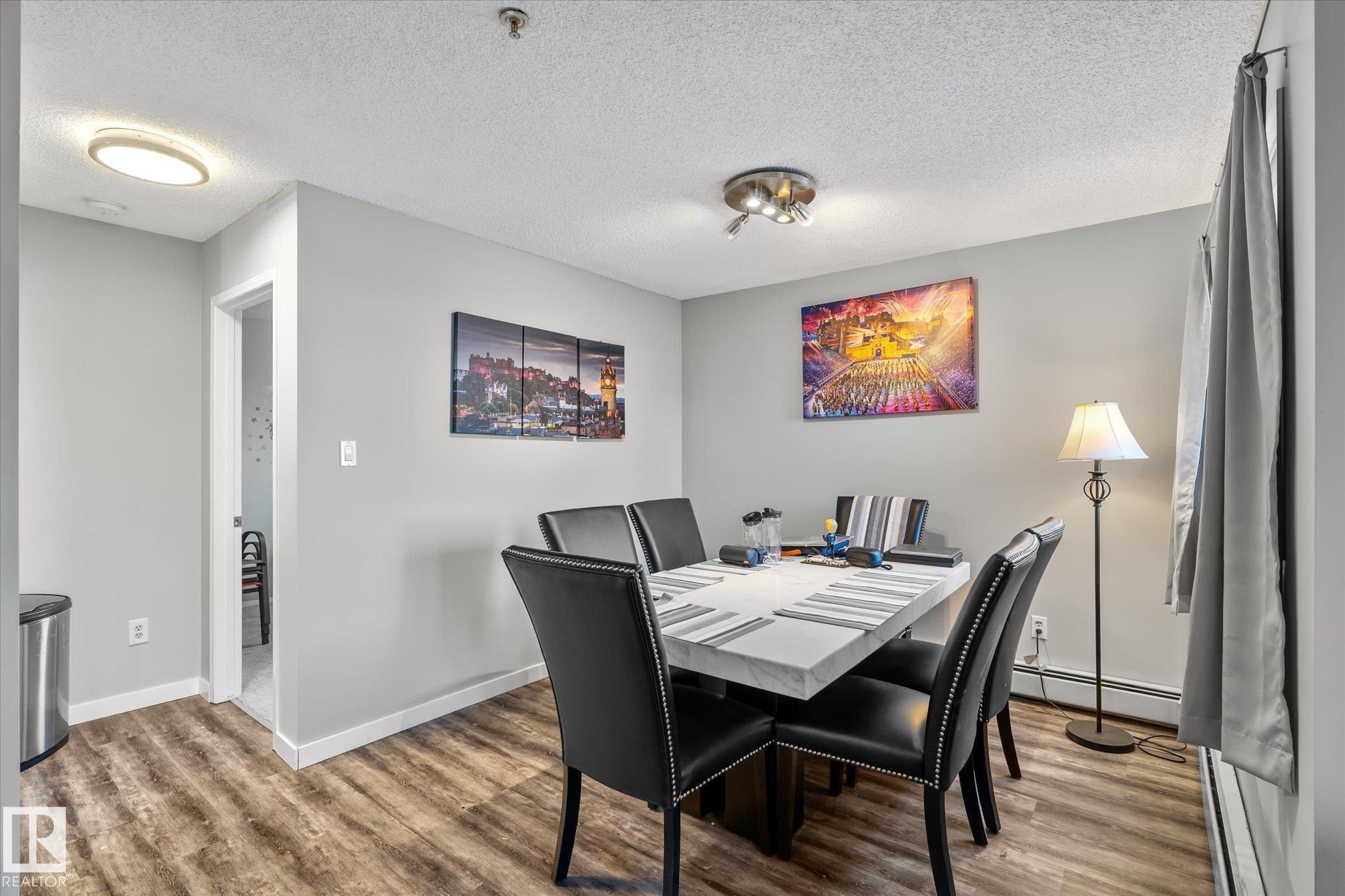 Enjoy condo living in Terra Losa, with access to green-space and lake! Excellent value in this main floor corner unit with 2-bedroom and 2 bathrooms. Functional open-concept living and dining area features large windows that lets the natural light shine in on the vinyl plank flooring. The living room is anchored with a gas fireplace. The bright white kitchen is nicely equipped with stainless steel appliances. Both bedrooms are very spacious with carpet floors to keep your toes warm on those winter mornings. The master bedroom has a walk in closet as well as a full ensuite. Enjoy your patio terrace, perfect for enjoying an evening BBQ. Conveniently located near West Edmonton Mall, this prime location is walking distance to schools, transit, restaurants and shopping. The unit also comes with a titled underground parking stall & storage cage. This unit is ideal for couples, singles, and roommates. The main floor location is helpful for the dog owner.