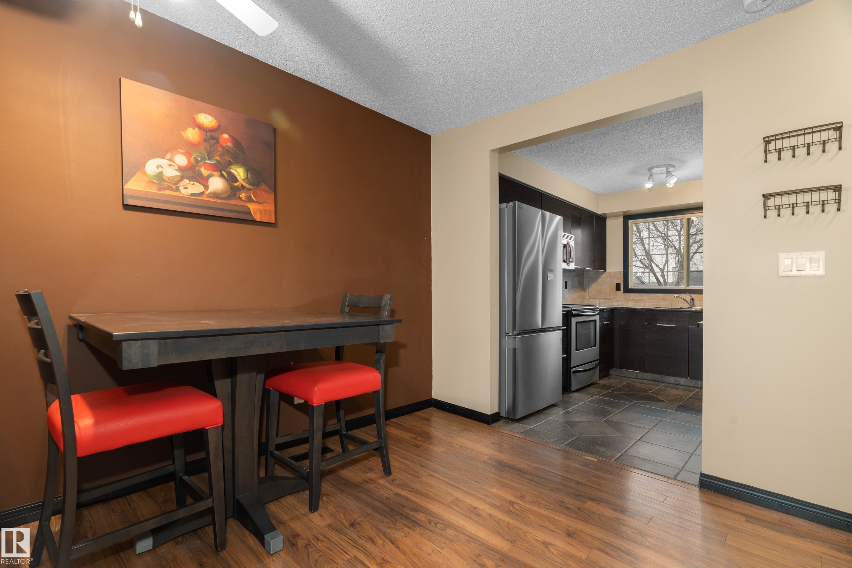 Welcome to this beautifully updated bi-level in Kiniski Gardens?offering incredible value! Perfect for first-time buyers or downsizers, this 2-bedroom home is move-in ready with thoughtful upgrades throughout. The main floor features a fully updated kitchen with espresso cabinetry, granite counters, a brand new stainless steel fridge, matching stainless steel appliances, and stunning tile work. Enjoy laminate flooring, a stylish half bath, and a cozy corner wood-burning fireplace. Step out to your deck and fully fenced backyard?great for relaxing or entertaining. Downstairs, you'll find two bright bedrooms, a full bathroom, and large bi-level windows for natural light. The oversized 24' x 14.5' garage is a great size. Located on a quiet street in a great community?this home checks all the boxes! The attic space has also been thoughtfully designed to increase storage space, perfect for storing away seasonal items! Upgrades include newer shingles, new carpet, and a new bathroom vanity!