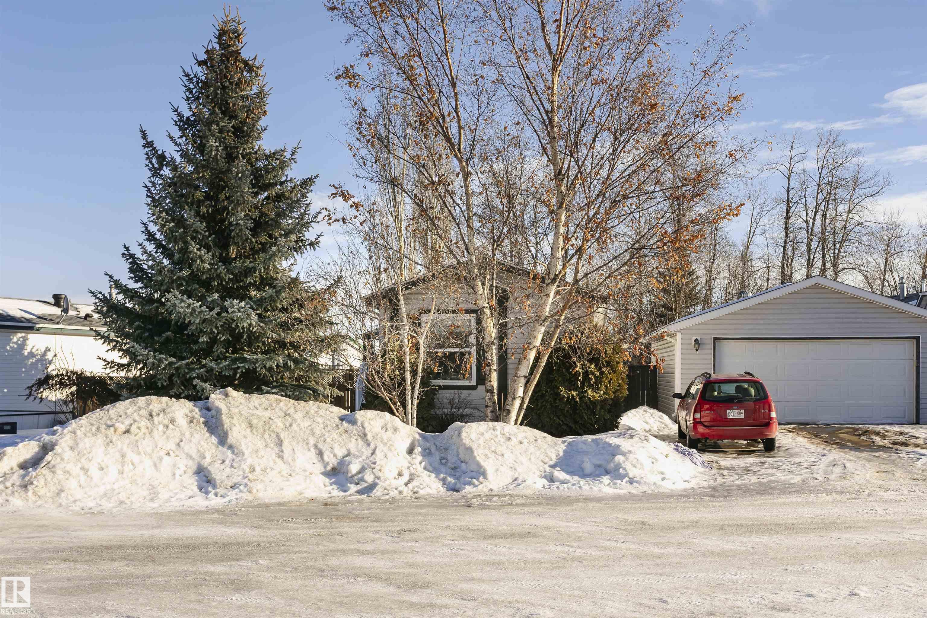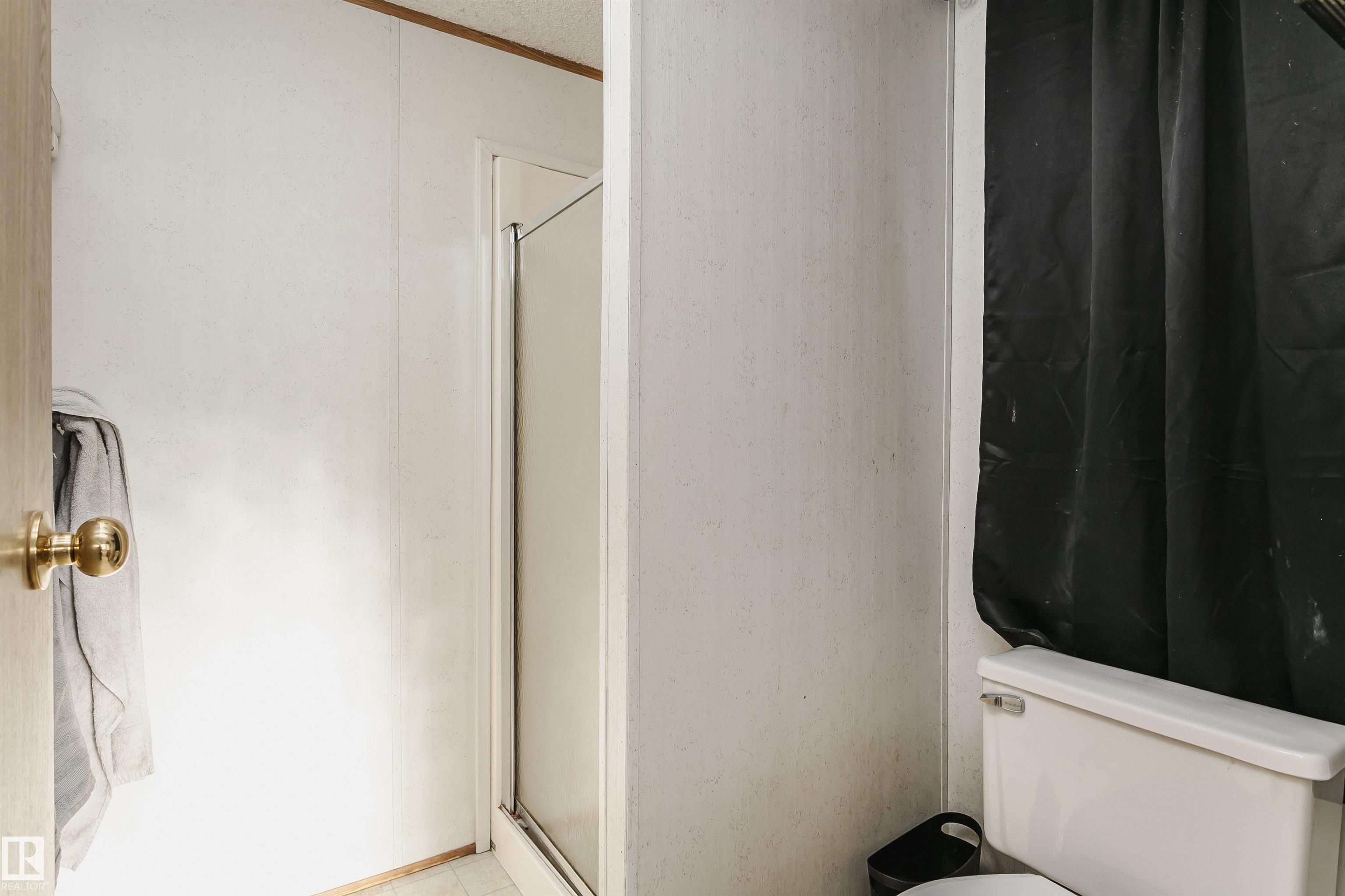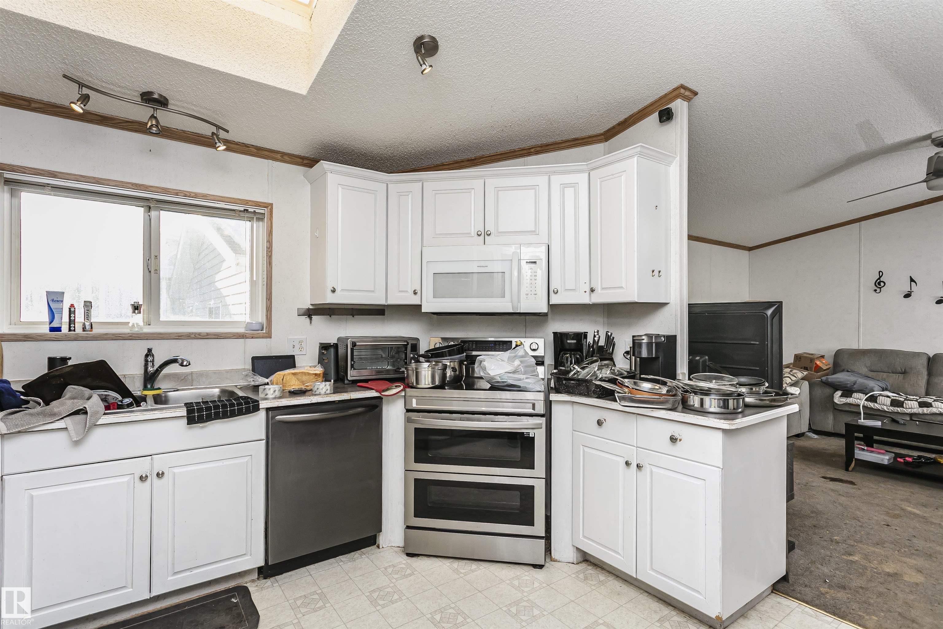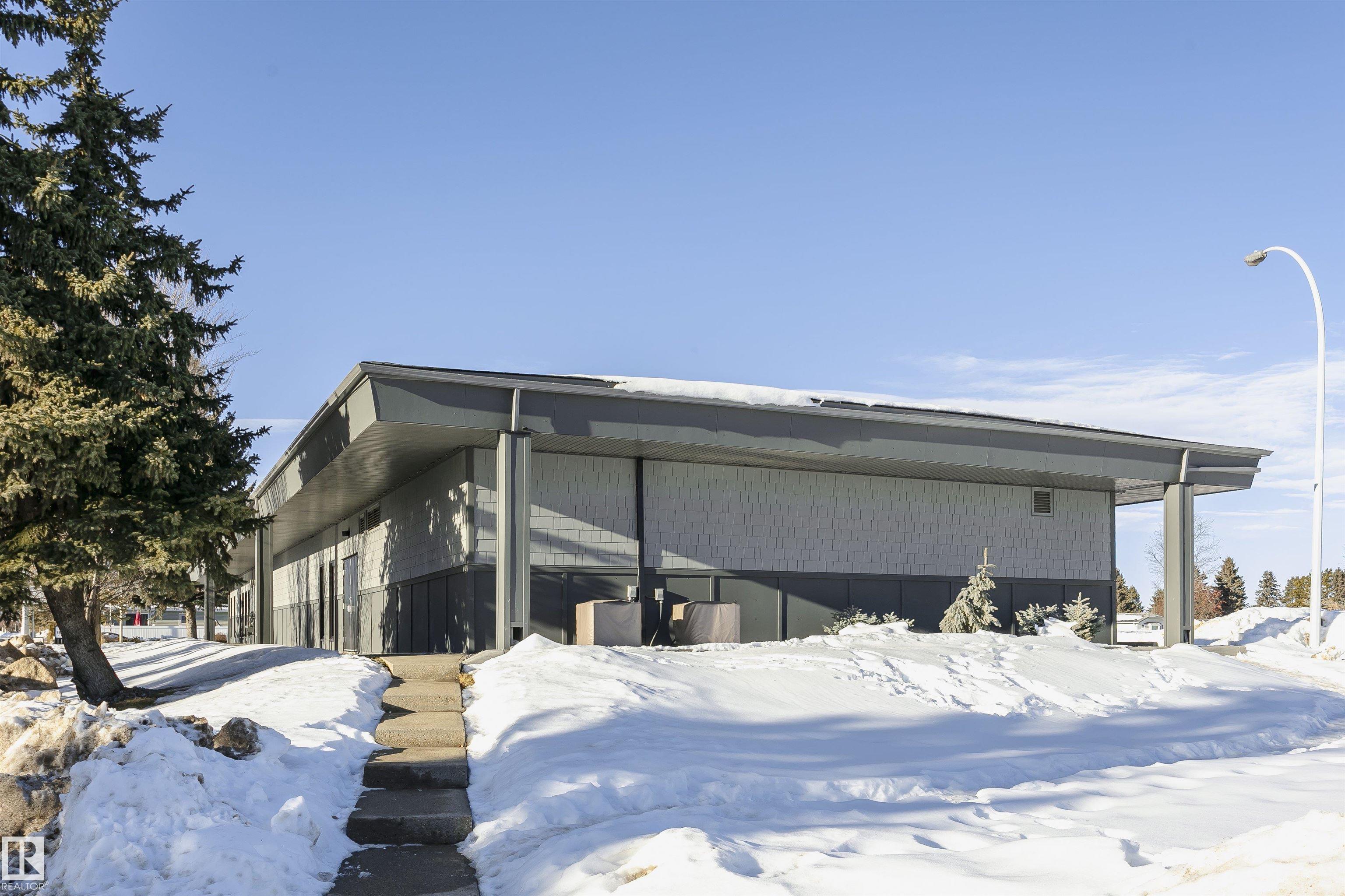 Welcome to Westview! Great value in this 3 bedroom, 2 bathroom mobile, backing Frank Michael park. The floor plan is open and bright, with a vaulted ceiling, skylight and an abundance of windows. The living room is spacious and blends seamlessly into the dining room and kitchen areas. The white cabinet kitchen features some newer appliances, loads of storage and great natural light. The 3 bedrooms are large with the primary boasting a full 4-piece ensuite with tub + shower. The laundry set-up is conveniently located and has great storage also. The yard has a great size deck (22'x10'), mature trees, shed and views of the park. There is a double paved parking pad with additional parking for added convenience. Complete the package with a newer roof (2022) and h2o tank (2019). Close to the lake, shopping center, restaurants & Petro station. Quick access to Winterburn Road. Great potential and value in well laid out in the 2002 mobile. Come have a look and visualize the potential - priced to sell at $68,500!