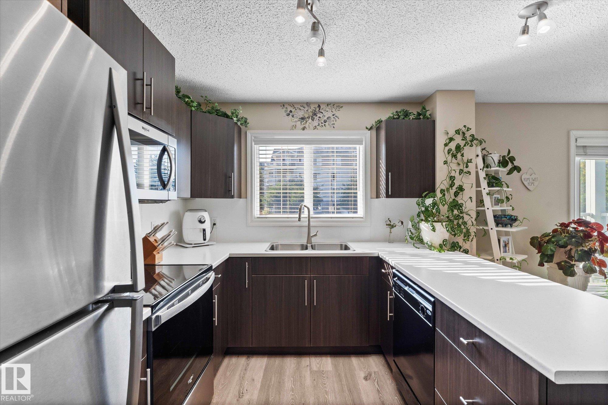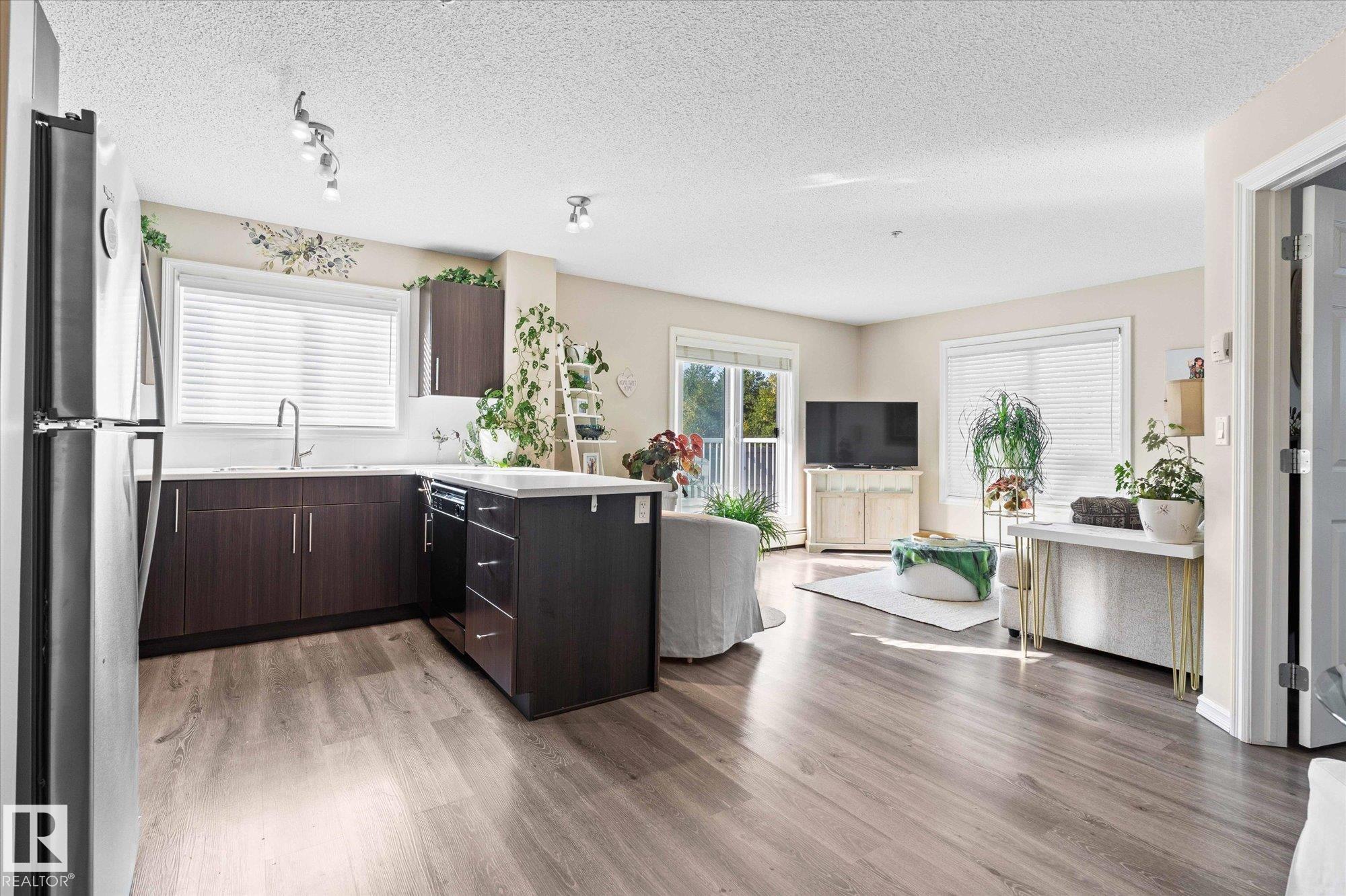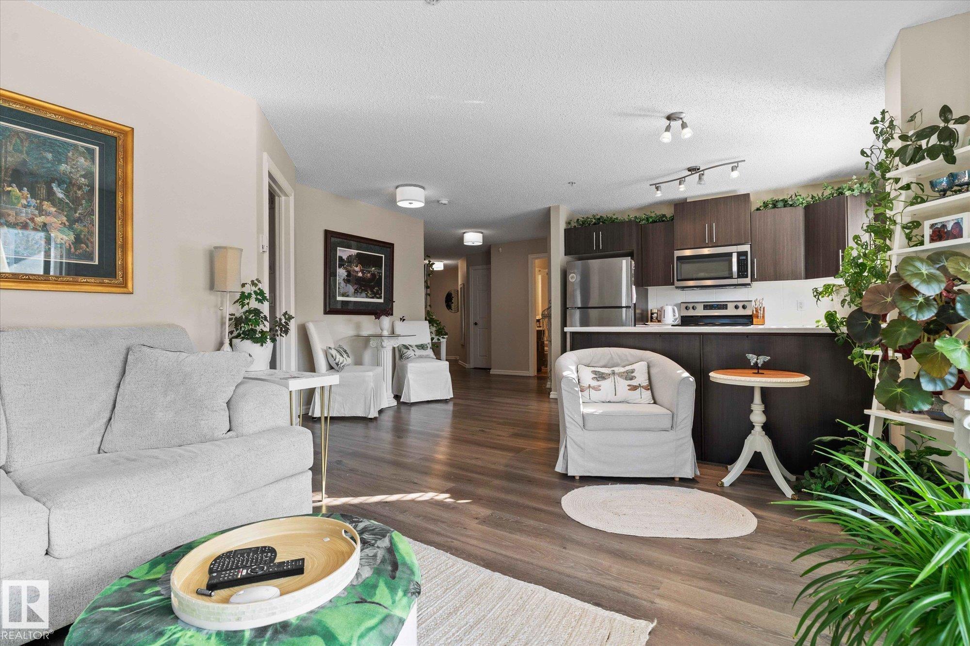 Welcome to Aspen Meadows!This upgraded 2-bedroom,2-bathroom condo in Aspen Meadows II offers 875sqft of modern living space. Recent updates include fresh paint, new lighting, window coverings,and updated kitchen appliances, faucet, and sink.The open-concept kitchen features ample counter space and flows seamlessly into a bright living area with oversized windows?perfect for entertaining.The spacious primary suite comfortably fits a king-sized bed and features a walk-through closet leading to a private ensuite.A second bedroom and an updated full bathroom complete the well-designed layout.Additional upgrades include a new deck membrane and updated bathroom countertops. Enjoy the convenience of in-suite laundry, a titled heated underground parking stall, and a designated storage cage.The building also offers a fitness room and social room. Ideally located near the Meadows Recreation Centre, schools, shopping, dining, and entertainment, this move-in-ready home is the perfect blend of comfort and convenience.