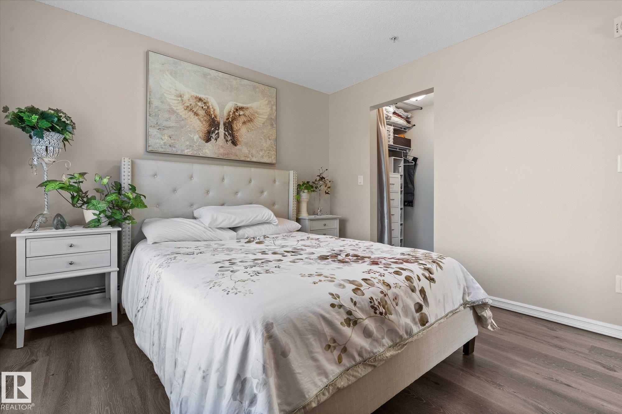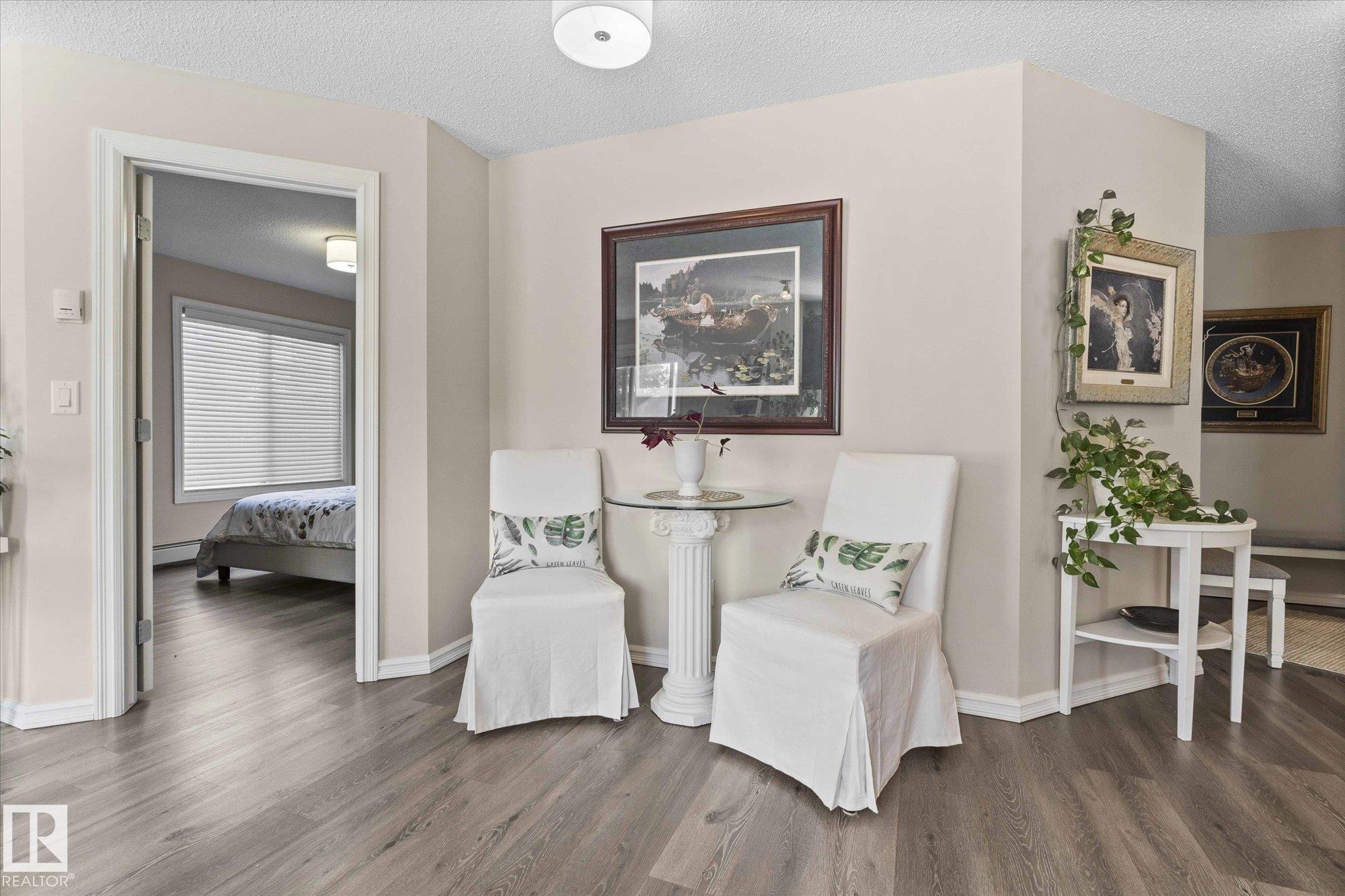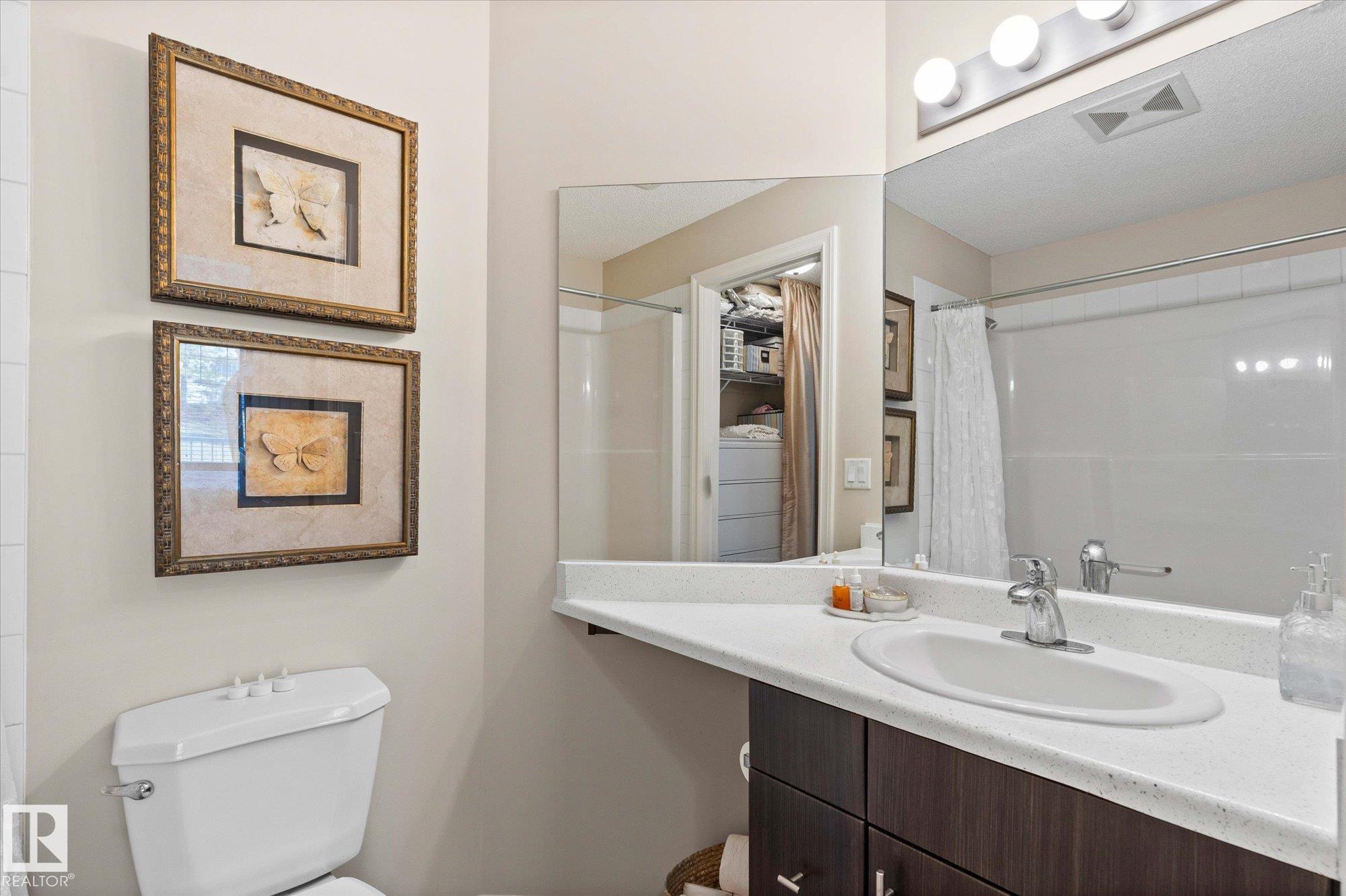 Welcome to Aspen Meadows!This upgraded 2-bedroom,2-bathroom condo in Aspen Meadows II offers 875sqft of modern living space. Recent updates include fresh paint, new lighting, window coverings,and updated kitchen appliances, faucet, and sink.The open-concept kitchen features ample counter space and flows seamlessly into a bright living area with oversized windows?perfect for entertaining.The spacious primary suite comfortably fits a king-sized bed and features a walk-through closet leading to a private ensuite.A second bedroom and an updated full bathroom complete the well-designed layout.Additional upgrades include a new deck membrane and updated bathroom countertops. Enjoy the convenience of in-suite laundry, a titled heated underground parking stall, and a designated storage cage.The building also offers a fitness room and social room. Ideally located near the Meadows Recreation Centre, schools, shopping, dining, and entertainment, this move-in-ready home is the perfect blend of comfort and convenience.