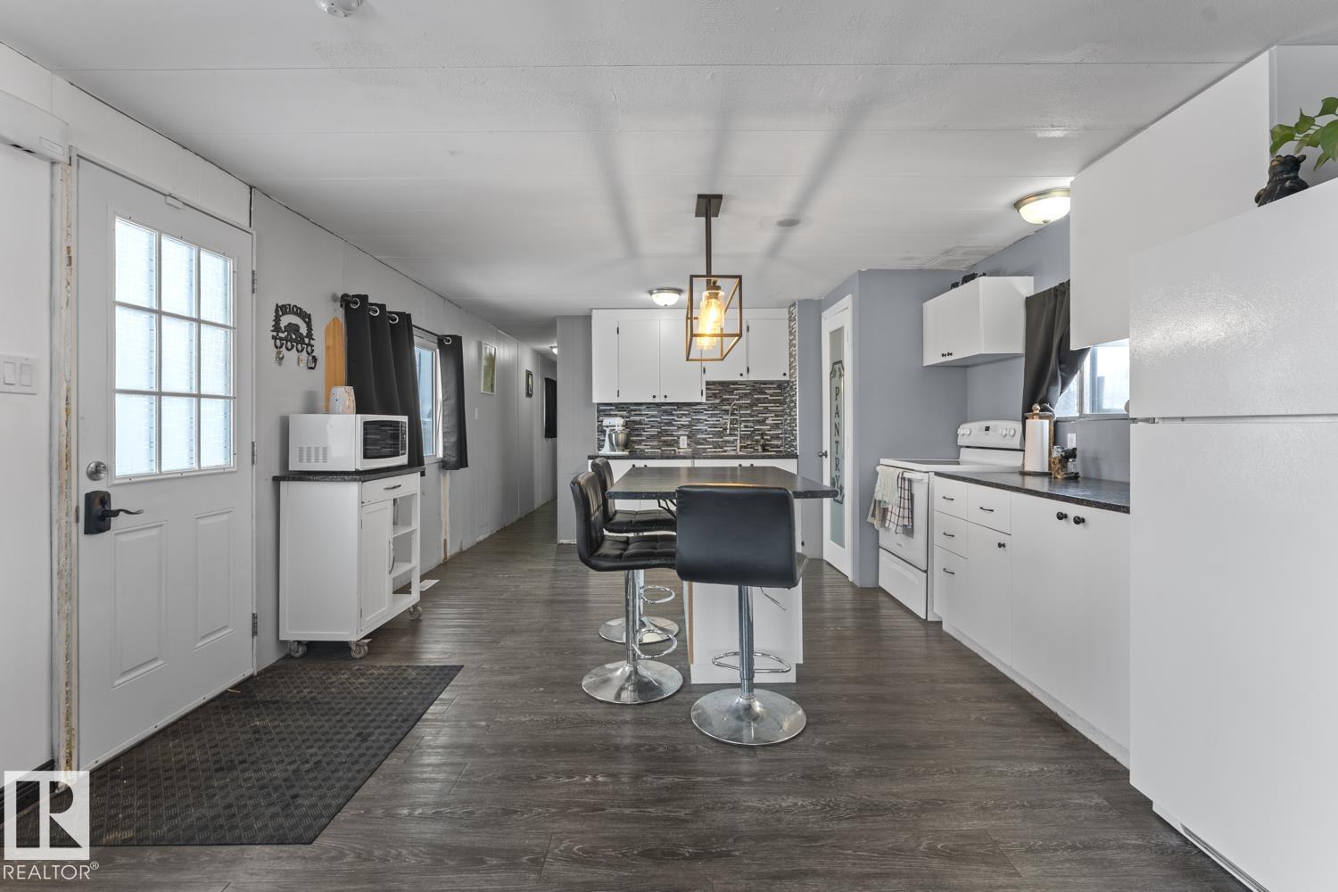 Affordable mobile home located in Lakelet Estates in Cold Lake South. This 2 bedroom, 1 bathroom mobile home is on a land leased corner lot and includes wood fencing, deck and shed. Mobile has seen many upgrades over the years and is a work in progress. Move in and make it yours! Modern open concept livingroom and kitchen. Kitchen updated with a handy island and a pantry as well. Fridge and stove included along with additional matching backsplash tile for buyer to do as they wish! Down the hall is the utility & laundry room, entirely renovated 4 piece bathroom and 2 bedrooms to the back (allowing for privacy from the main living area). A compact and functional place to call HOME! Plumbing and heat tape have been redone. Newer laminate flooring. New insulation and wood skirting 2024. An affordable living option with the benefit of a fenced private yard, 2 stall parking and a park nearby. Within walking distance to nature trails, downtown and shopping. Public transit nearby! Make it HOME!