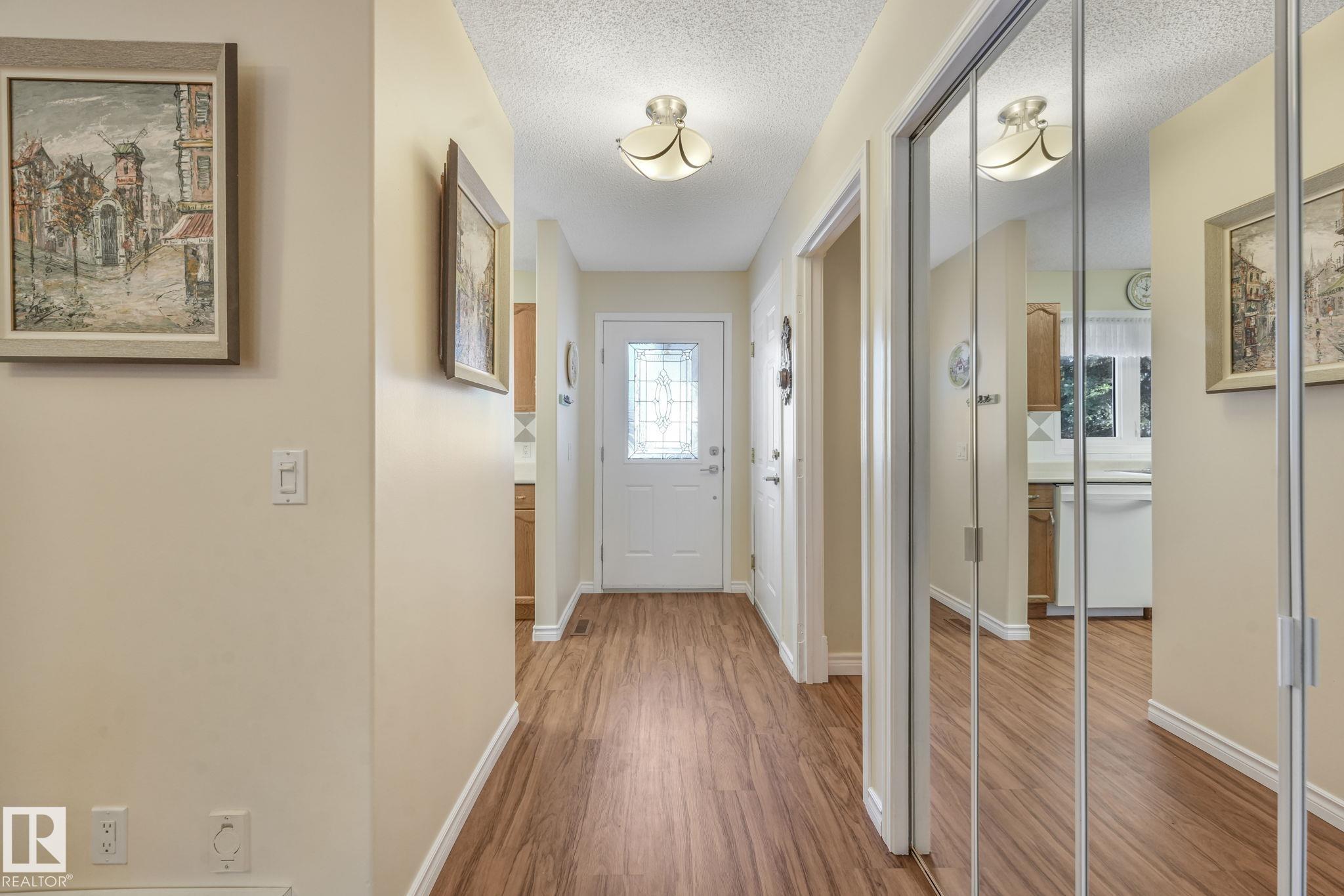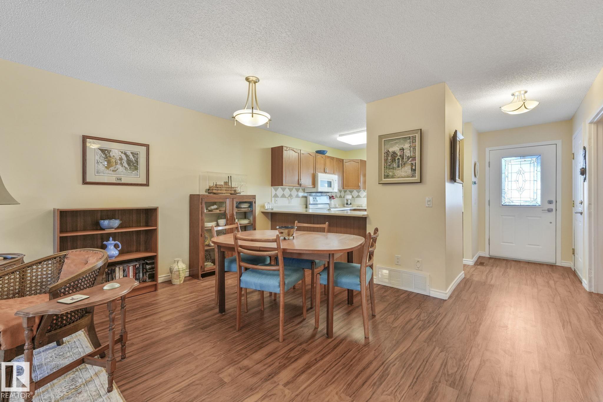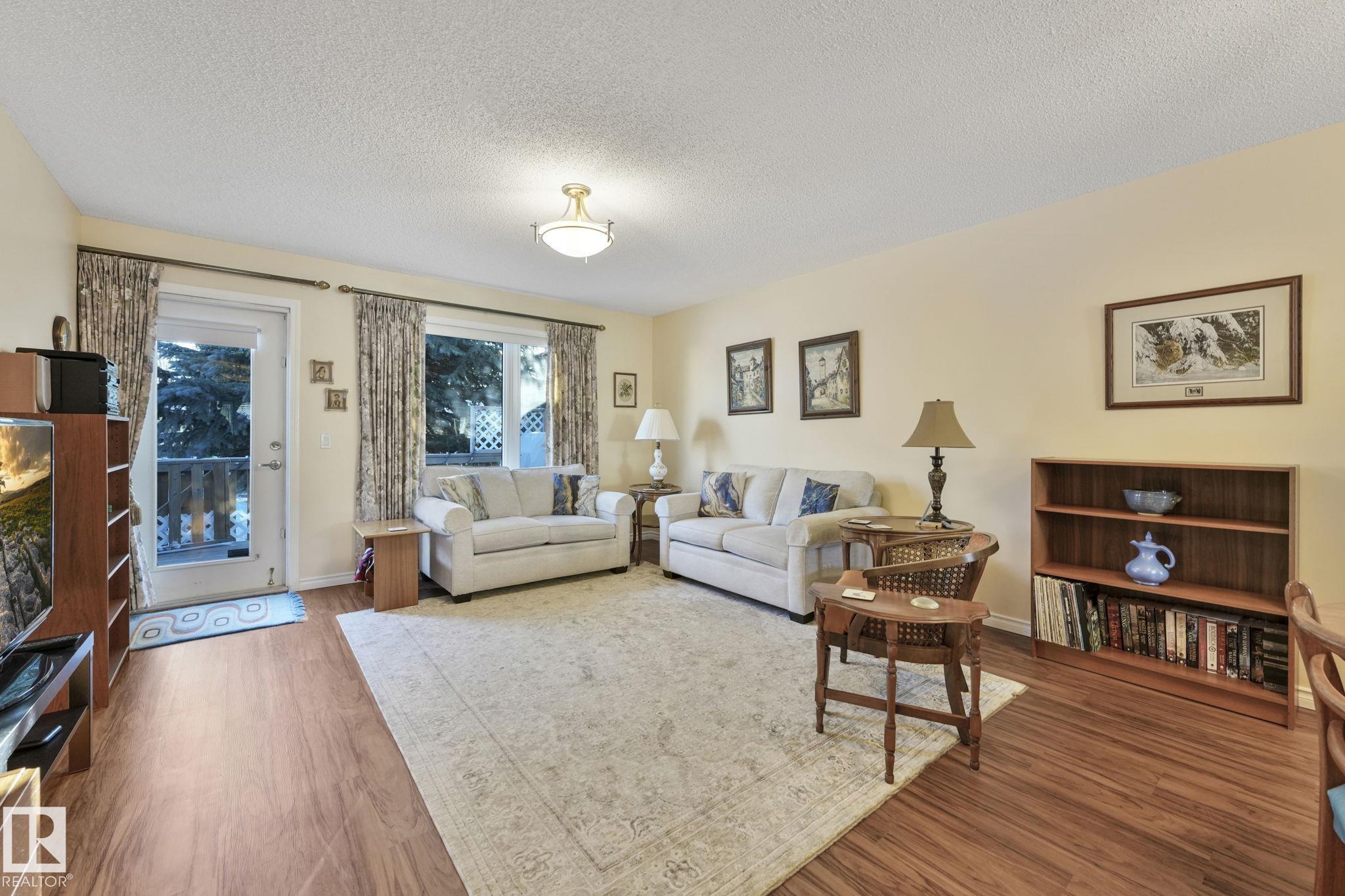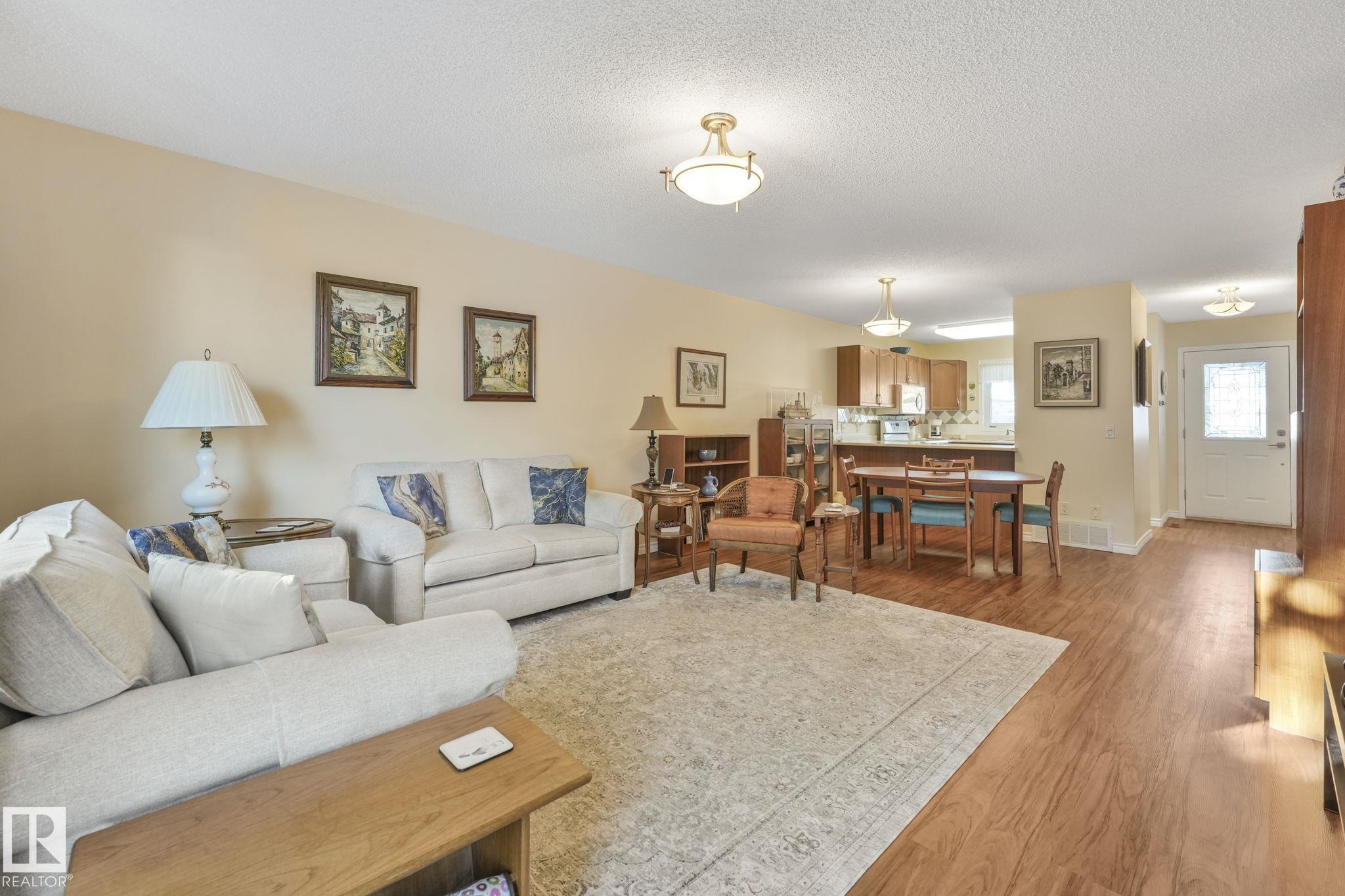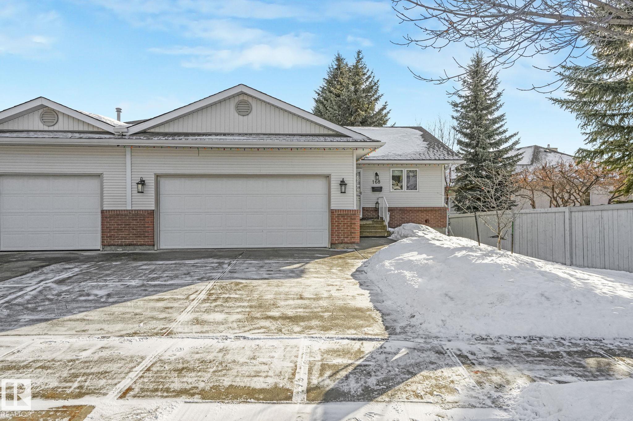 Mint condition and truly turnkey end unit bungalow in a prestigious 45+ Kingswood community. This impeccably maintained bungalow has been freshly painted with brand-new luxury vinyl plank flooring on the main floor, delivering modern, worry-free living with all major updates already completed. Low condo fees in this quiet, well-managed complex where exterior maintenance is fully handled. The home offers 2+1 bedrooms, 3 bathrooms, main-floor laundry, a fully finished basement, and a large double attached insulated garage. Bright and open main floor with lots of south facing windows throughout. Major upgrades include the furnace + hot water tank (2019), central A/C, central vacuum, newer appliances, a newer deck, and updated door hardware?clear evidence of pride of ownership. Rare facing Kingswood Blvd, residents enjoy exceptional amenities including a party room, library, games room, guest suite, and direct access to walking trails. Steps from Servus Place Rec Centre and short drive to all amenities.